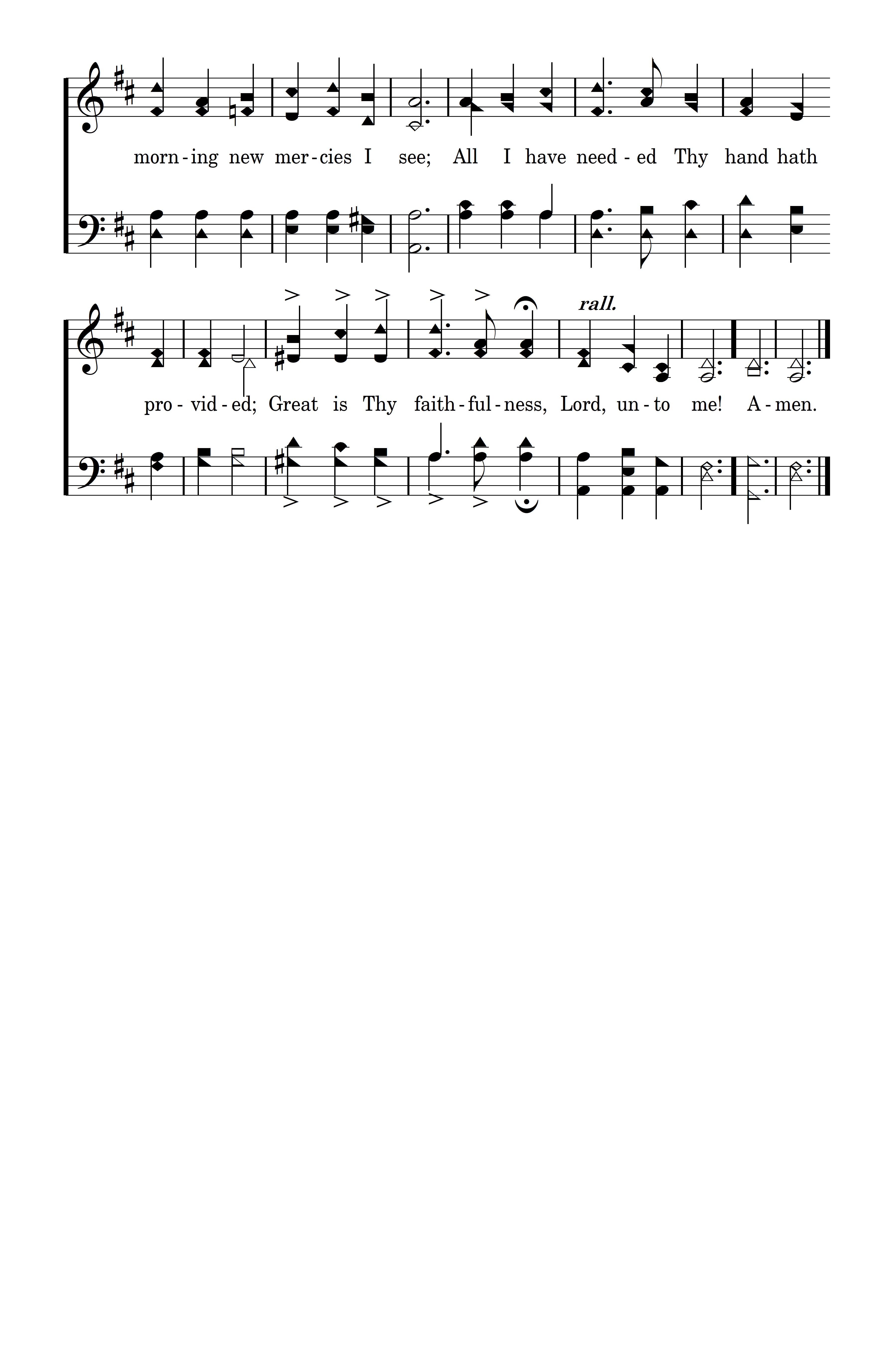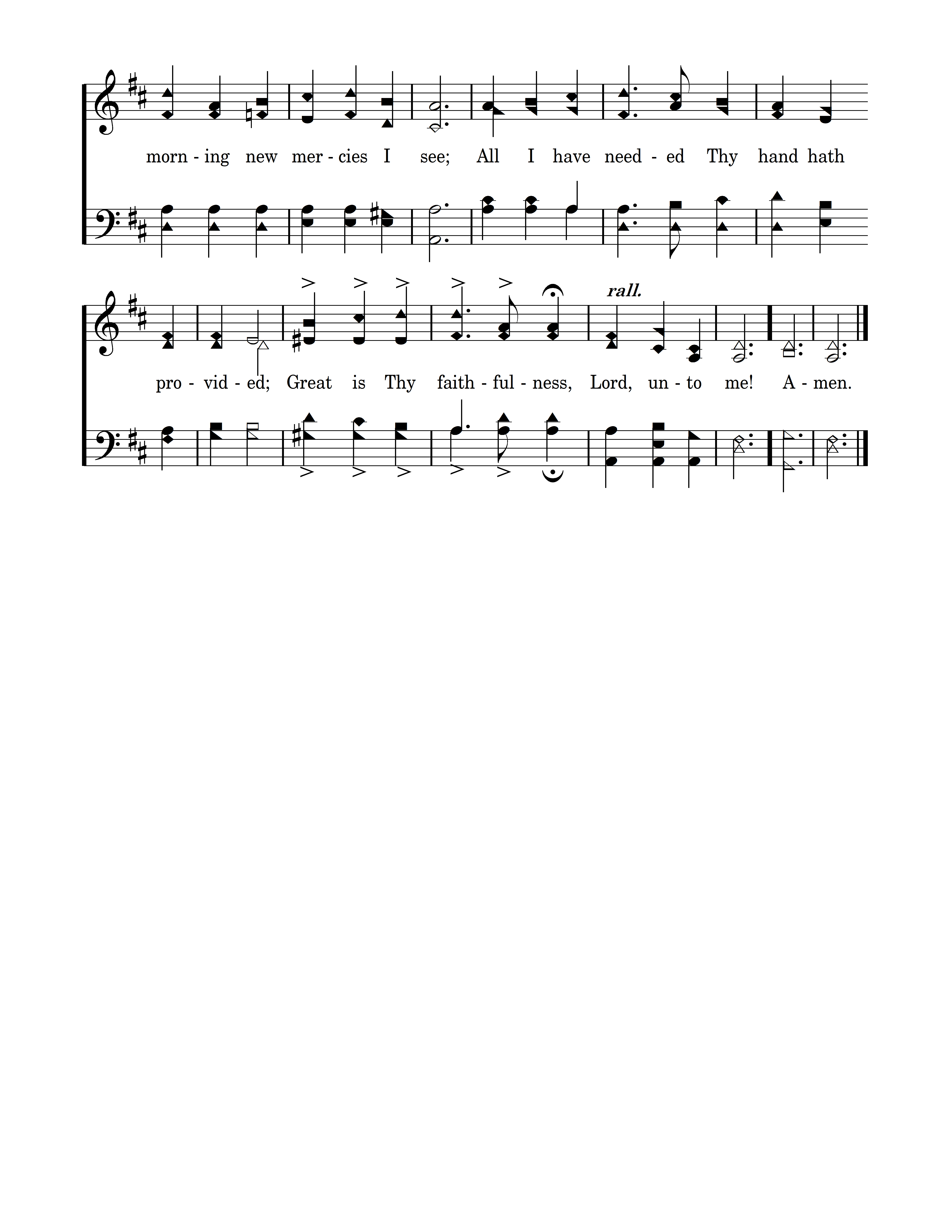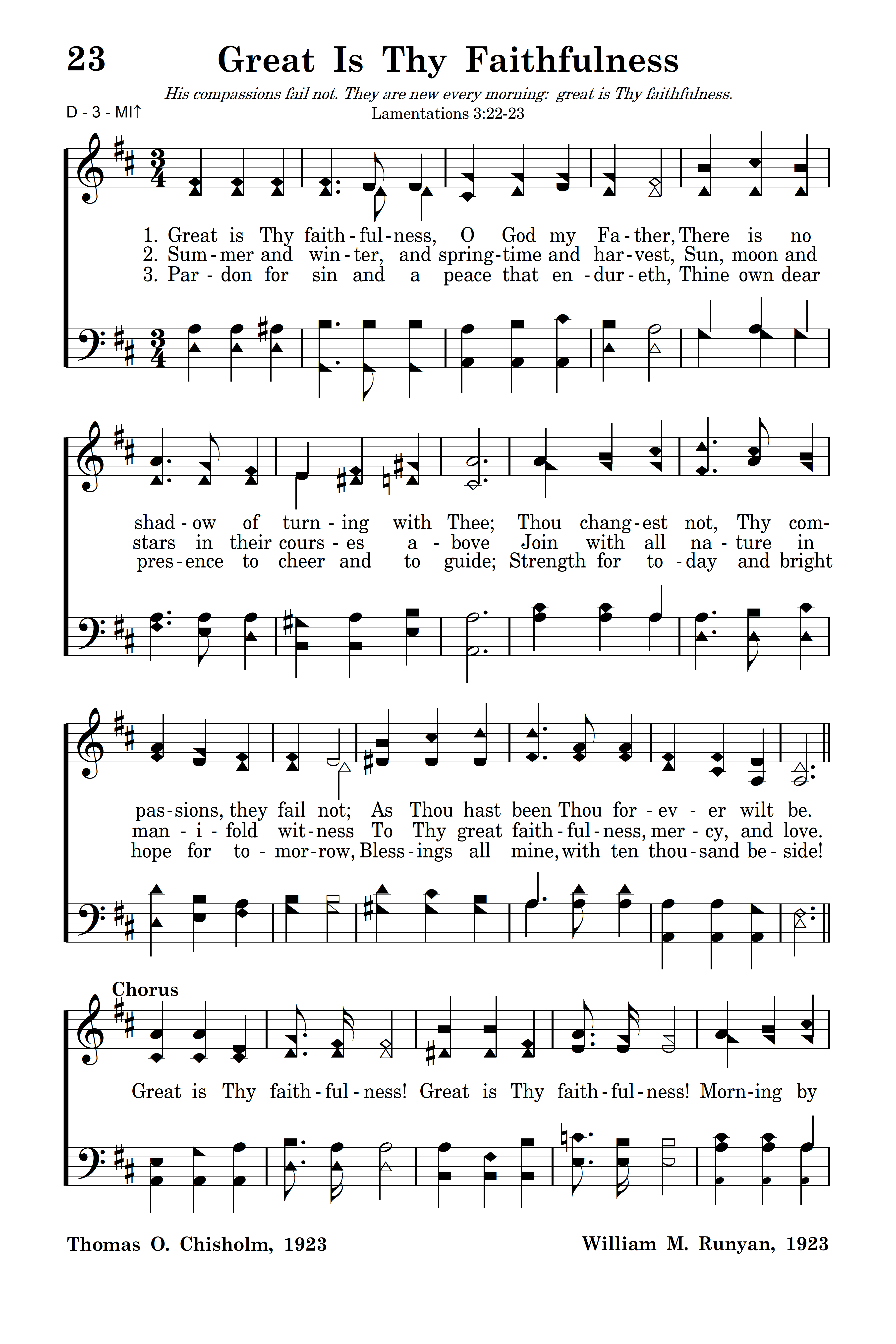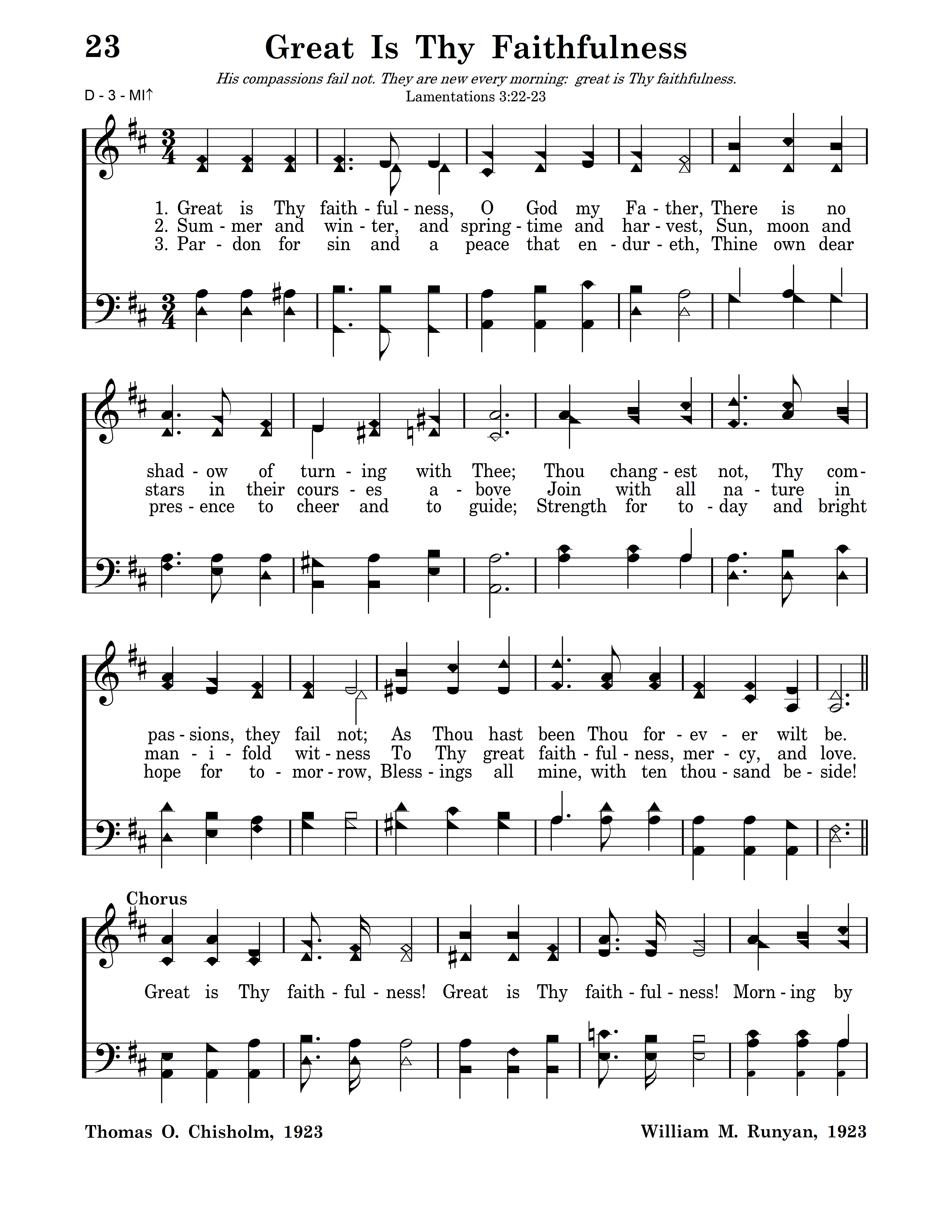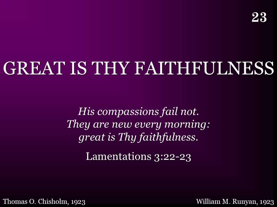 Great is Thy faithfulness! Great is Thy faithfulness! Morning by morning new mercies I see; All I have needed Thy hand hath provided; Great is Thy faithfulness, Lord, unto me!