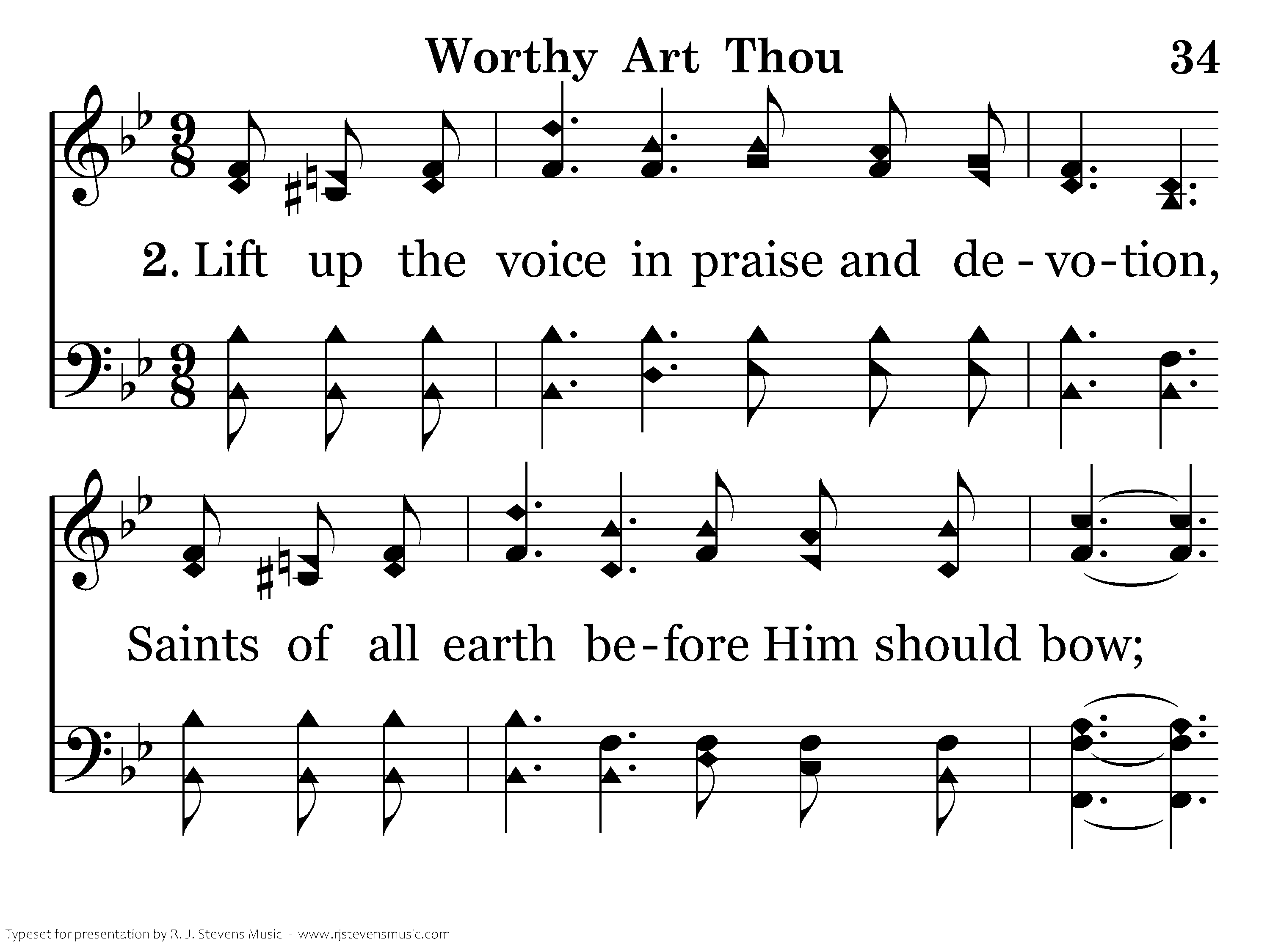 Lift up the voice in praise and devotion, Saints of all earth before Him should bow; Angels in heaven worship Him saying, Wothy art Thou! Worthy art Thou!