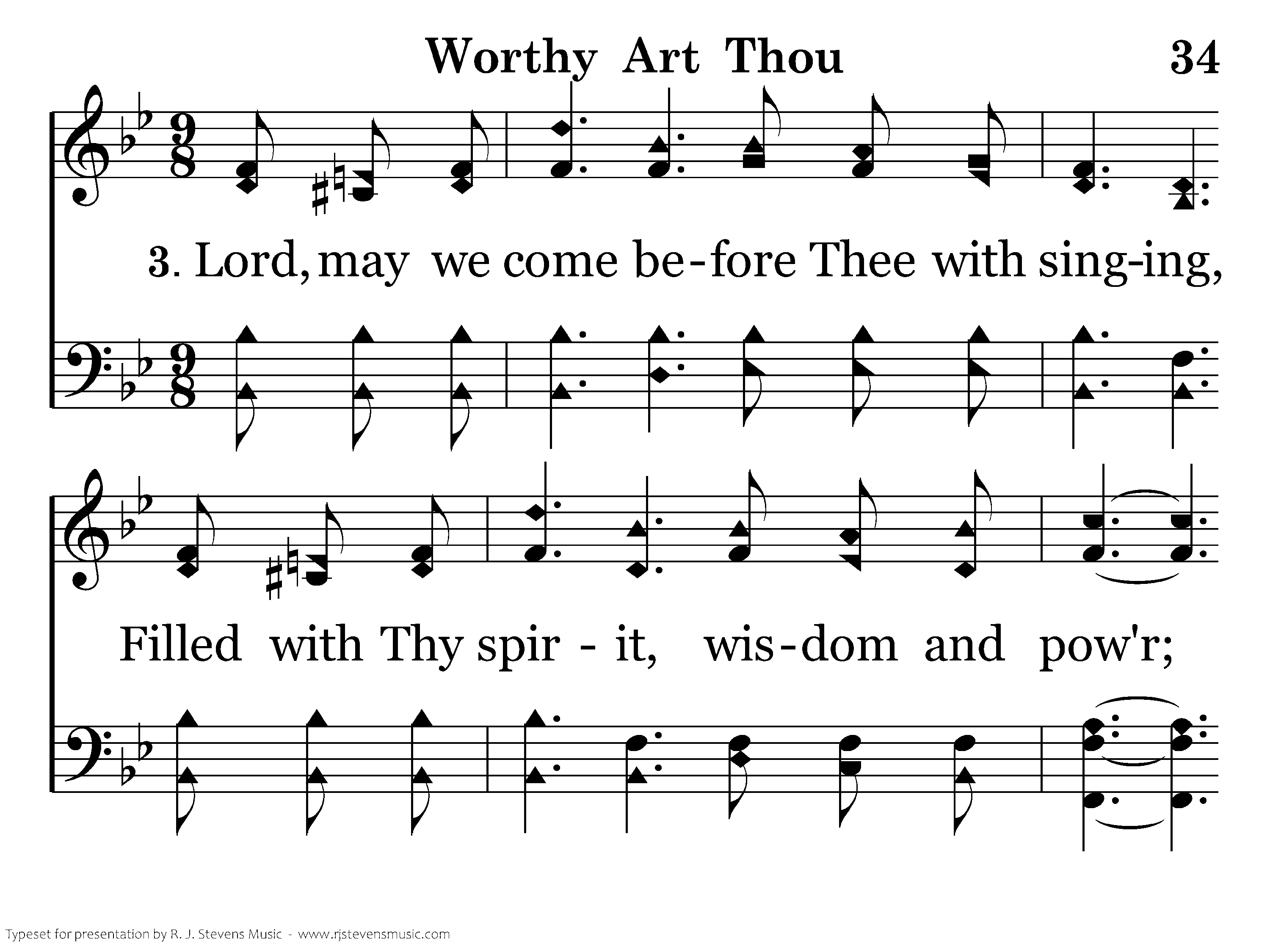 Lord, may we come before Thee with singing, Filled with Thy spirit, wisdom and power; May we ascribe Thee glory and honor, Worthy art Thou! Worthy art Thou!