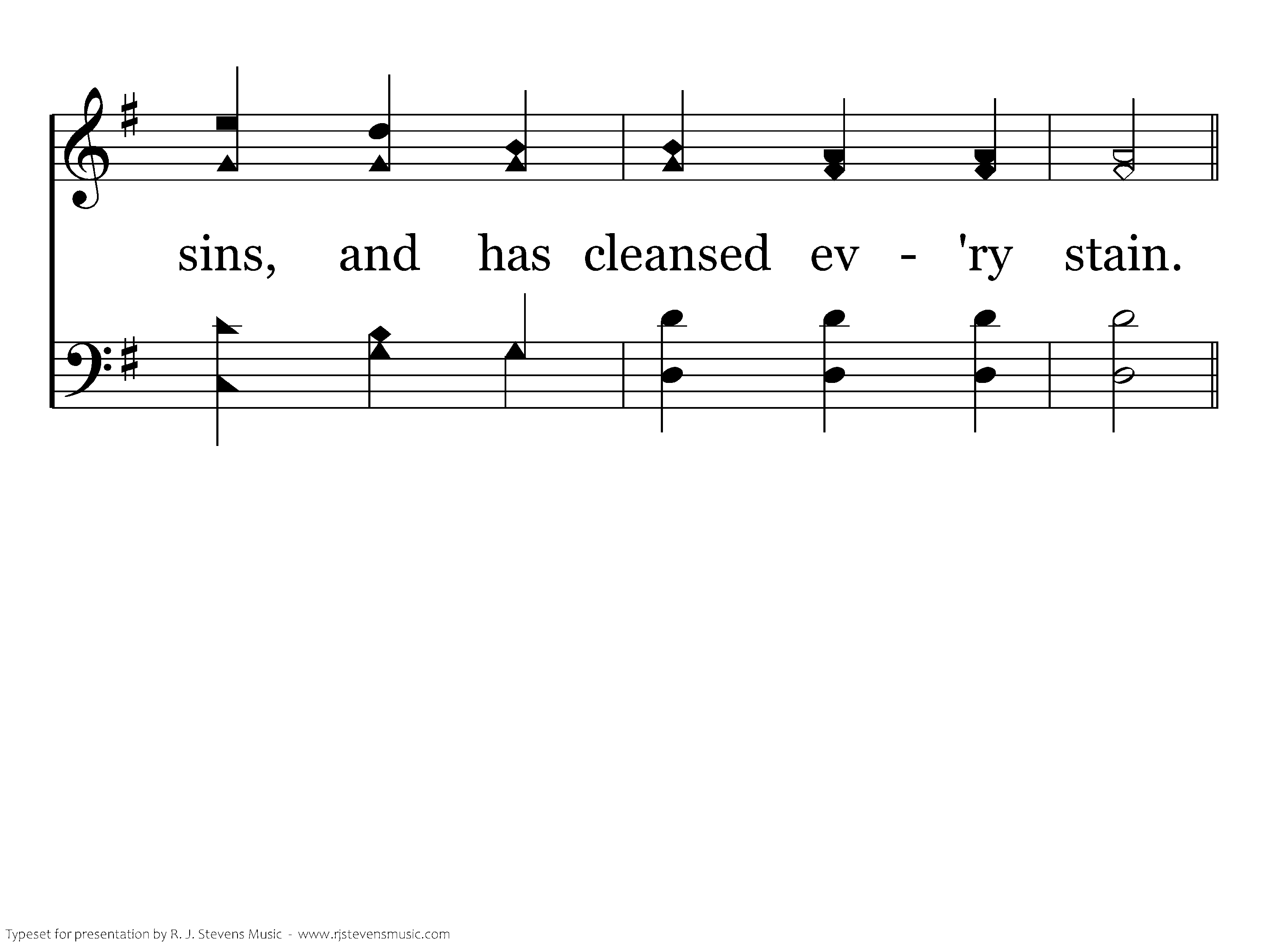 All glory and praise to the Lamb that was slain, Who has borne all our sins, and has cleansed every stain.