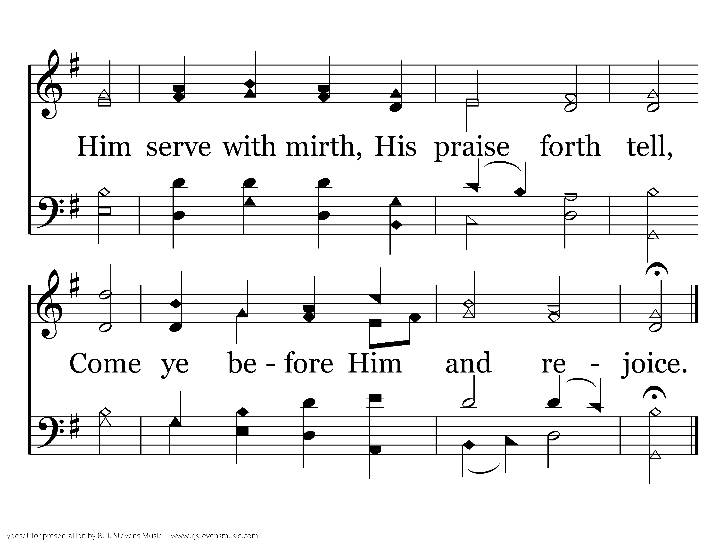 All people that on earth do dwell, Sing to the Lord with cheerful voice; Him serve with mirth, His praise forth tell, Come ye before Him and rejoice.