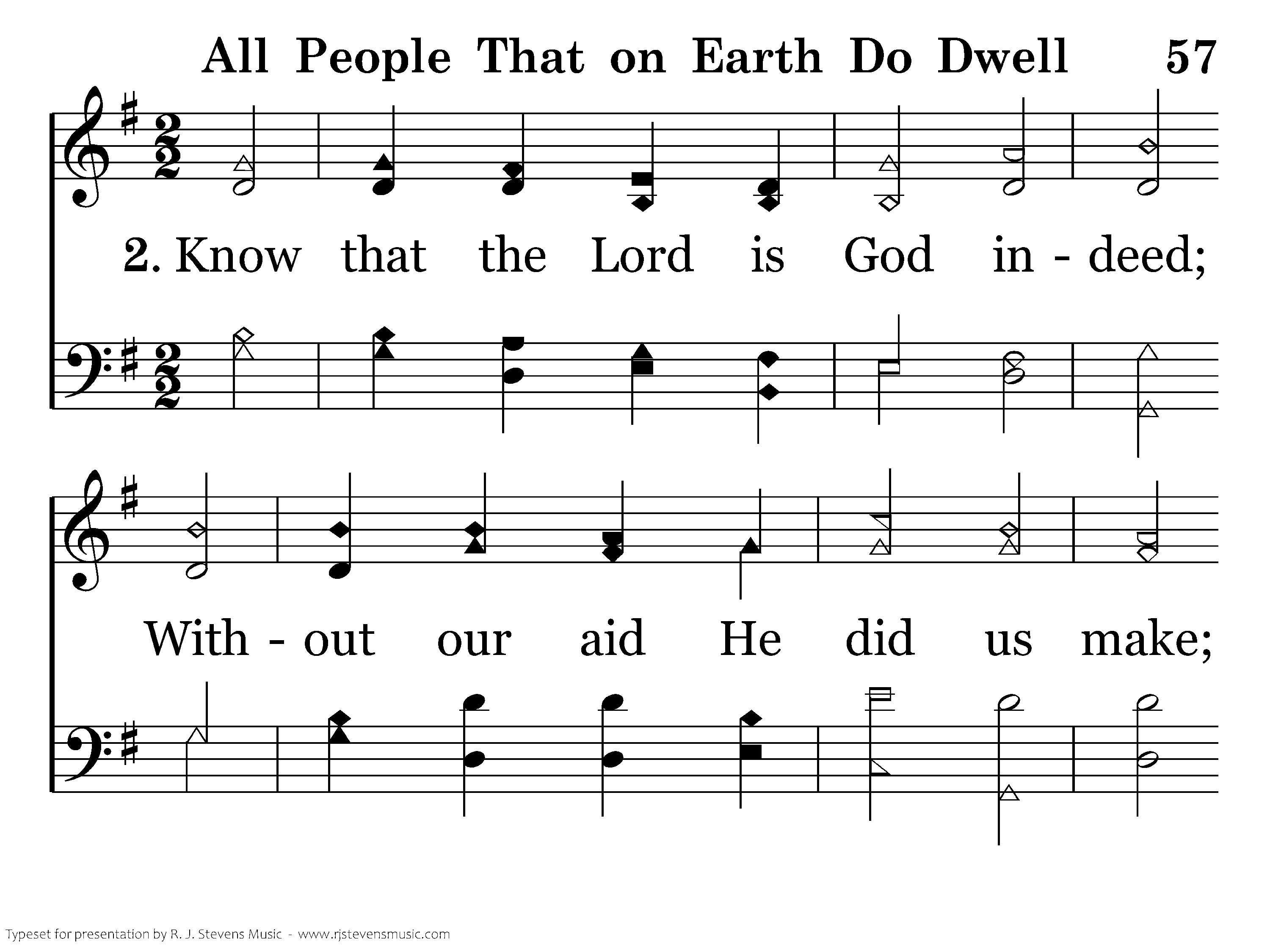 Know that the Lord is God indeed; Without our aid He did us make; We are His flock, He doth us feed, And for His sheep He doth us take.