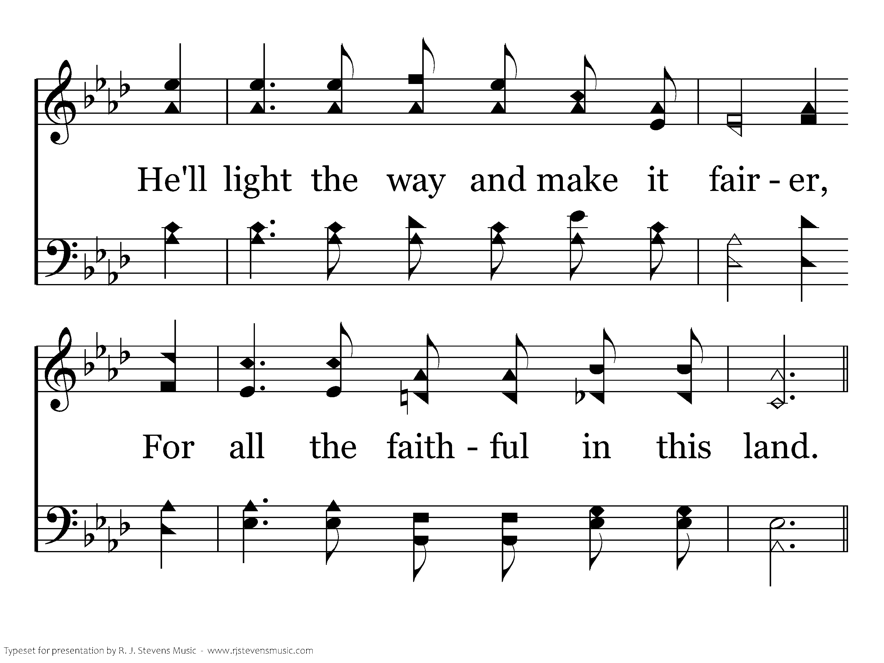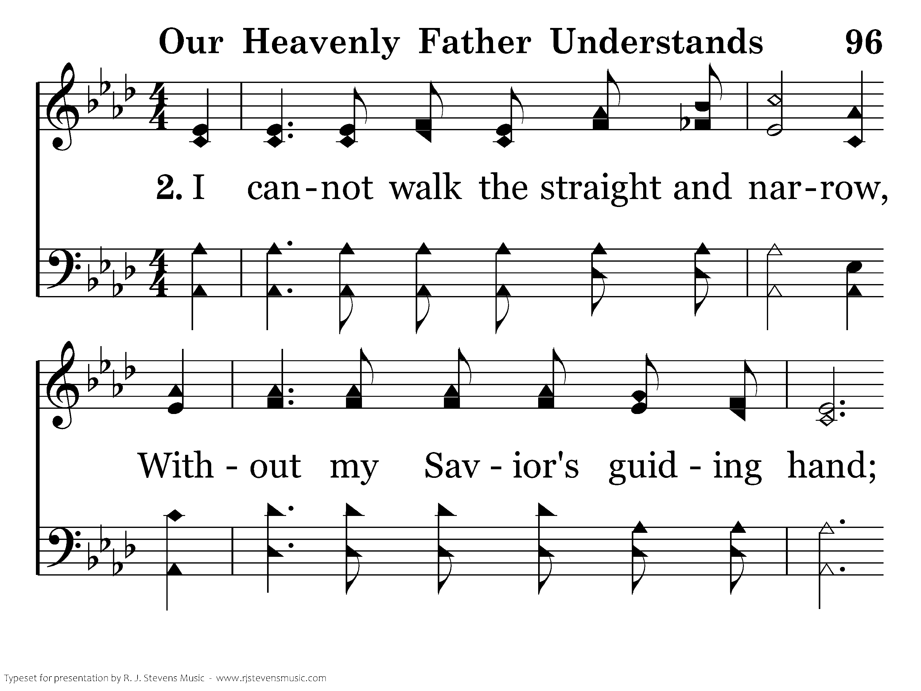 I cannot walk the stright and narrow, Without my Savior's guiding hand; He'll light the way and make it fairer, For all the faithful in the land.