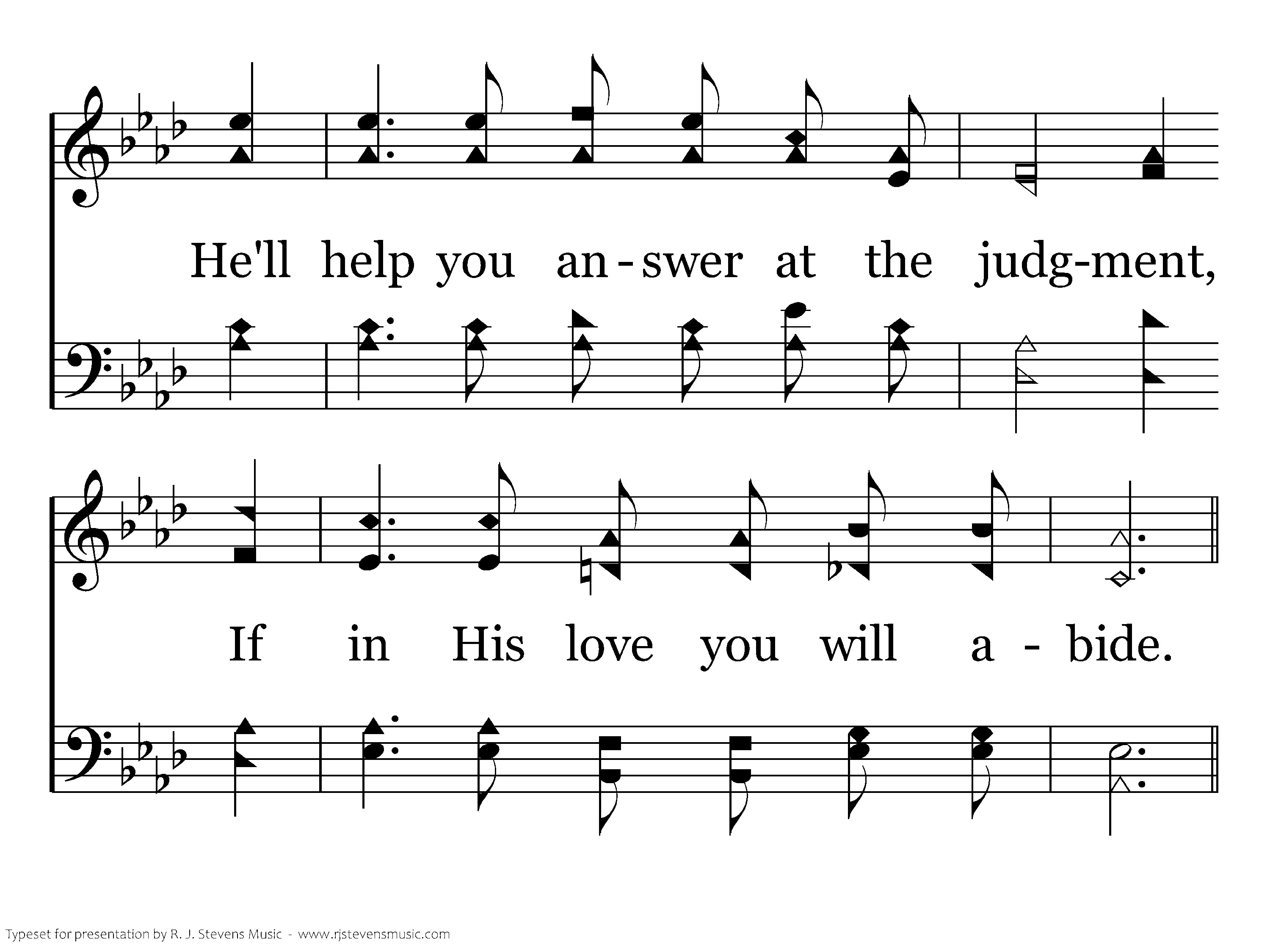 He'll hold your hand when you are dying, Give strength to cross the Jordan wide; He'll help you answer at the judgment, If in His love you will abide.