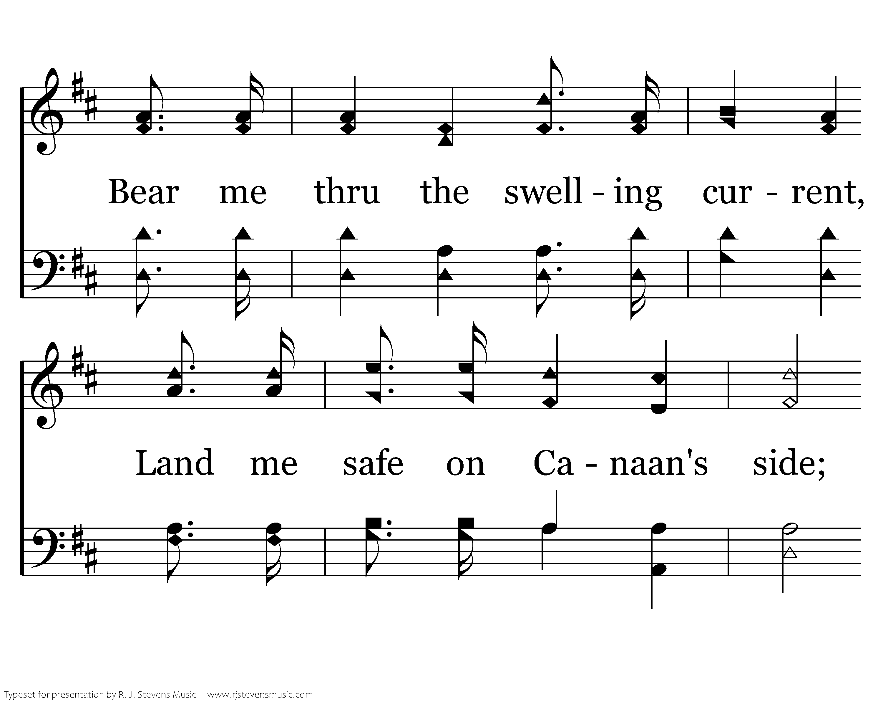 When I tread the verge of Jordan, Bid my anxious fears subside; Bear me thru the swelling current, Land me safe on Canaan's side; Songs of praises I will ever give to Thee; Songs of praises, I will ever give to Thee.