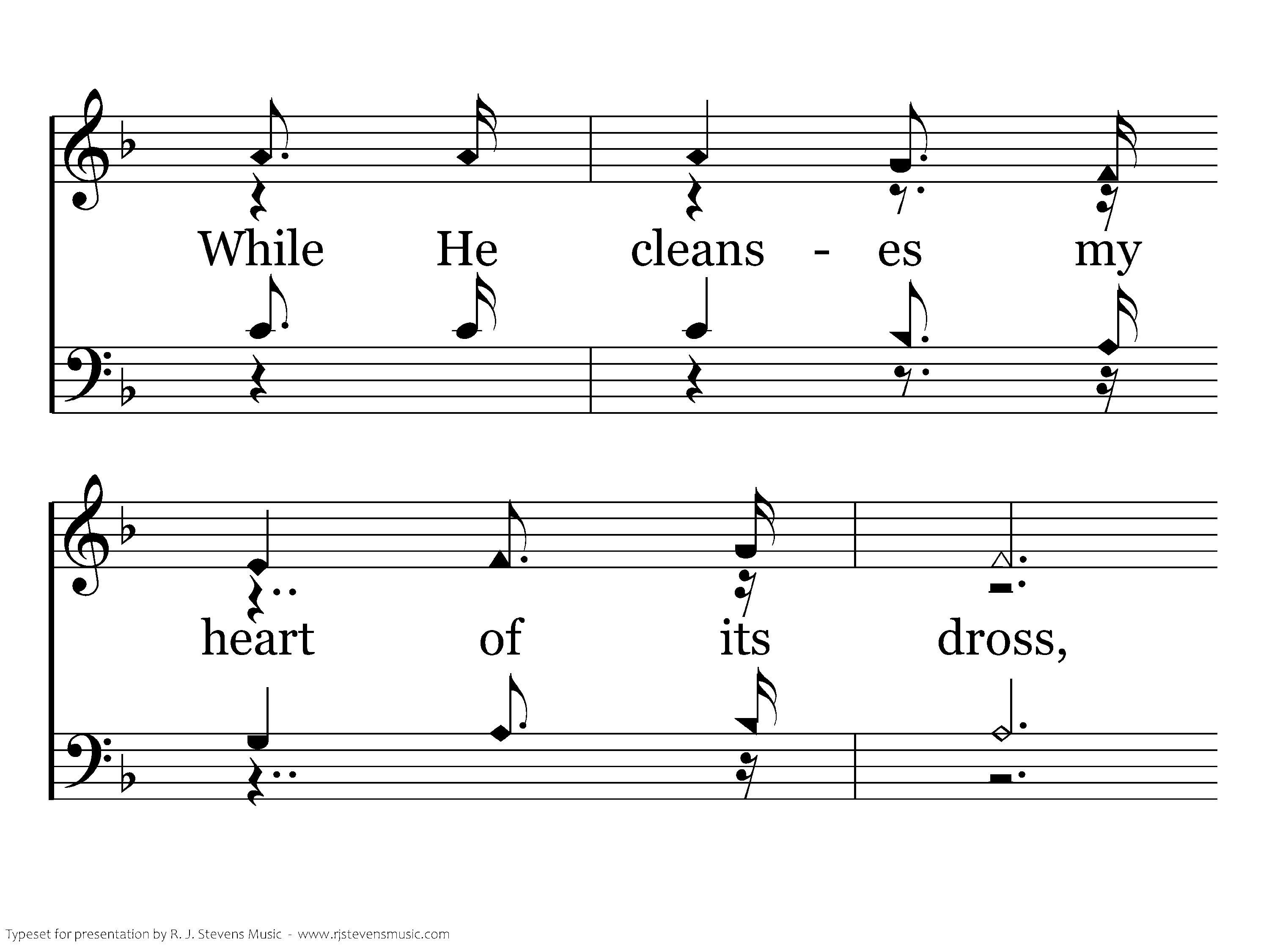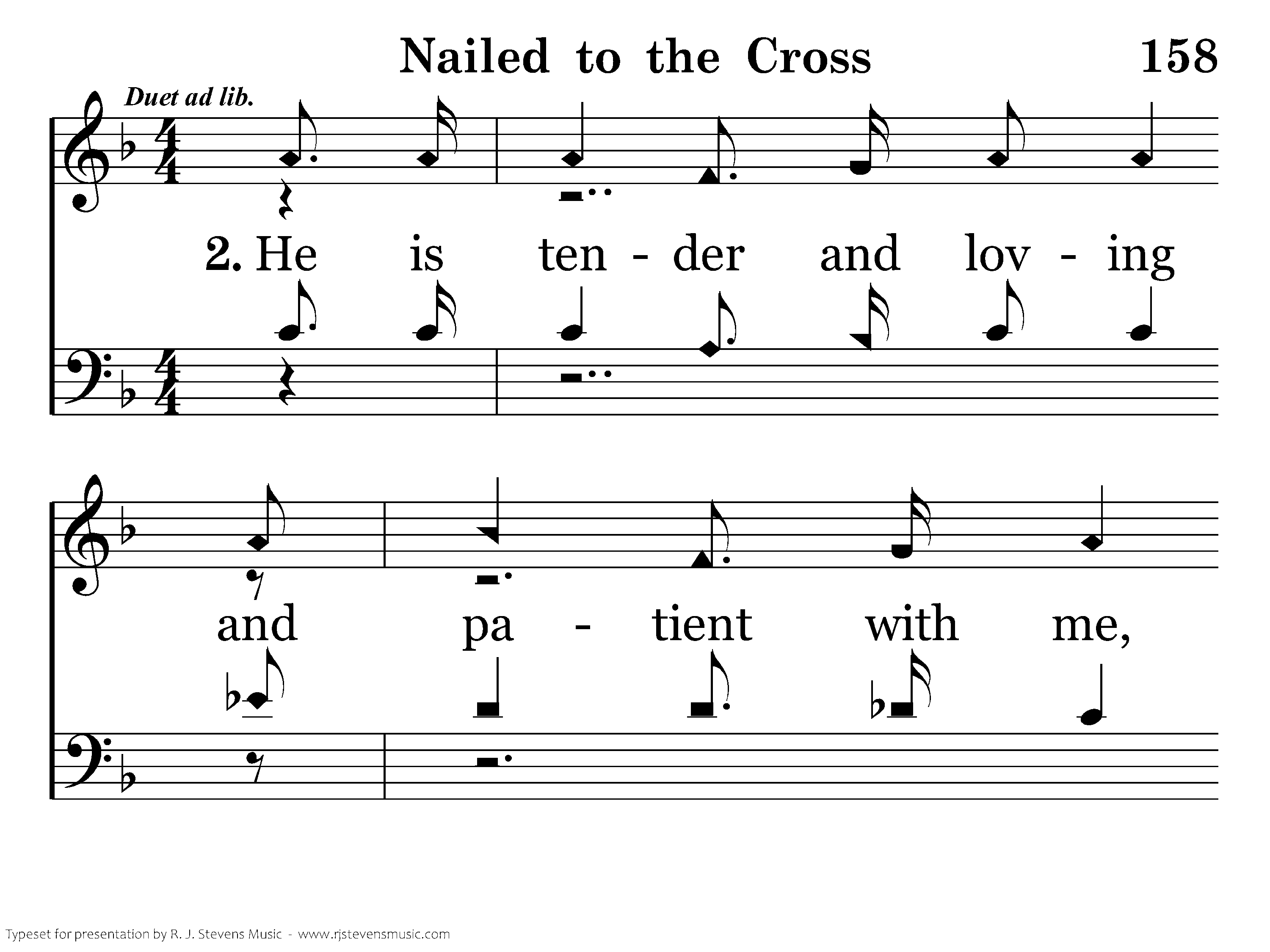 He is tender and loving and patient with me, While He cleanses my heart of its dross, But "there's no condemnation", I know I am free, For my sins are all nailed to the cross.