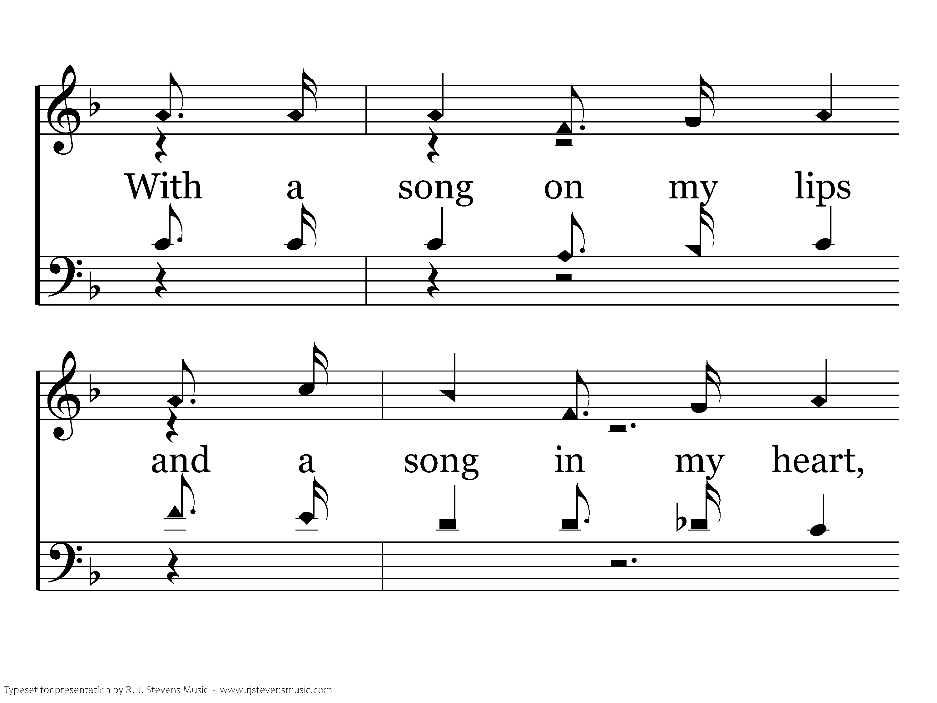 I will cling to my Savior and never depart, I will joyfully journey each day, With a song on my lips and a song in my heart, That my sins have been taken away.