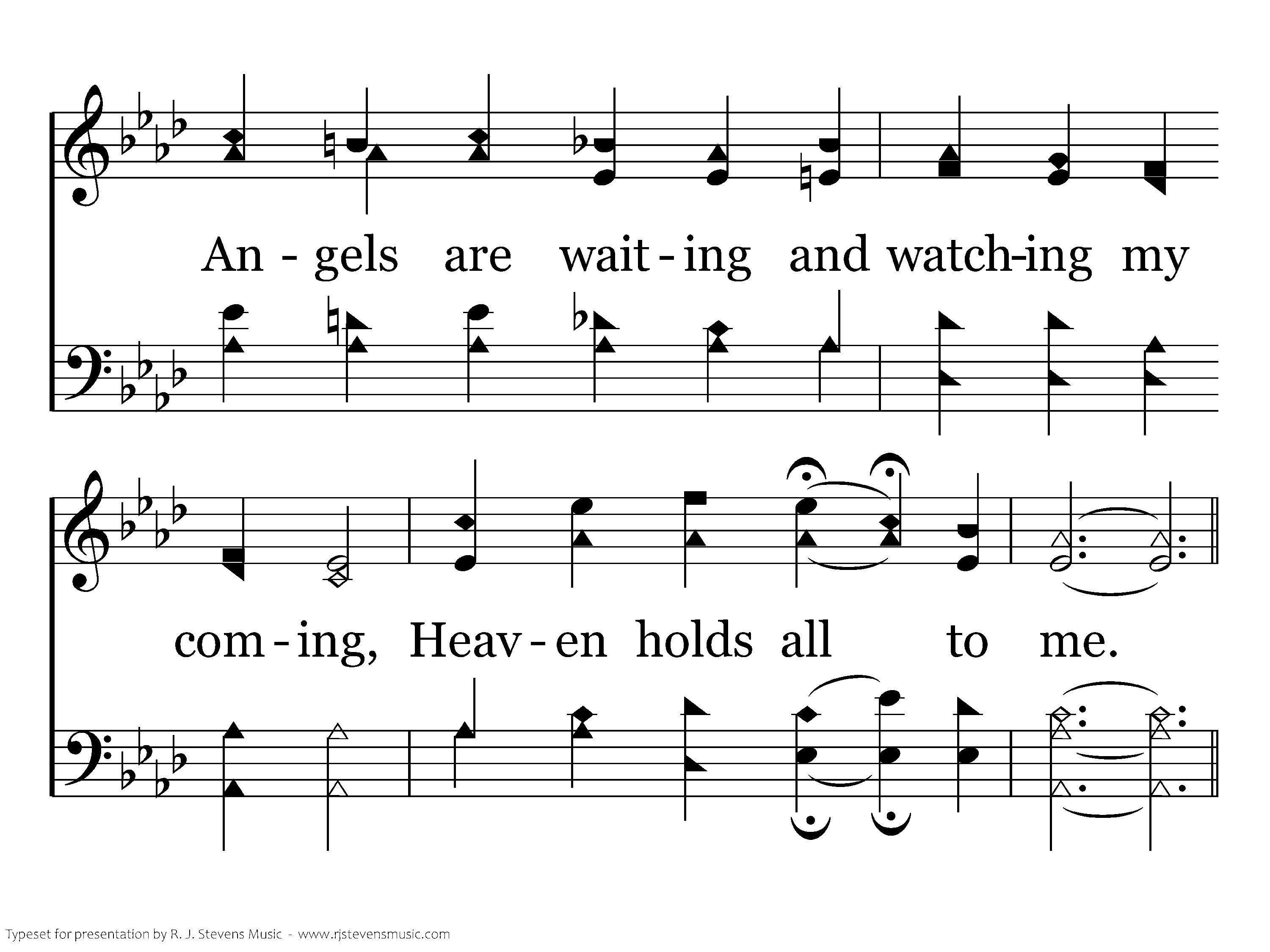 Out on the hills of that wonderful country, Happy, contented, and free, Angels are waiting and watching my coming: Heaven holds all to me.