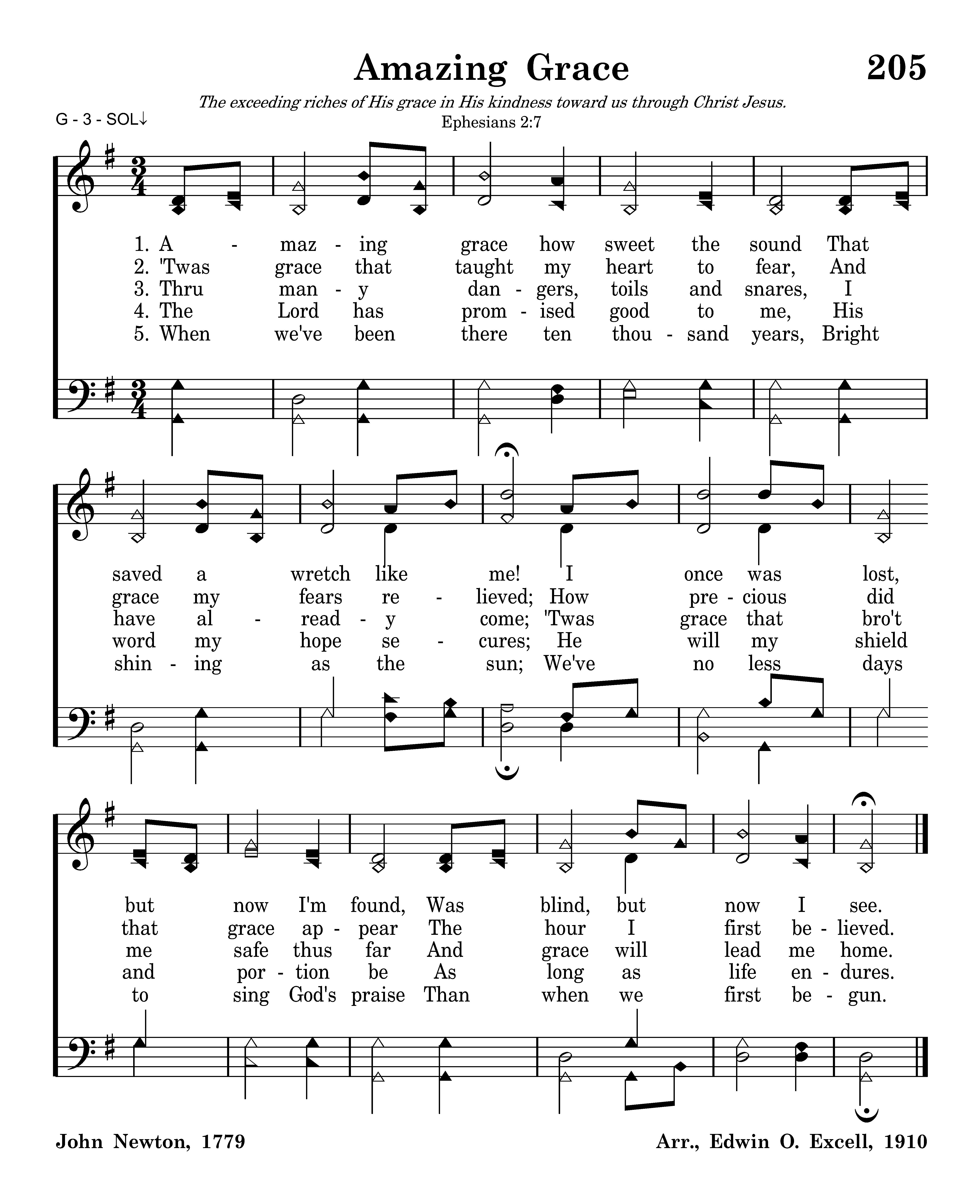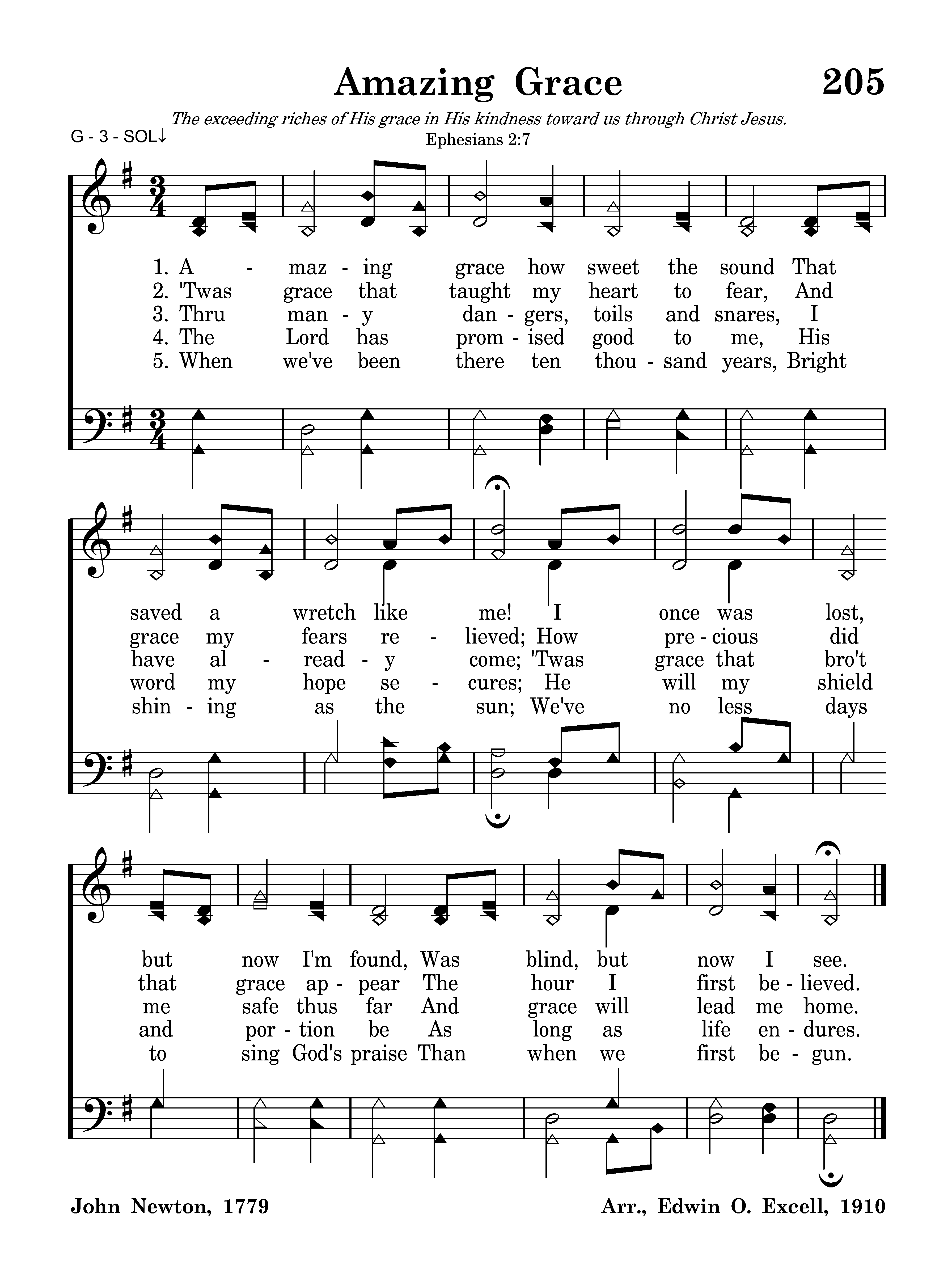 Amazing grace how sweet the sound That saves a wretch like me! I once was lost, but now I'm found, Was blind, but now I see.