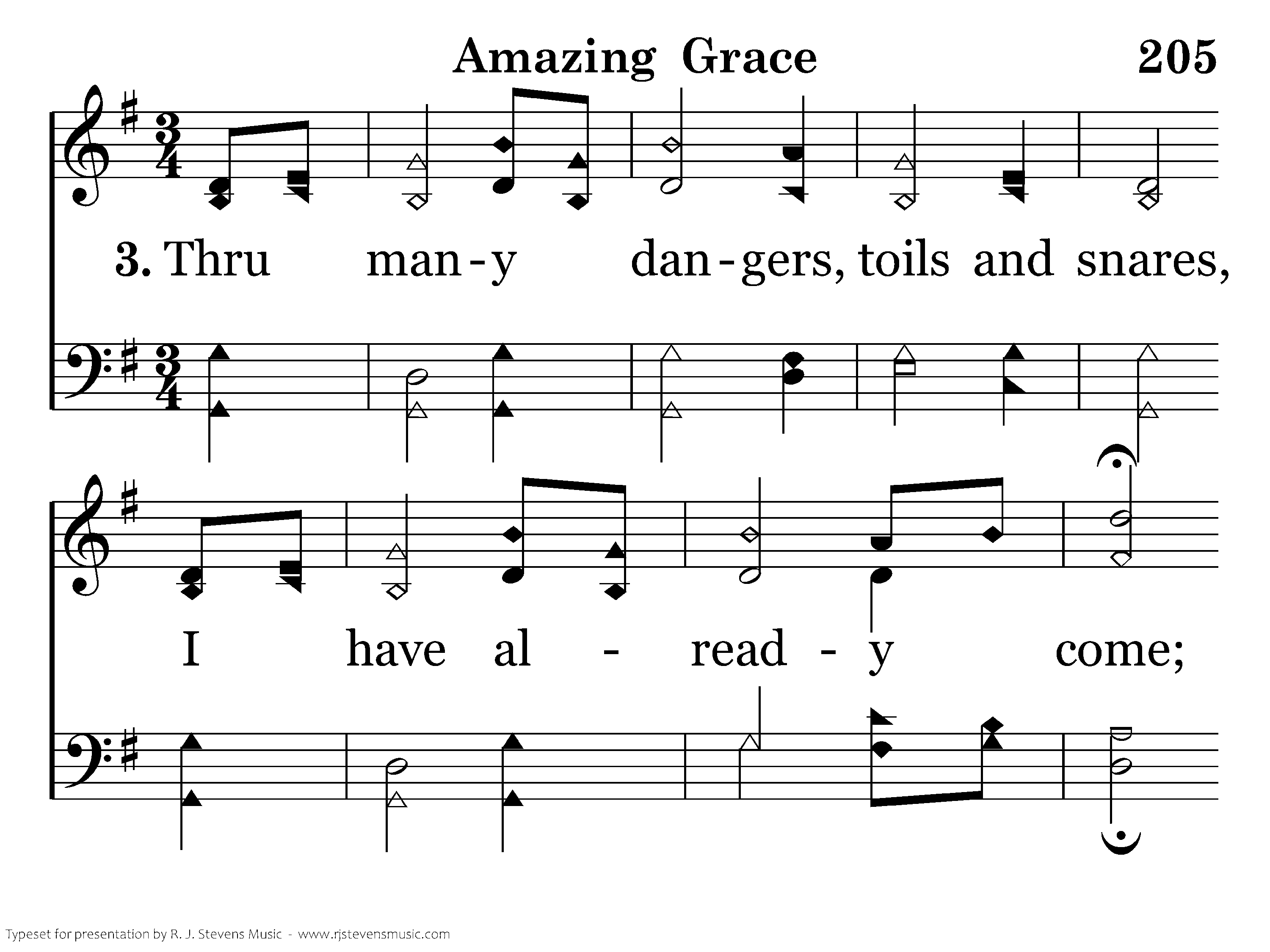 Thru many dangers toils and snares I have already come; 'Twas grace that bro't me safe thus far And grace will lead me home.