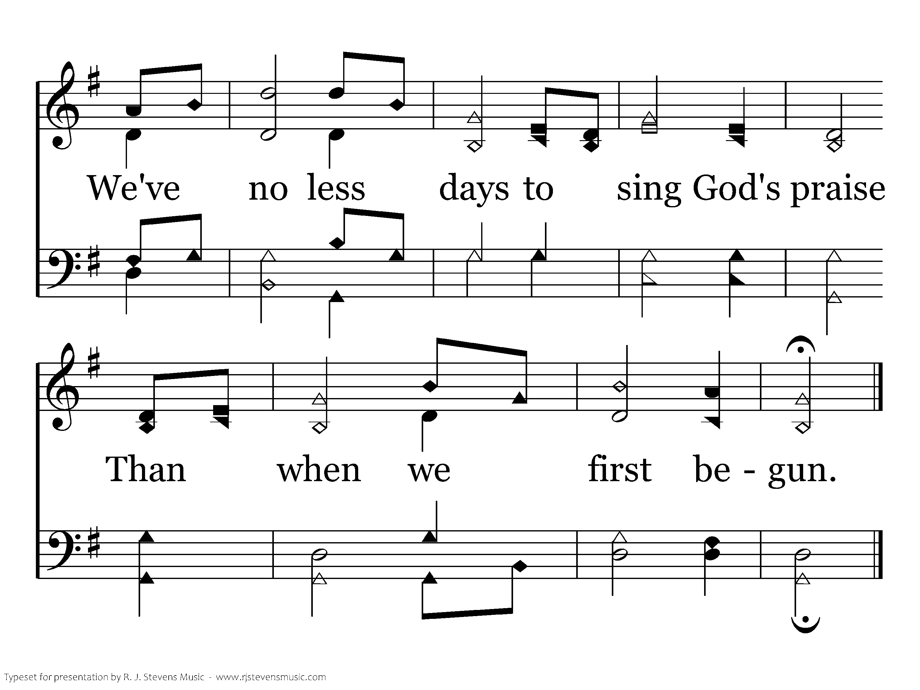 When we've been there tenthousand years, Bright shining as the sun; We've no lesss days to sing God's praise Then when we first begun.