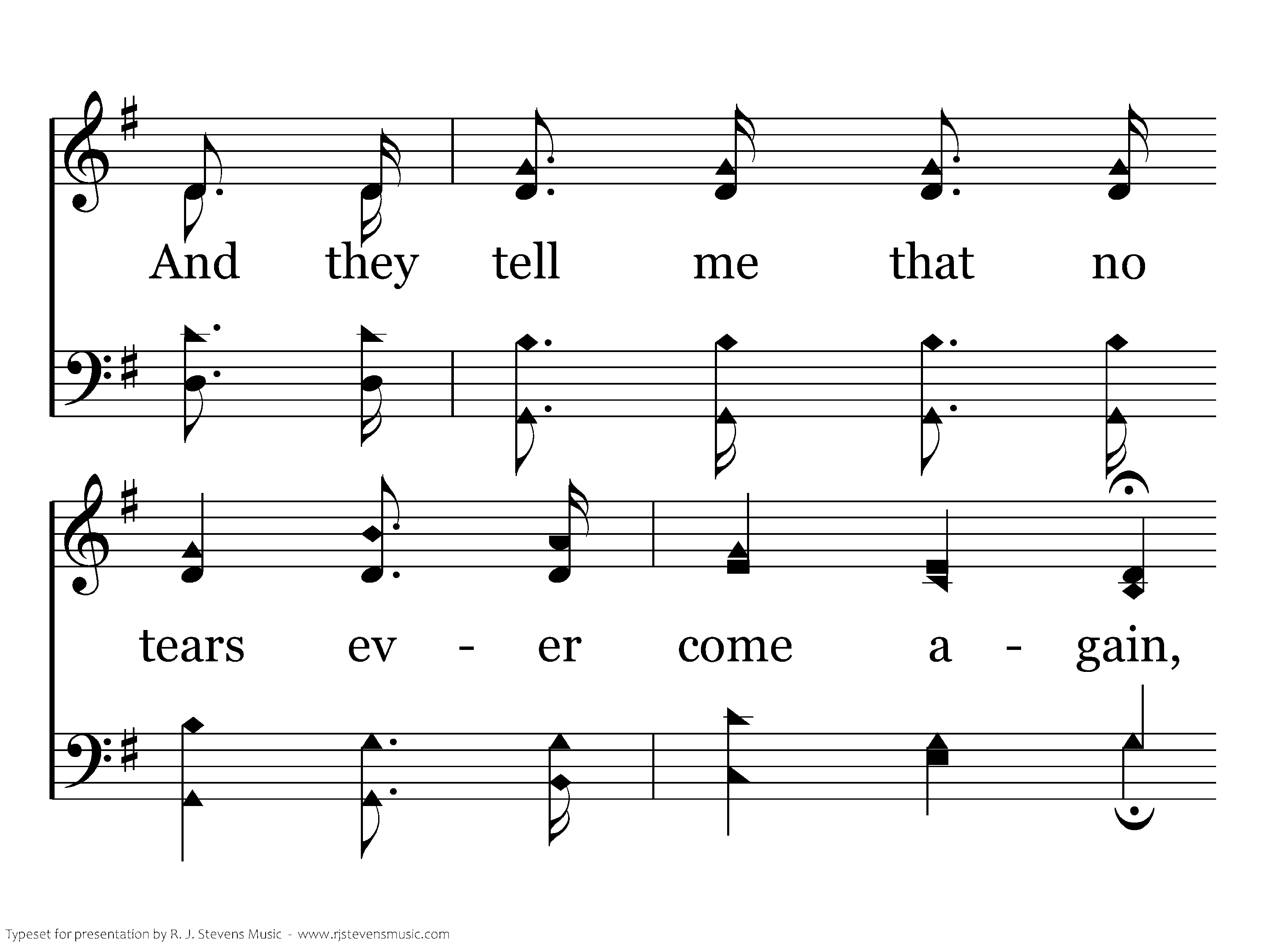 O they tell me of a home far beyond the skies, O they tell me of a home far away; O they tell me of a home where no stormclouds rise, O they tell me of an unclouded day.