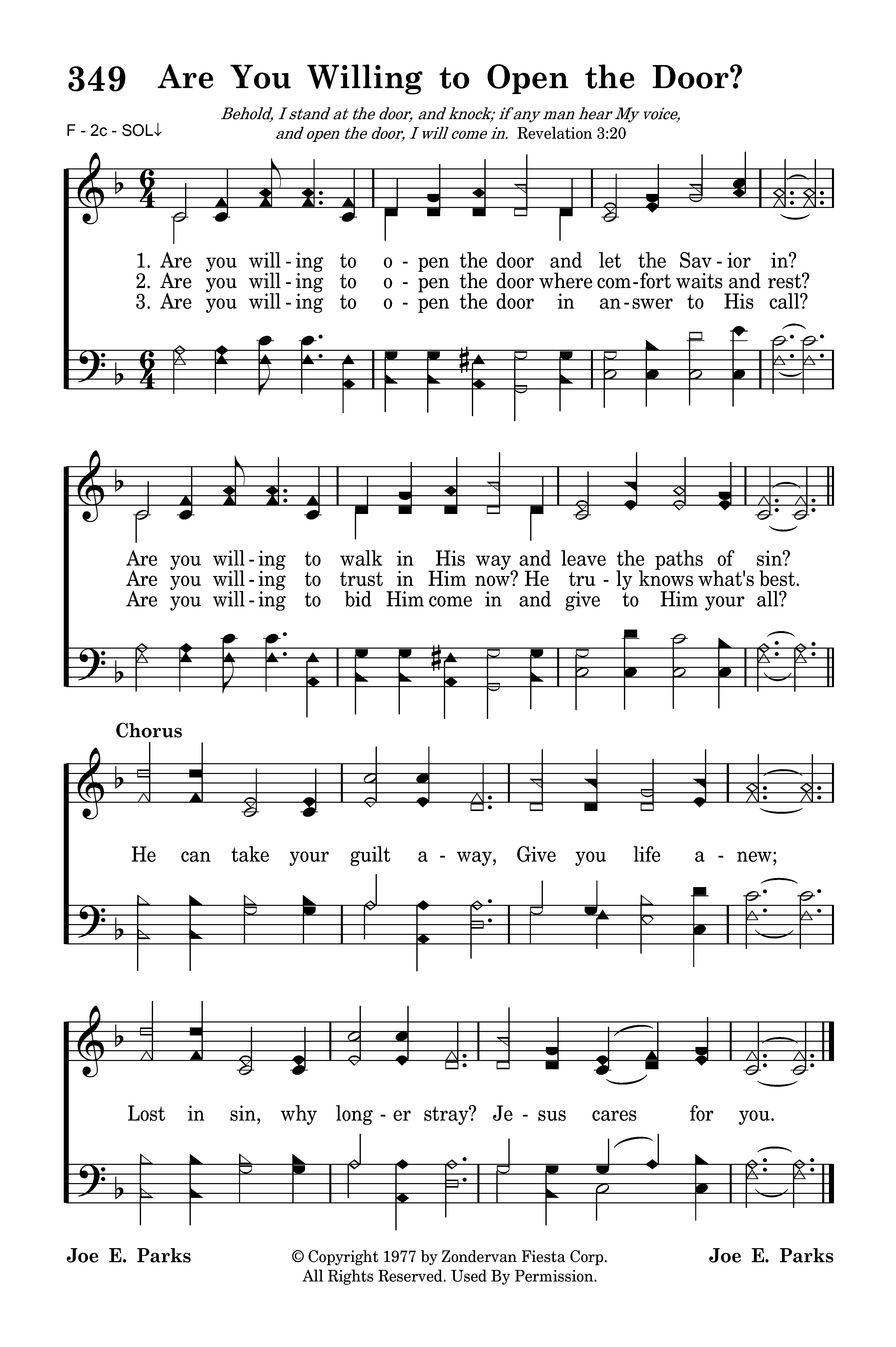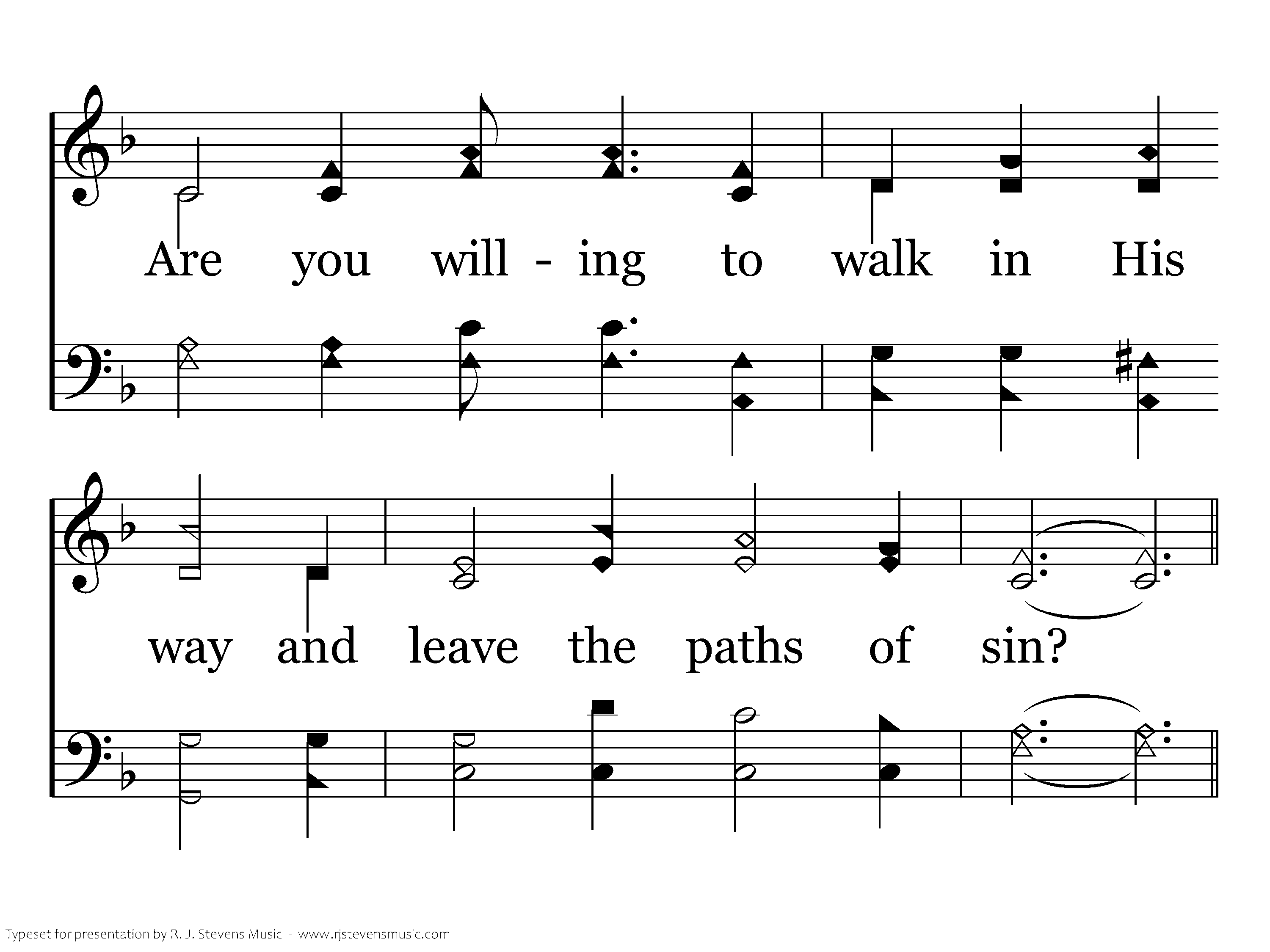 Are yo uwilling to open the door and let the Savior in? Are you willing to walk in His way and leave the paths of sin?