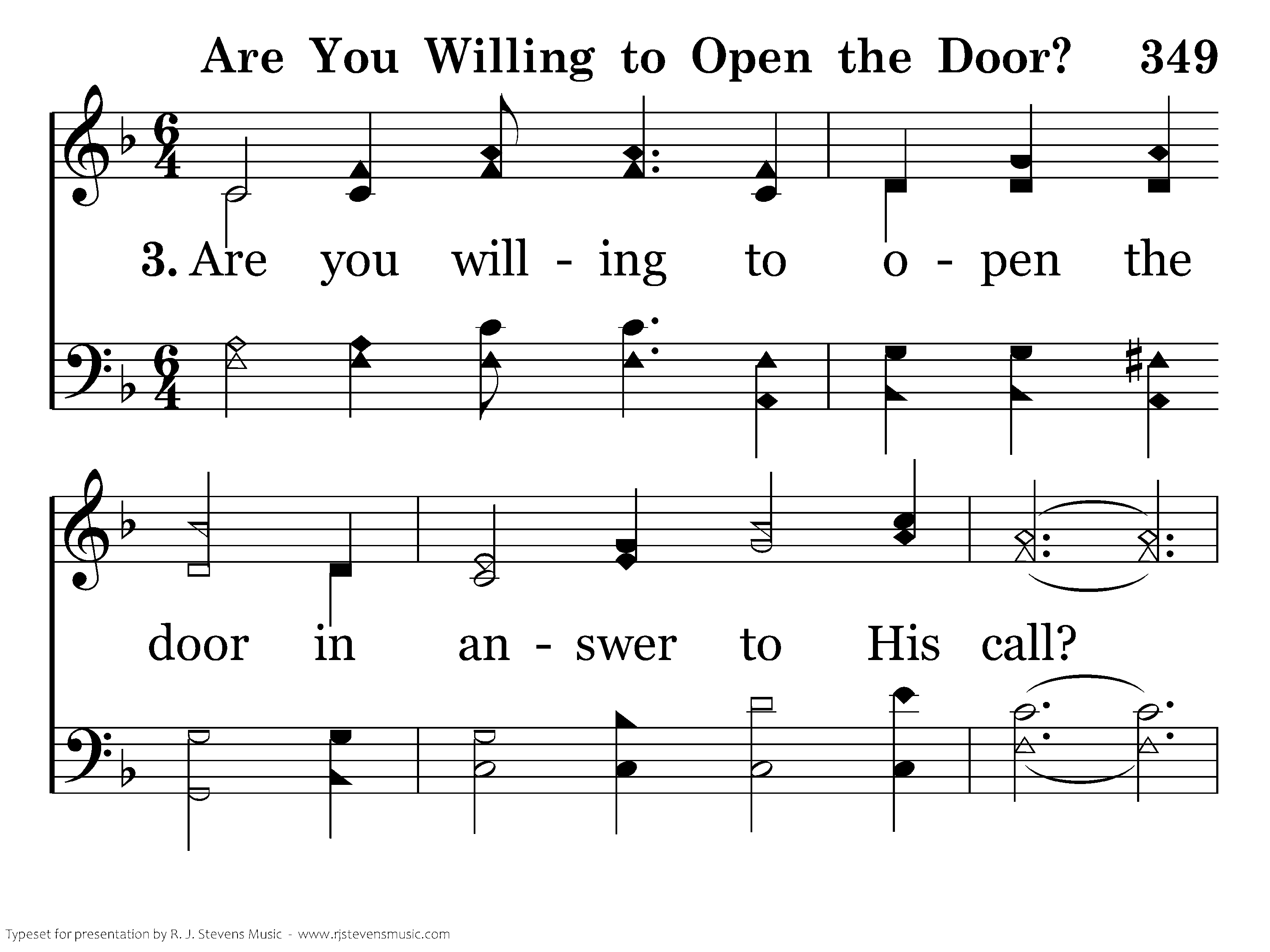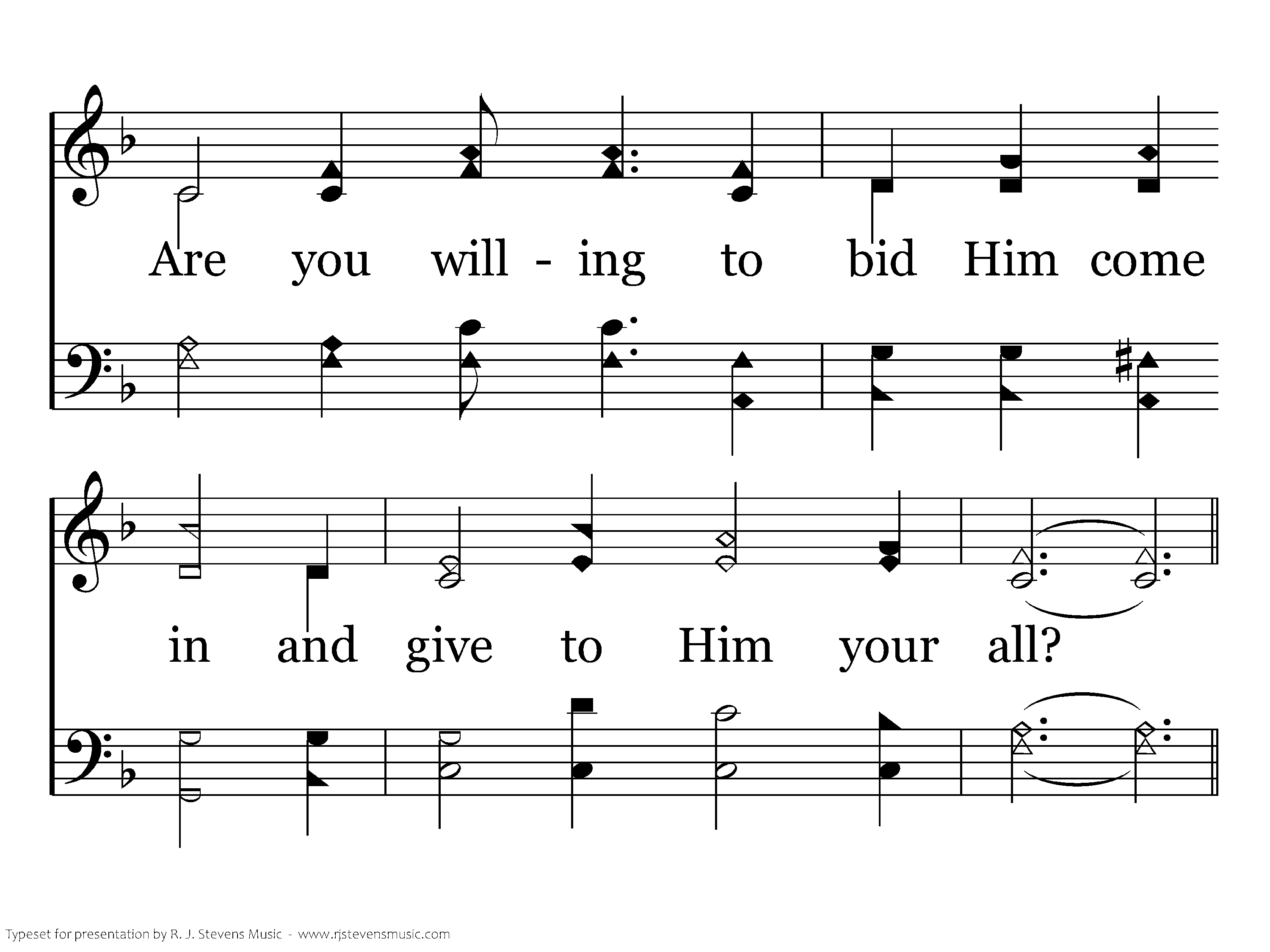 Are you willing to open the door in answer to His call? Are you willing to bid Him come in and give Him your all?