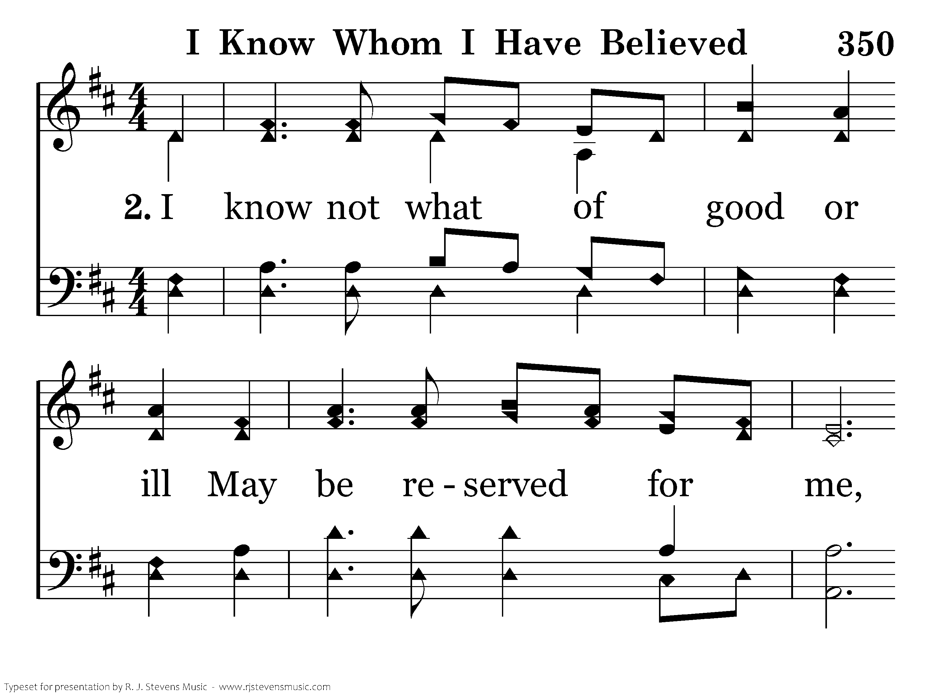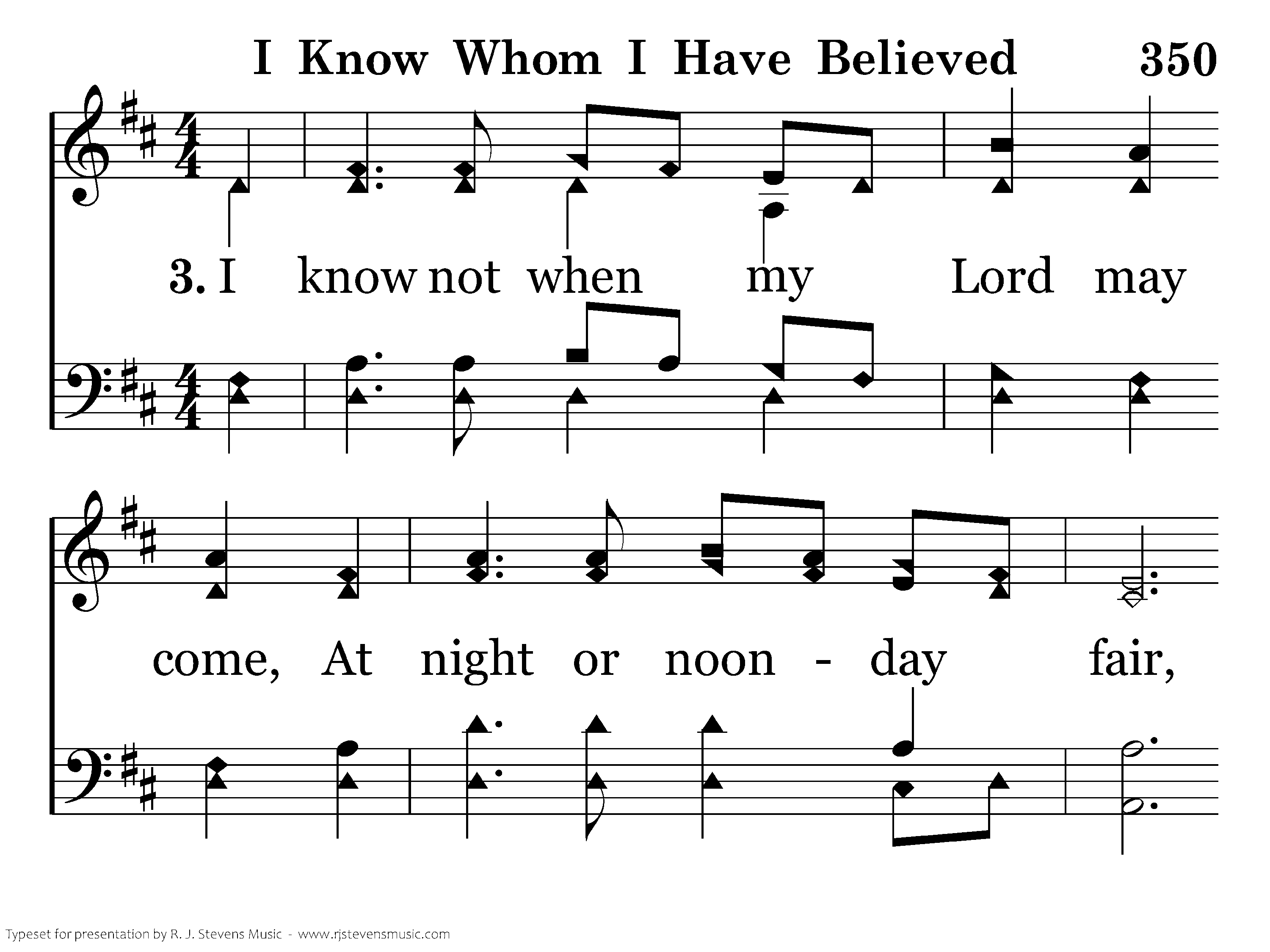 But I know whom I have believed And am persuaded that He is able To keep that which I've committed Unto Him against that day.