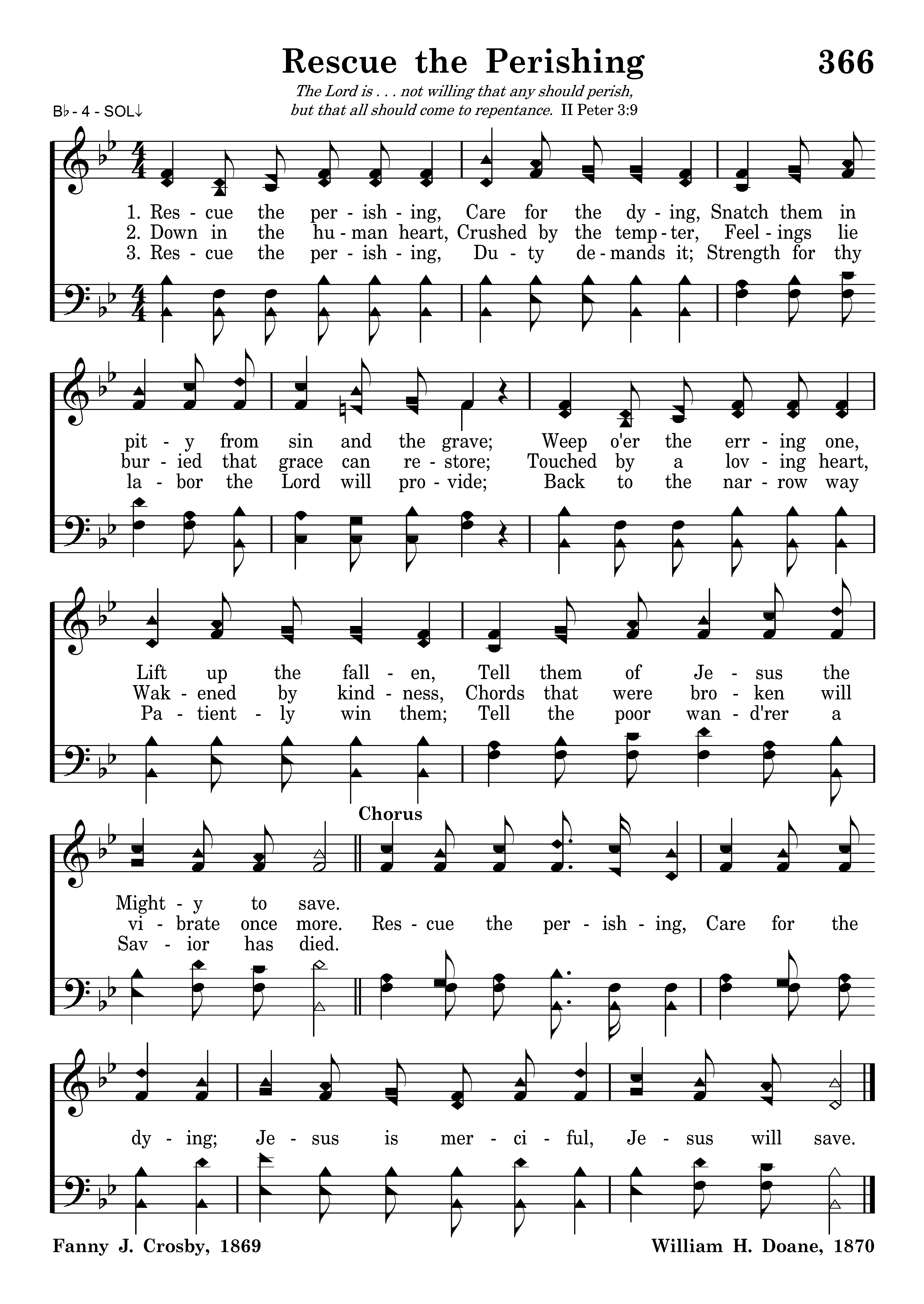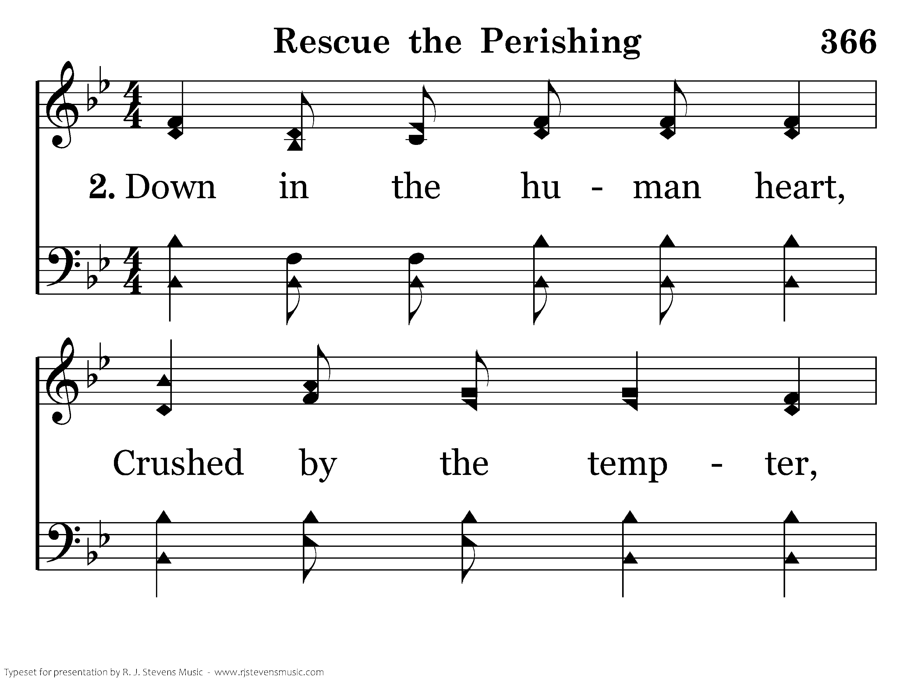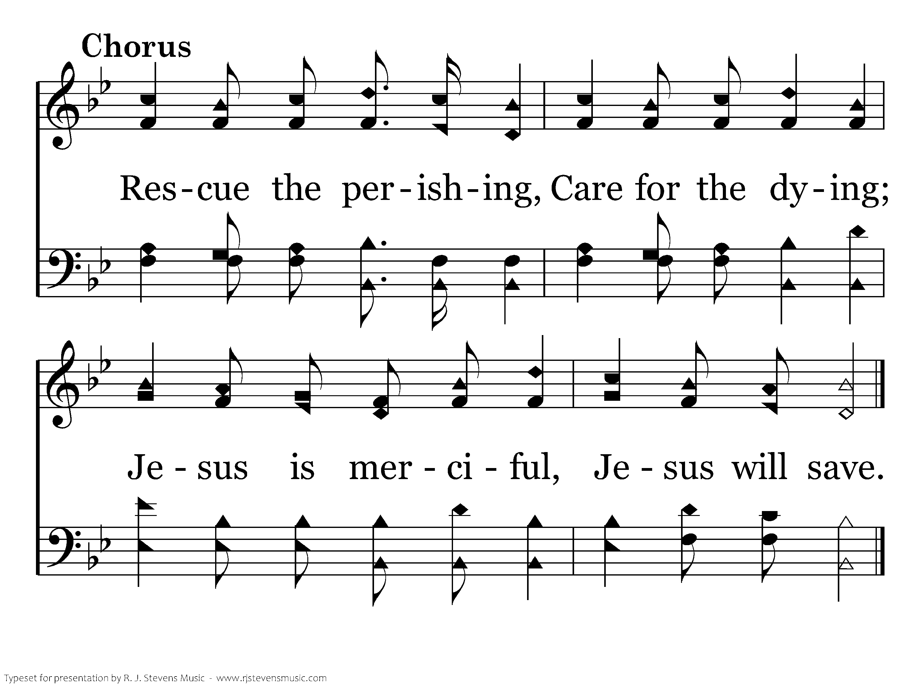Rescue the perishing, Care for the dying, Snatch them in pity from sin and the grave; Weep o'er the erring one, Lift up the fallen, Tell them of Jesus the Mighty to save.
