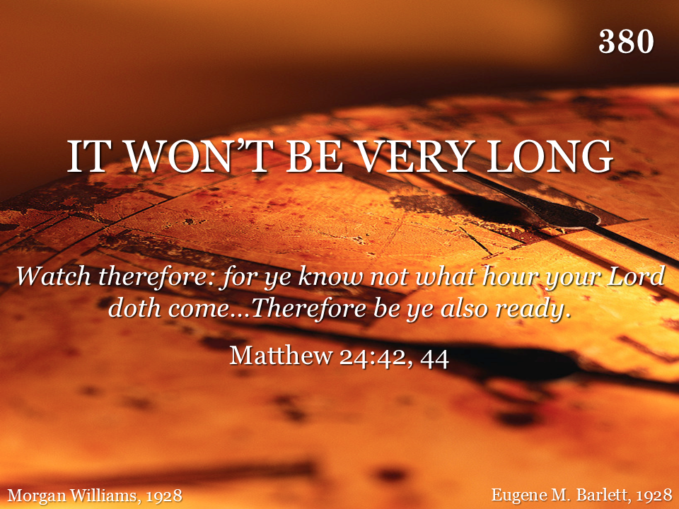 It won't be very long till earth shall pass away, It won't be very long till works of men decay; But Jesus has prepared a happy dwelling place, For all who look above and trust His matchless grace.