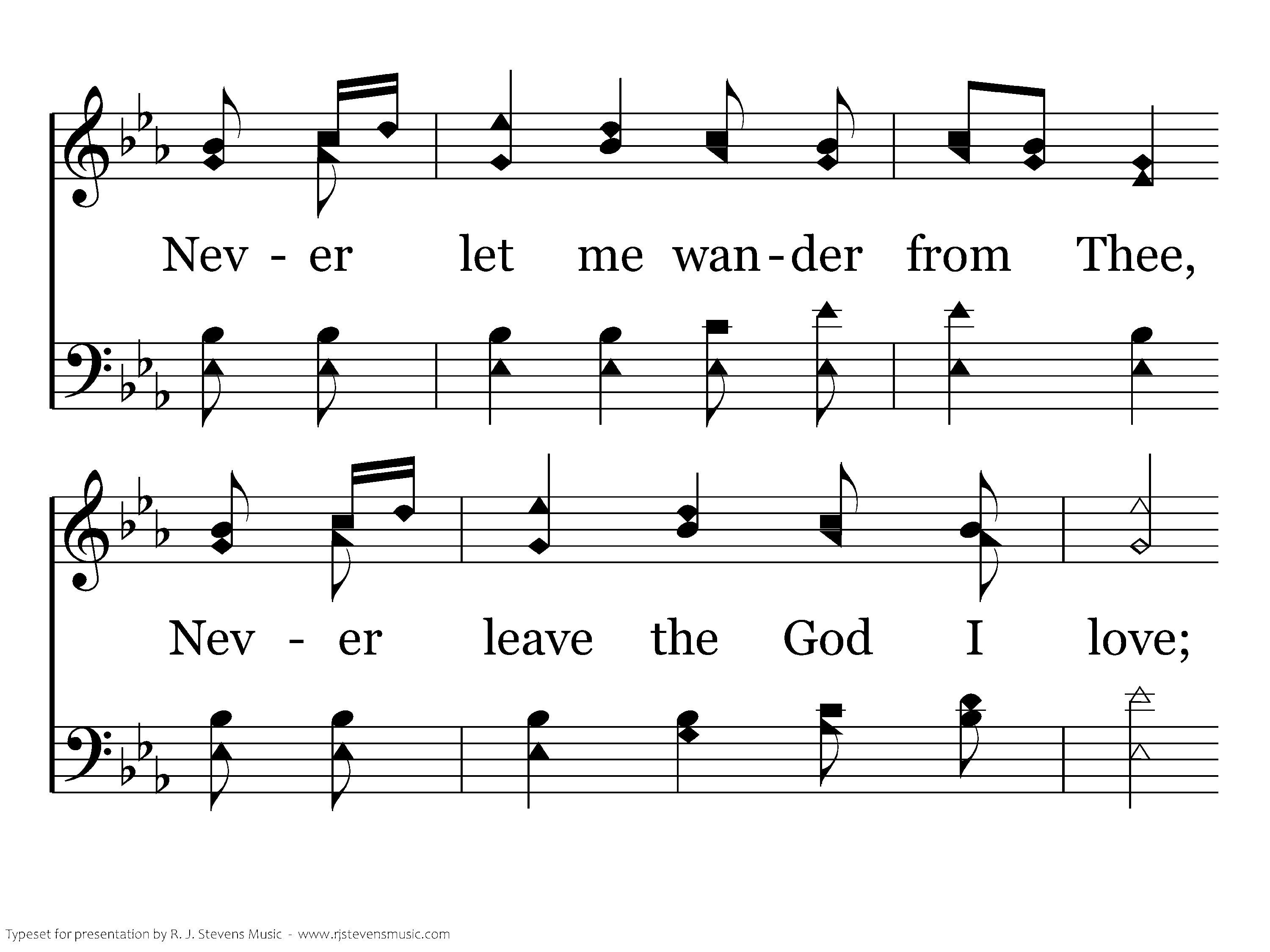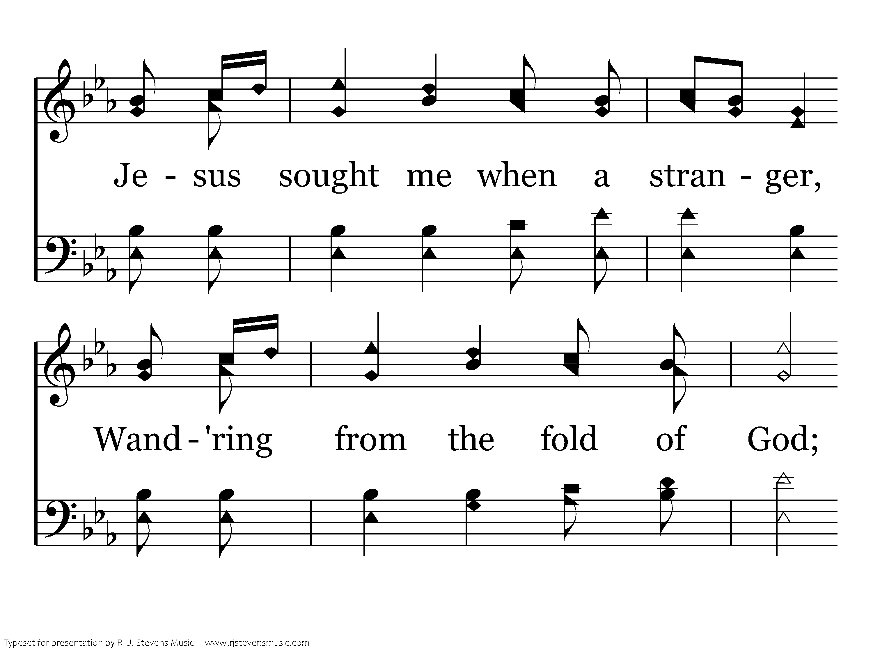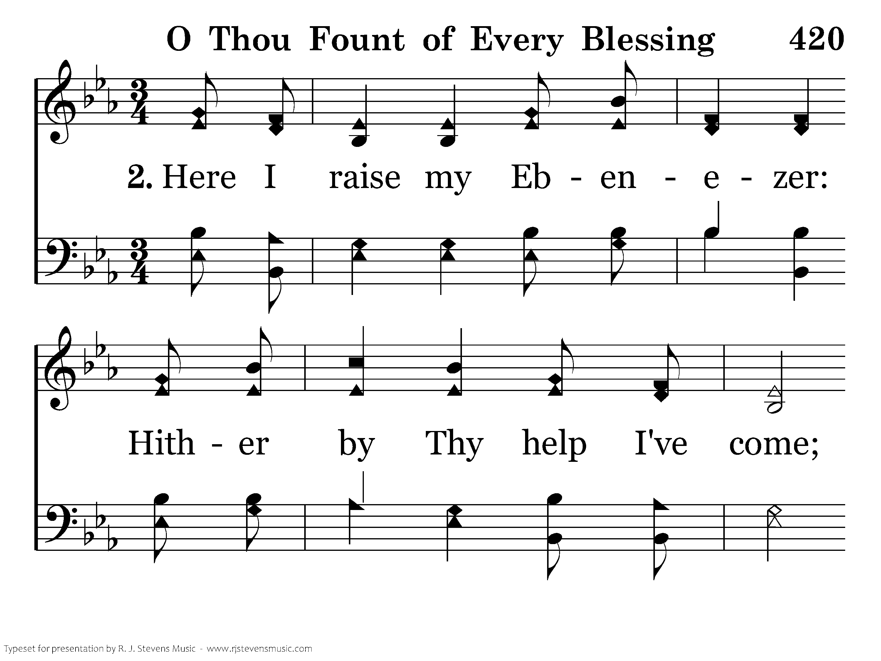 Here I raise my Ebenezer: Hither by Thy help I've come; And I hope by Thy good pleasure Safely to arrive at home; Jesus sought me when a stran-ger, Wand'ring from the fold of God; He to rescue me from danger Interposed His precious blood.