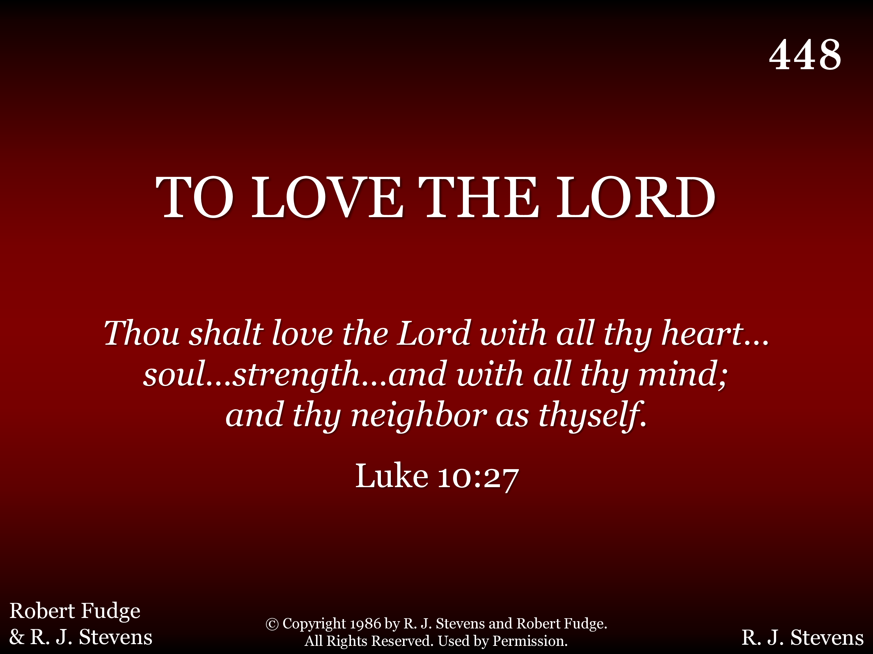 - Copyright ©1986 by R. J. Stevens & Robert Fudge. All Rights Reserved. Used by Permission.