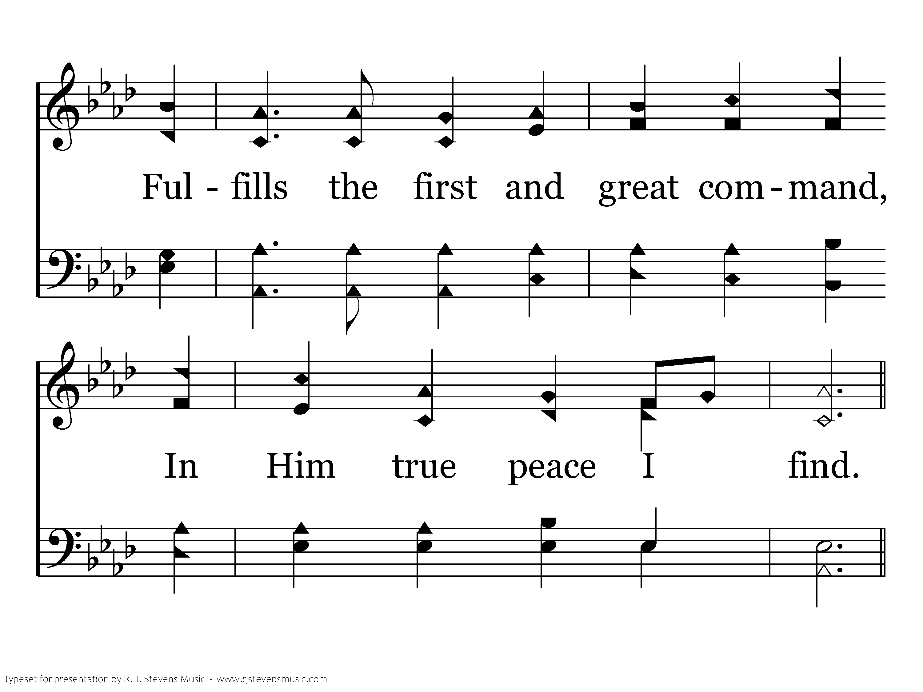 To love the Lord with heart and soul, To love Him with the mind, Fulfills the first and great command; In Him true peace I find.