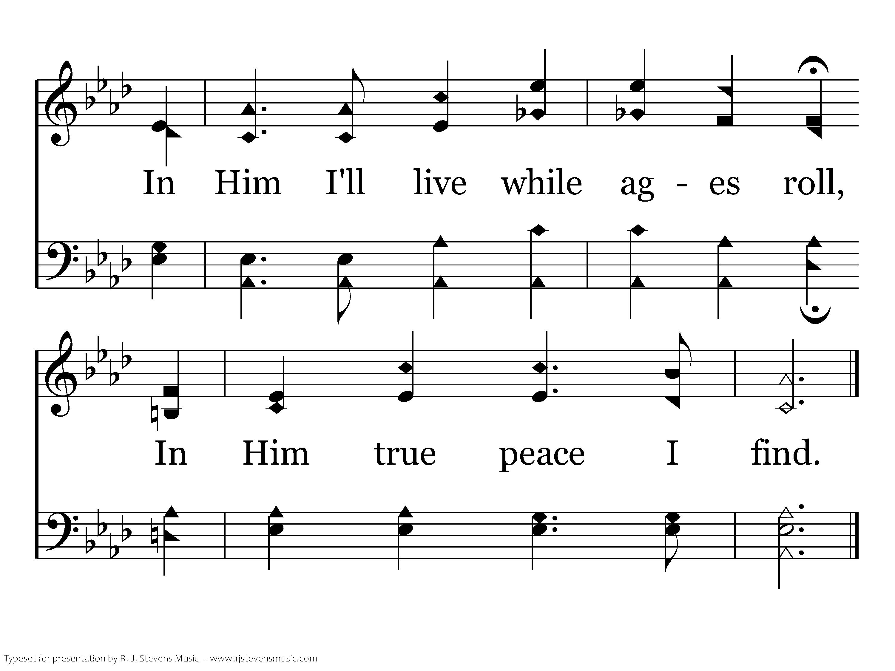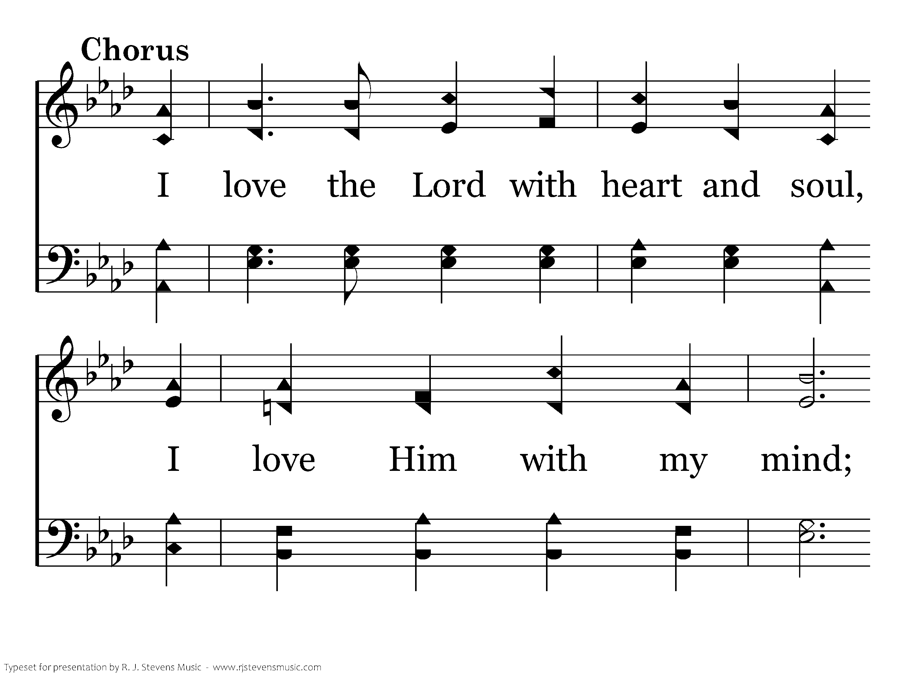 I love the Lord with heart and soul, I love Him with my mind; In Him I'll live while ages roll, In Him true peace I find.