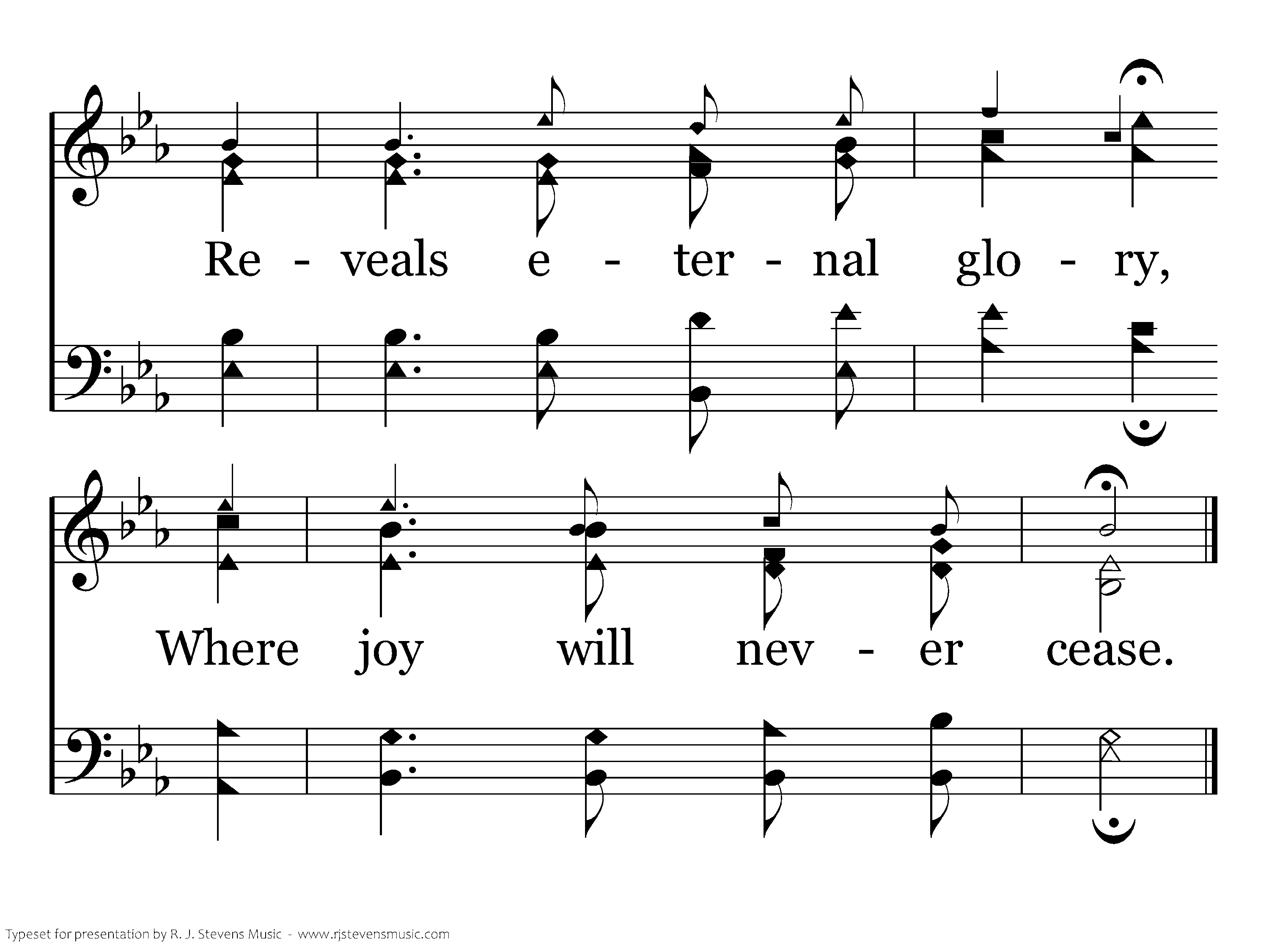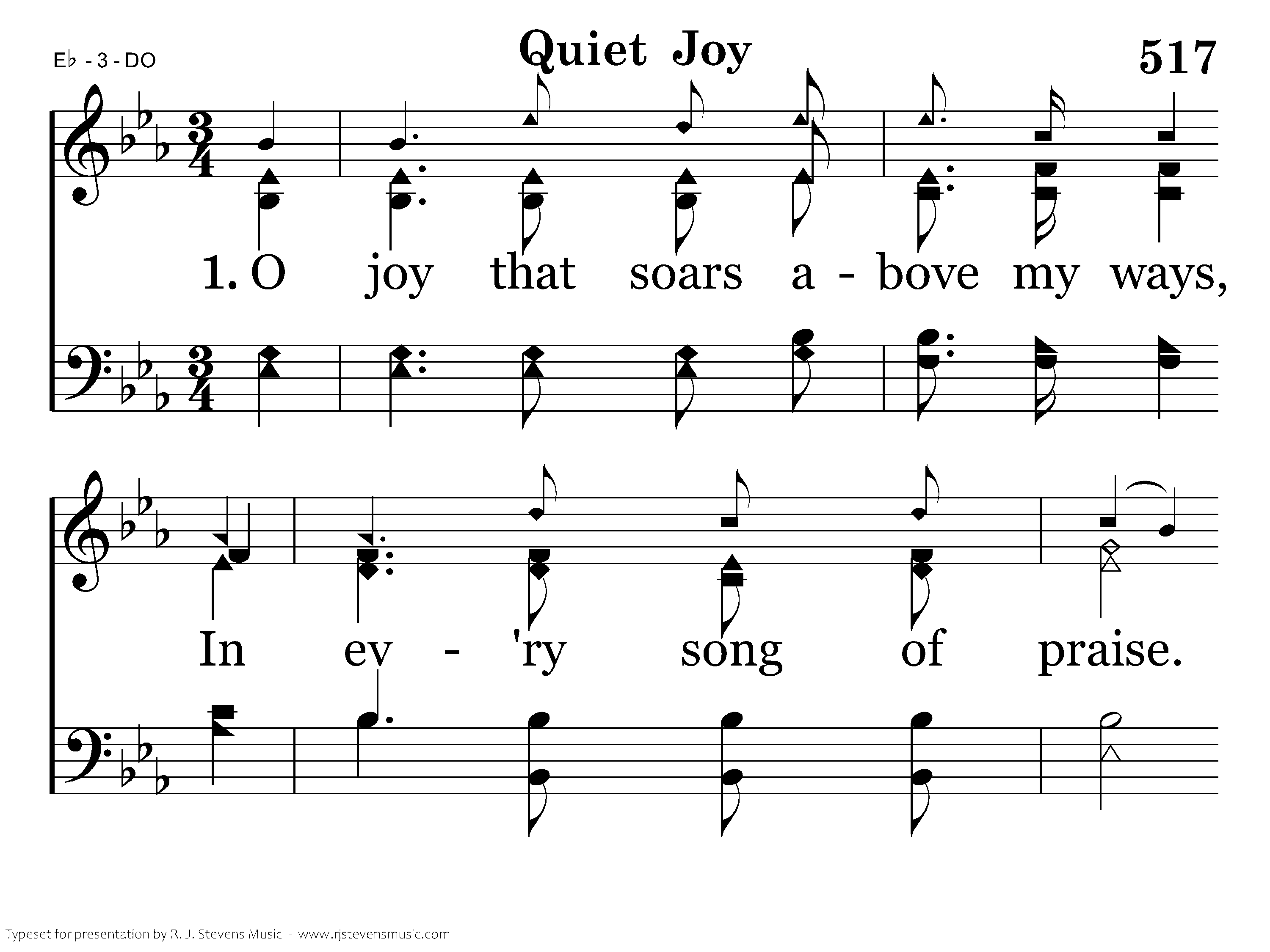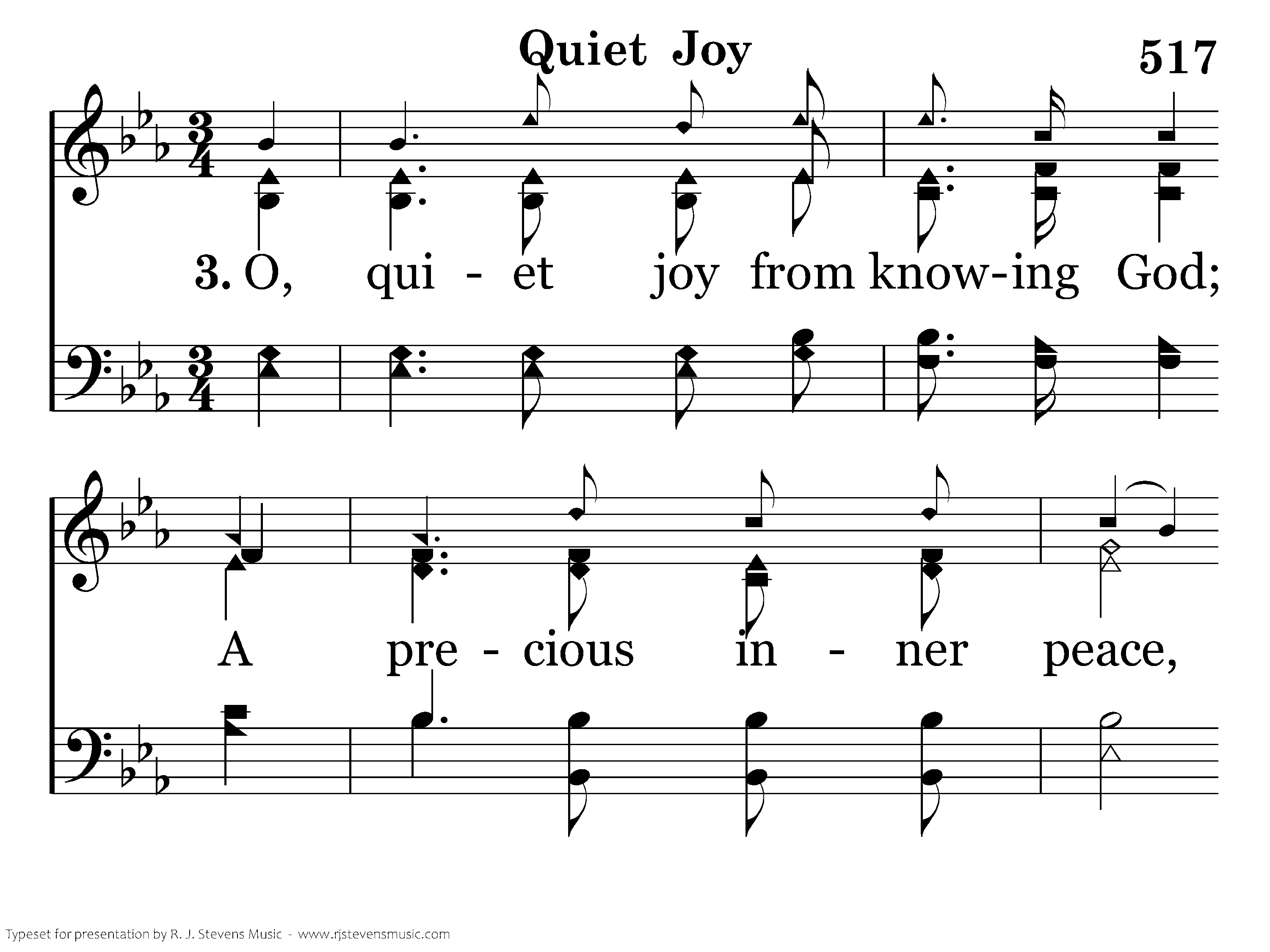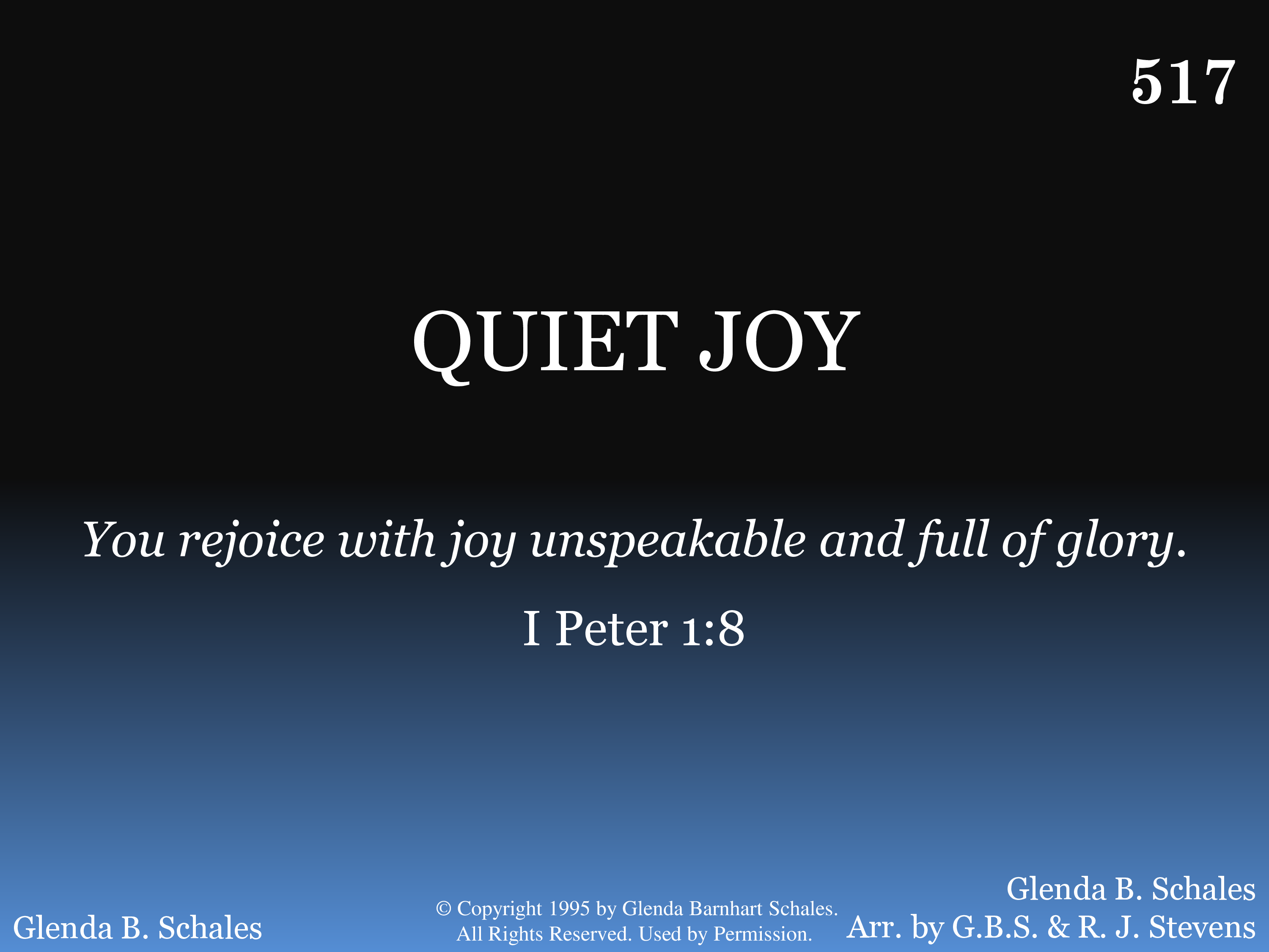 O, quiet joy from knowing God; A precious inner peace, Reveals eternal glory, Where joy will never cease.