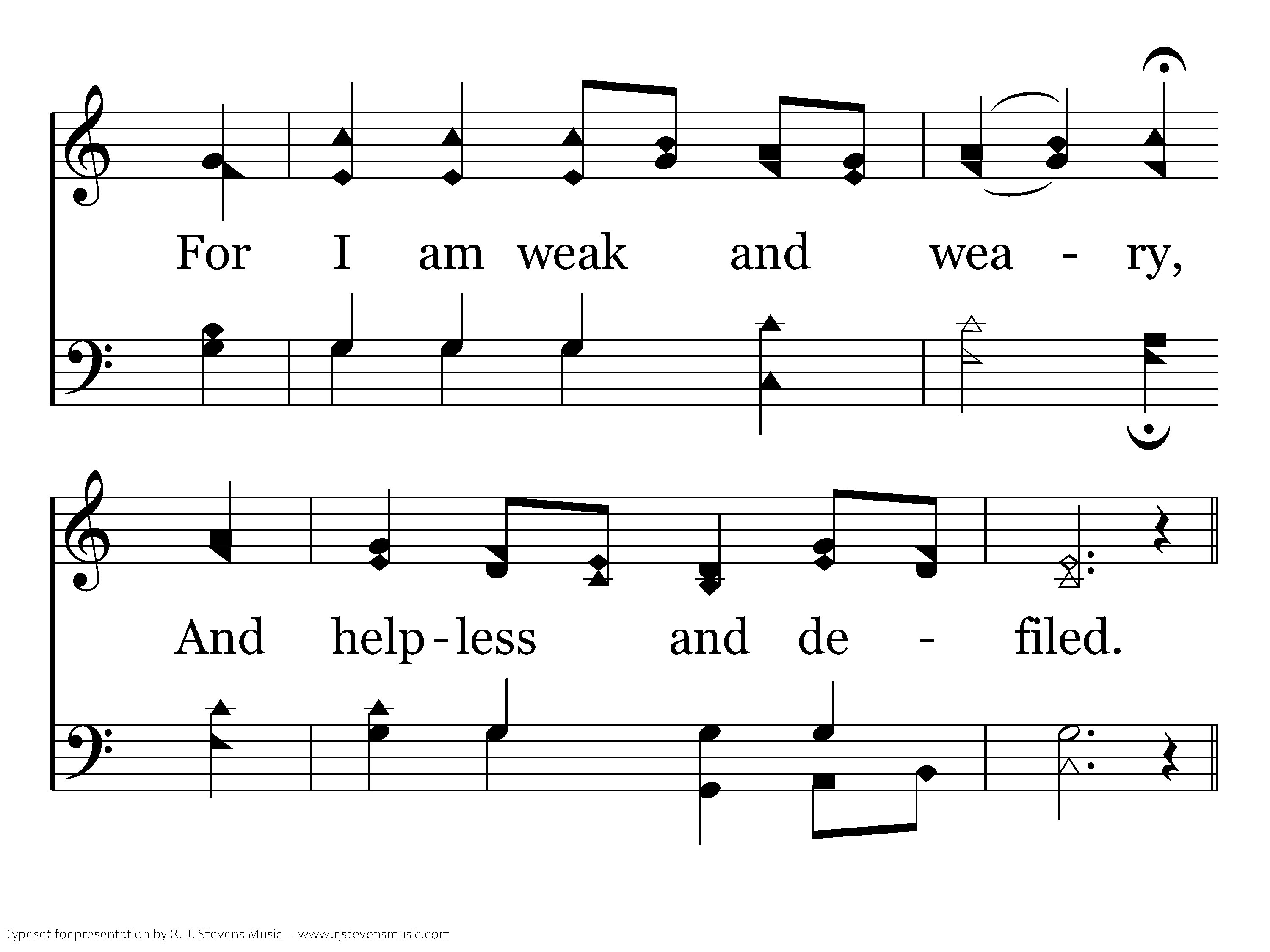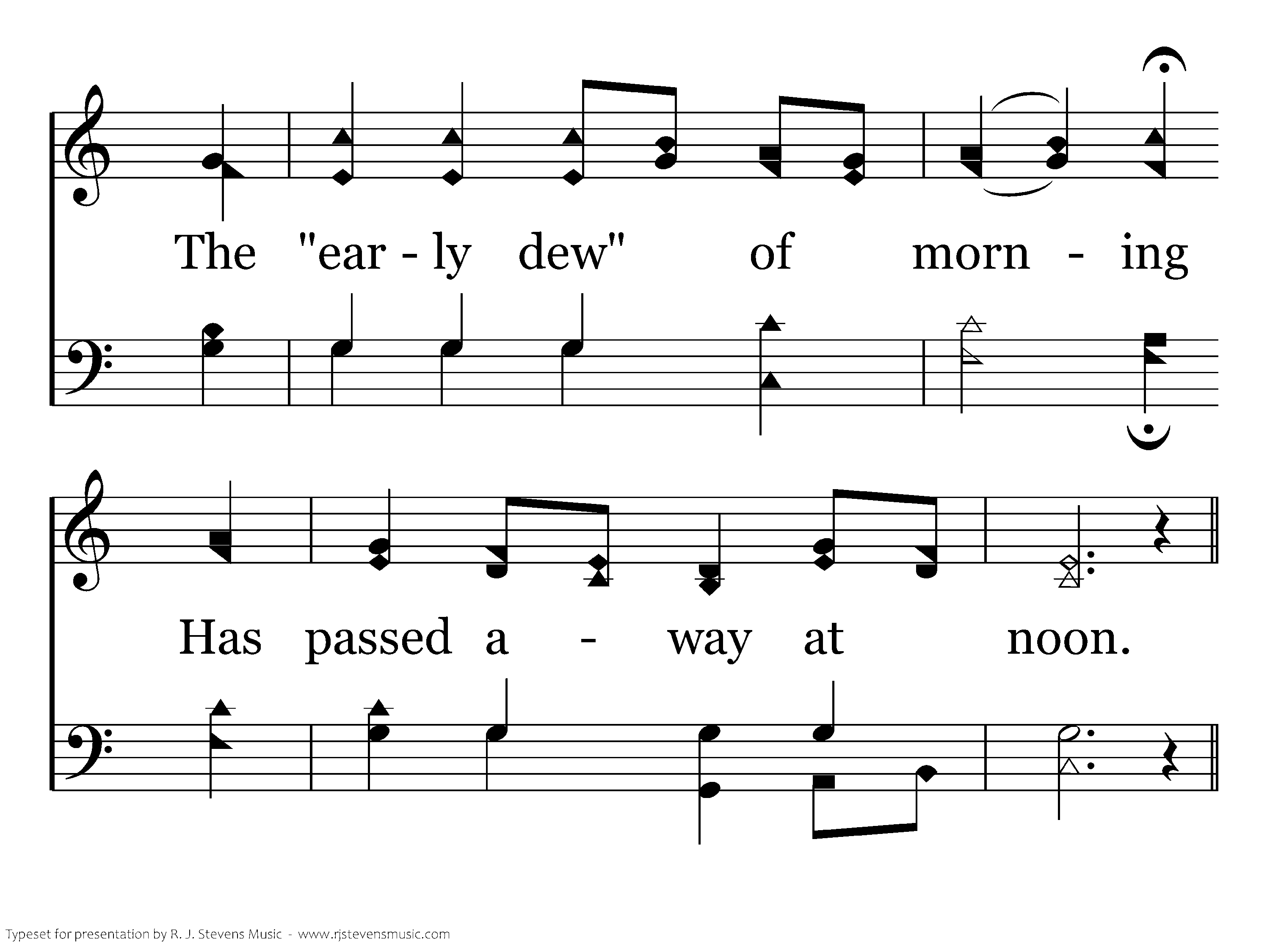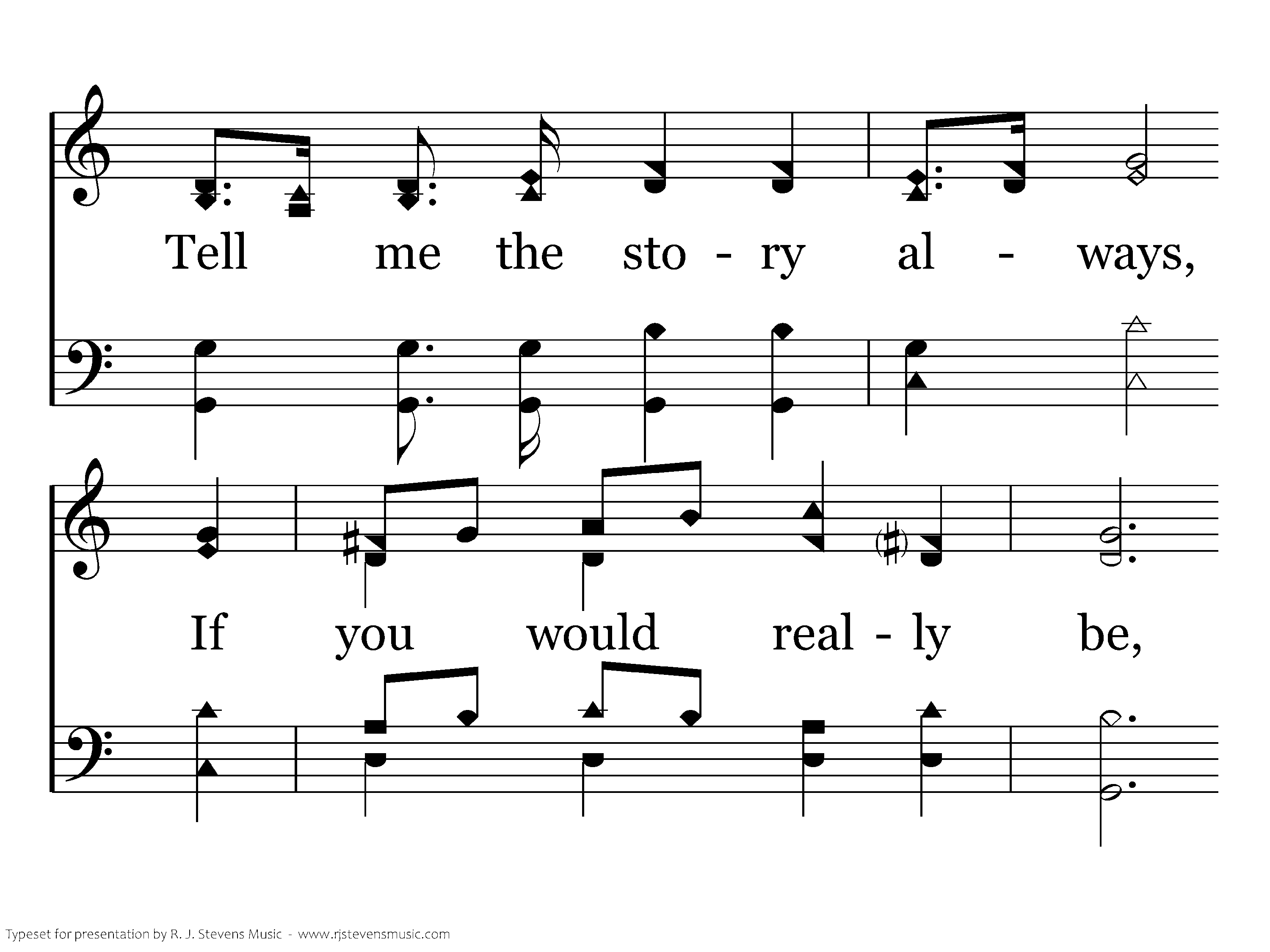 Tell me the story slowly, That I may take it in, That wonderful redemption, God's remedy for sin; Tell me the story often, For I forget so soon: The "early dew" of morning Has passed away at noon.