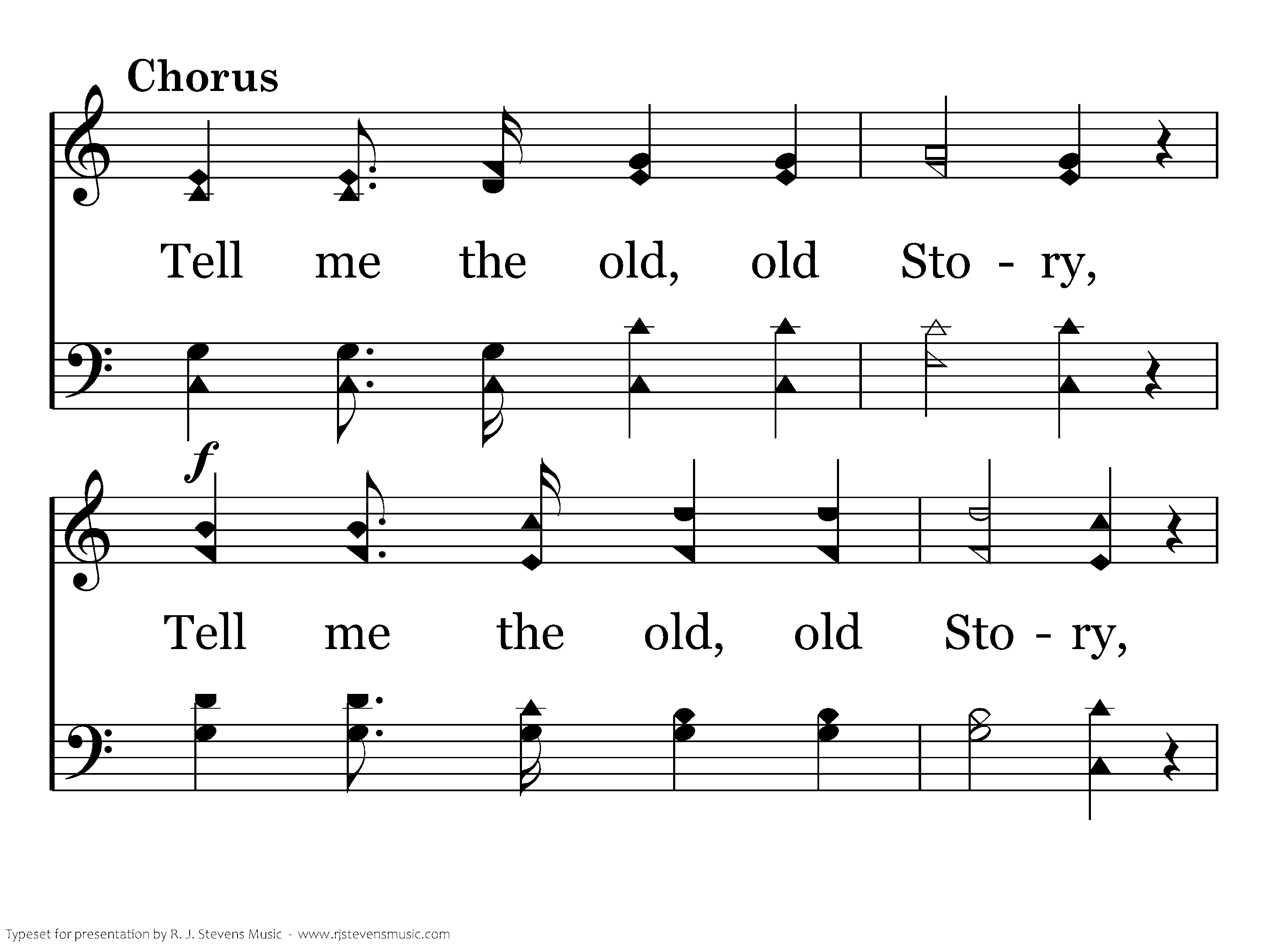 Tell me the old, old Story, Tell me the old, old Story, Tell me the old, old Story Of Jesus and His love.