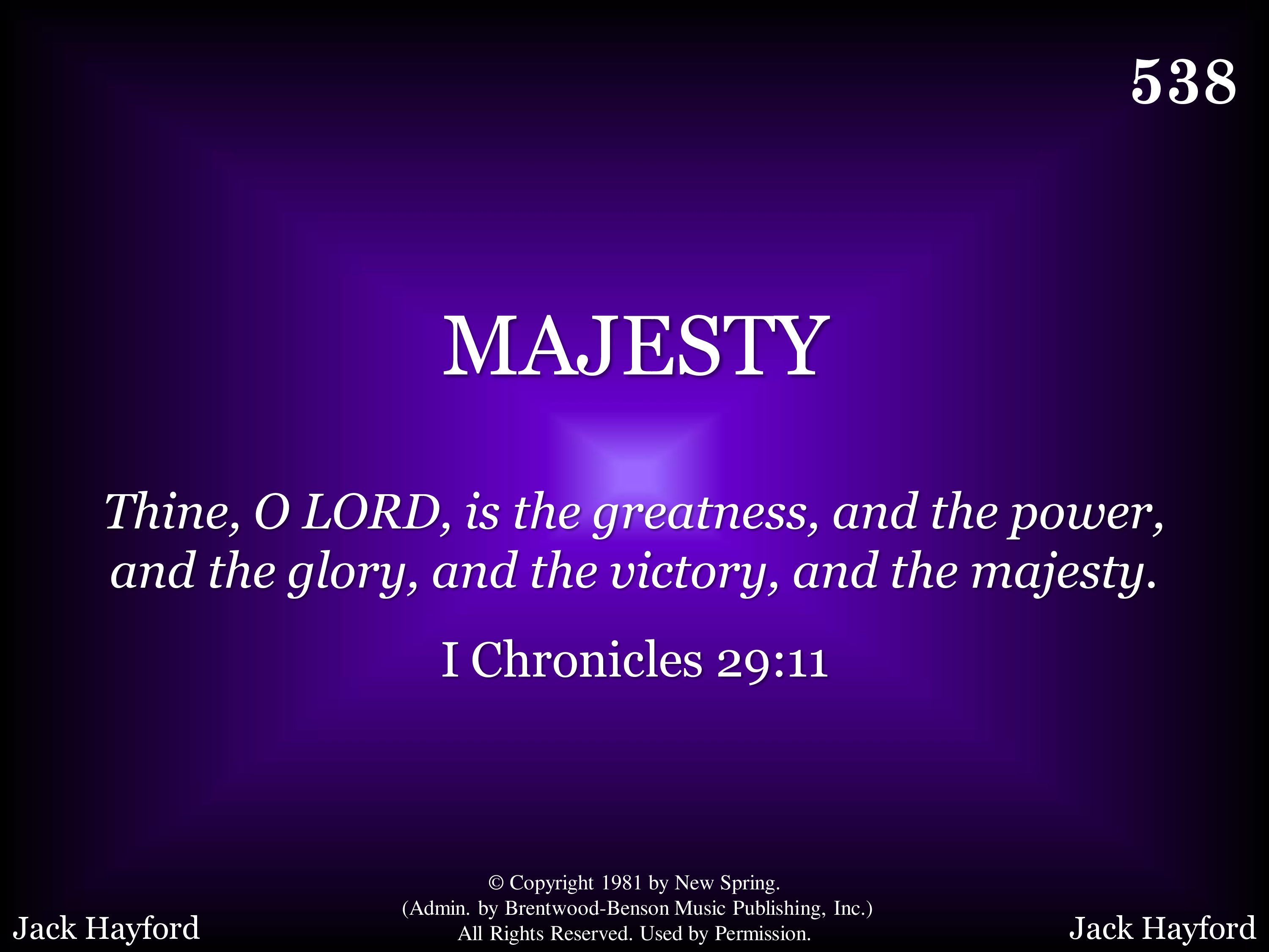- Copyright © 1981 by New Spring. (Admin. by Brentwood-Benson Music Publishing, Inc.) All Rights Reserved. Used by Permission.