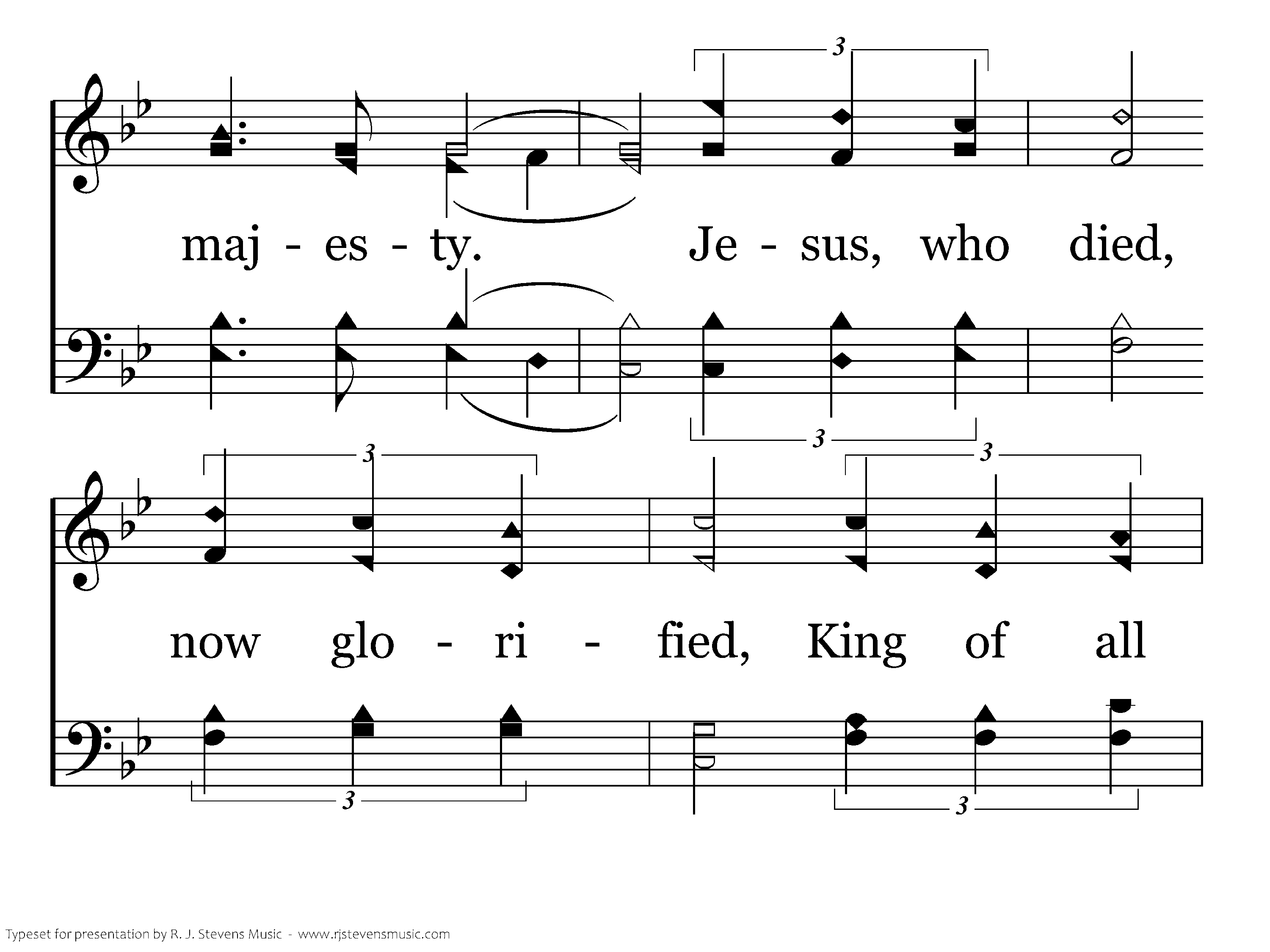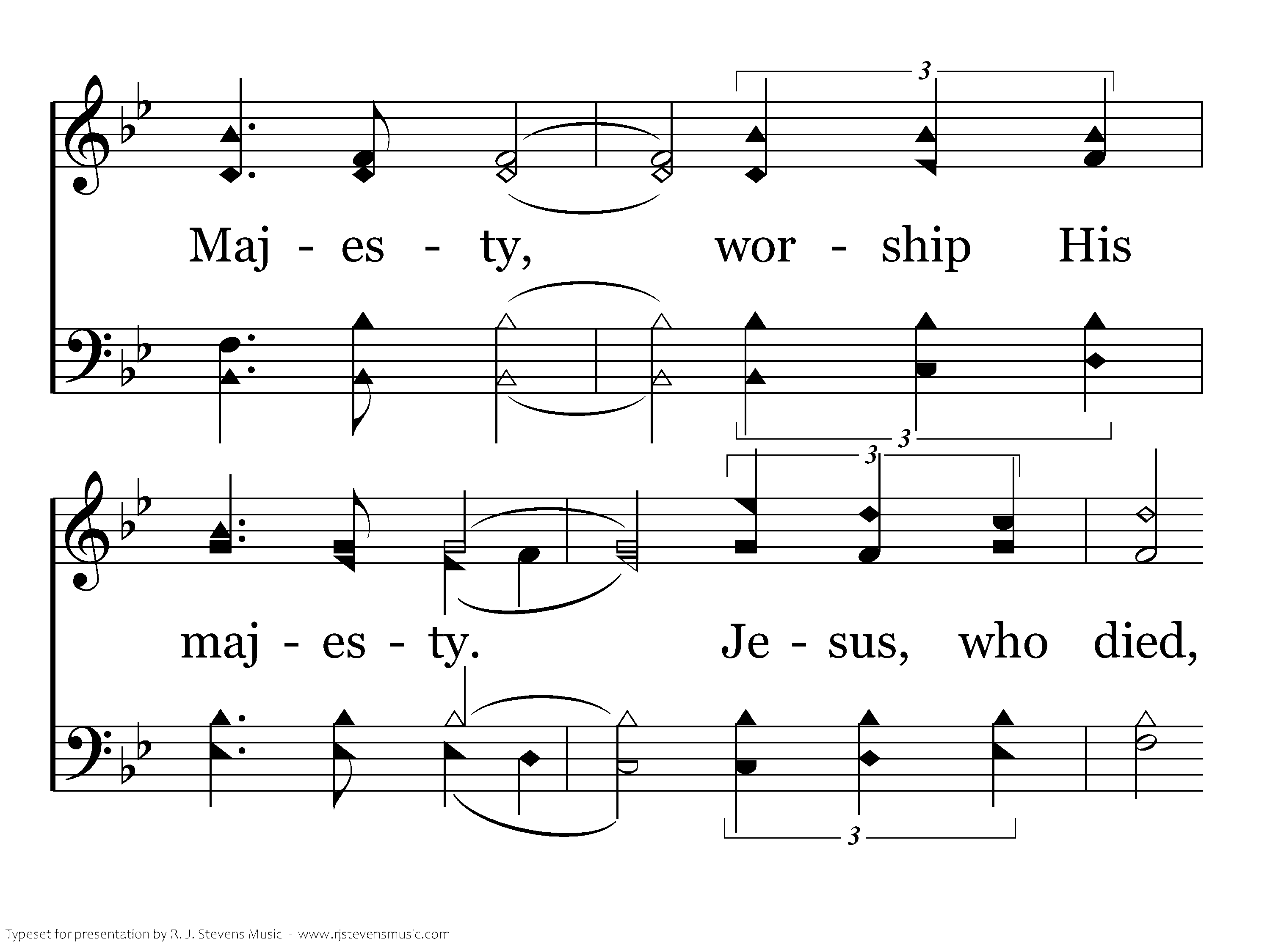 Majesty, worship His majesty; Unto Jesus be all glory, power and praise. Majesty, Kingdom authority, flow from His throne unto His own, His anthem raise. So exalt, lift up on high the name of Jesus; Magnify, come glorify Christ Jesus the King. Majesty, worship His majesty; Jesus, who died, now glorified, King of all kings. So exalt, lift up on high the name of Jesus; Magnify, come glorify Christ Jesus the King. Majesty, worship His majesty; Jesus, who died, now glorified, King of all kings.