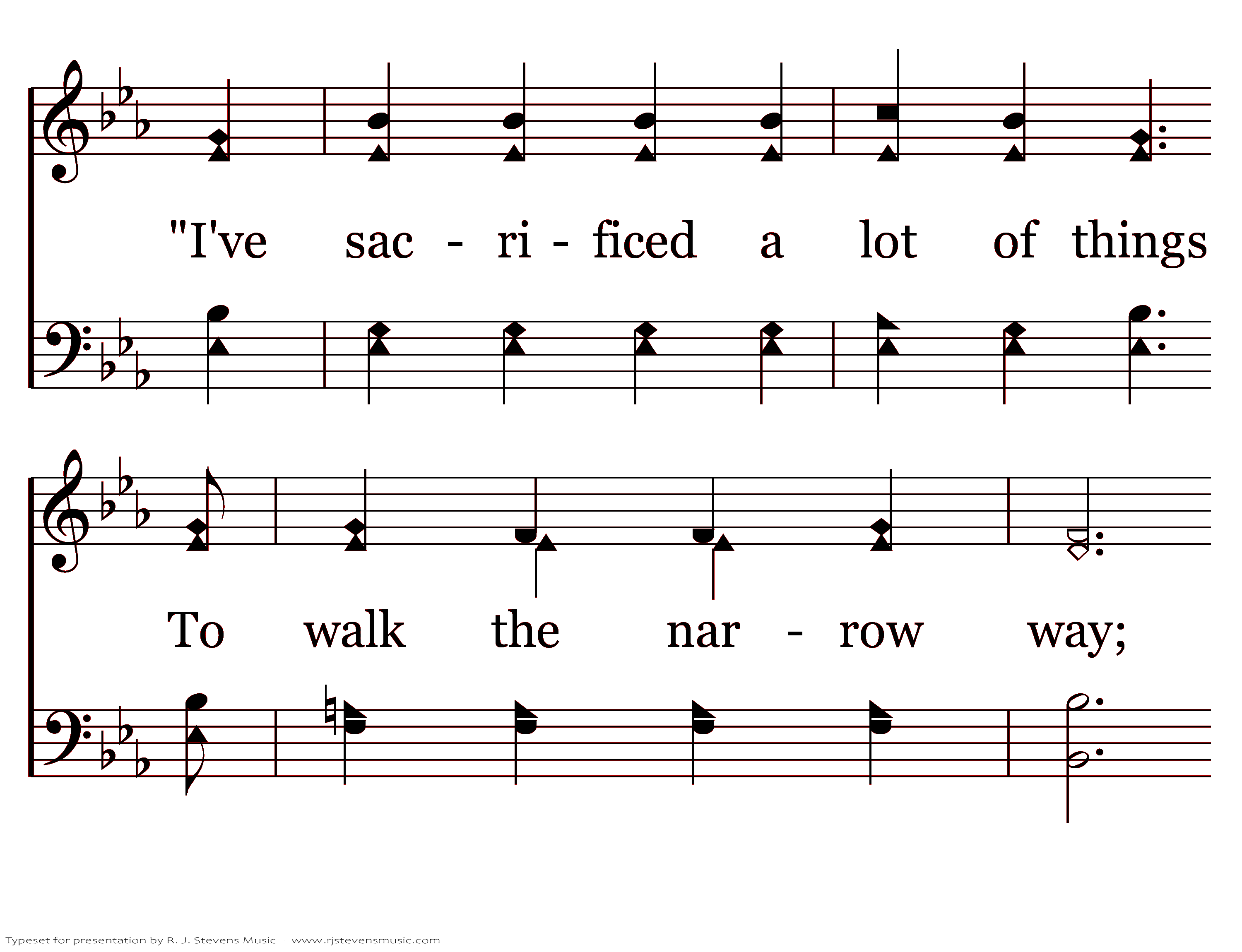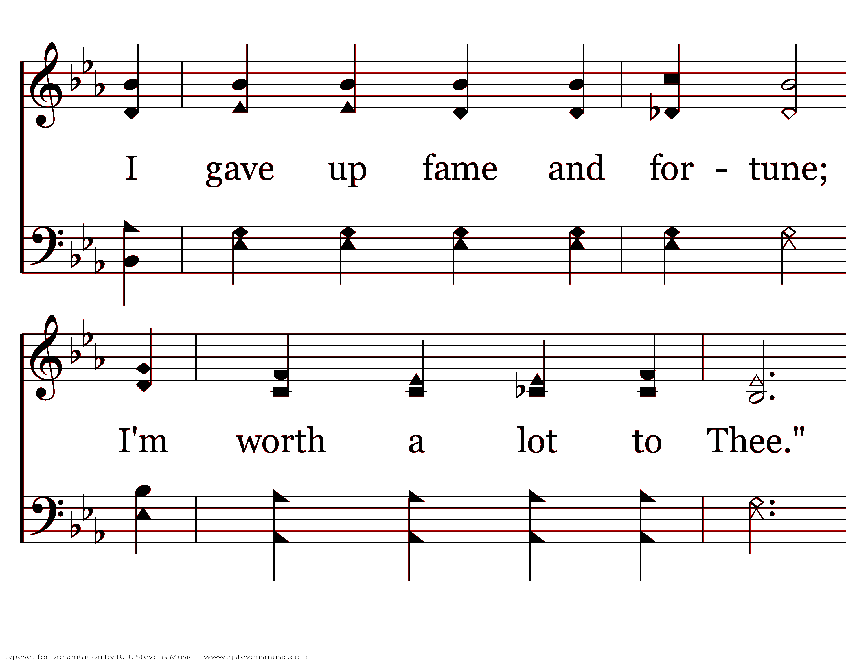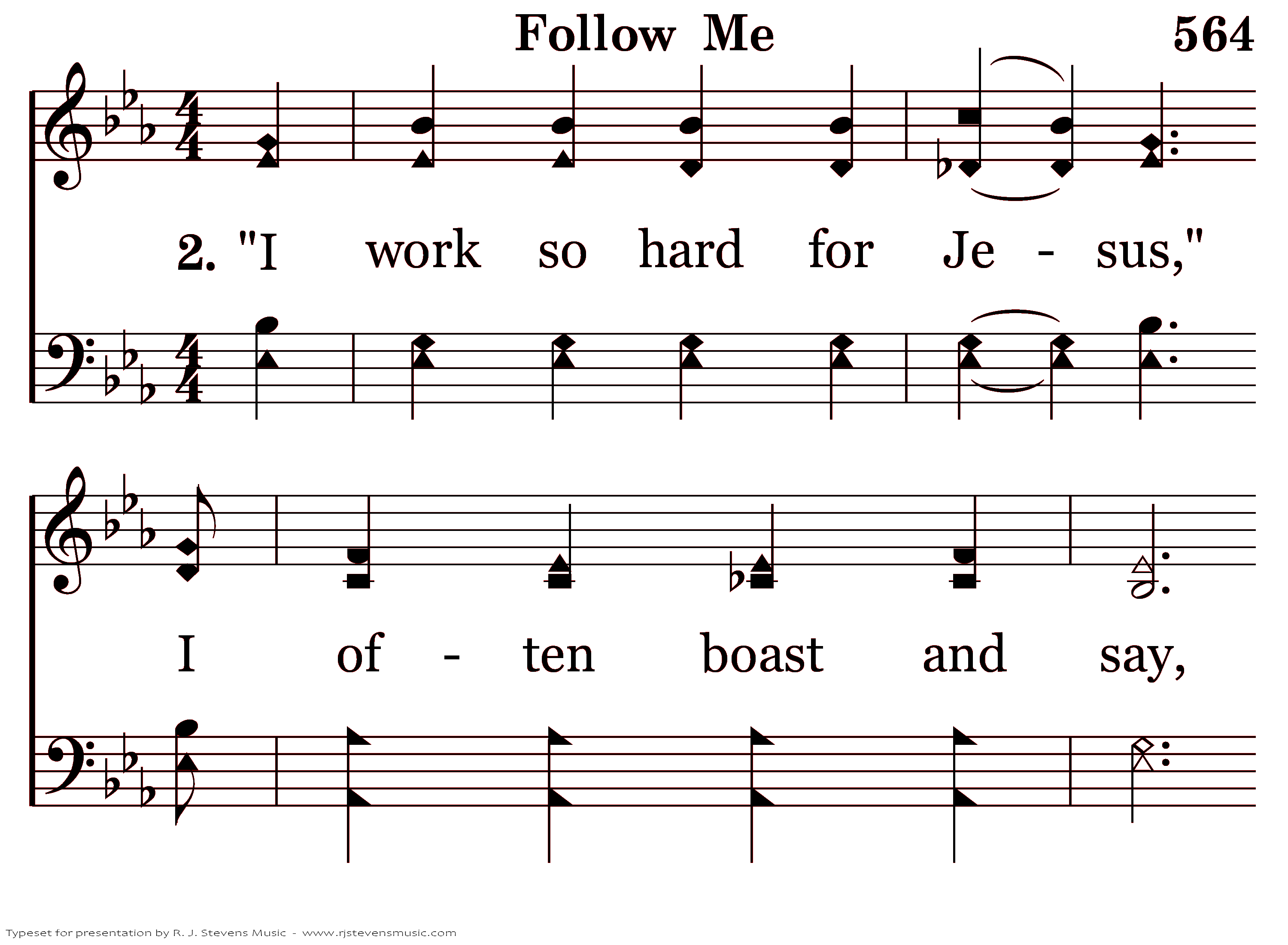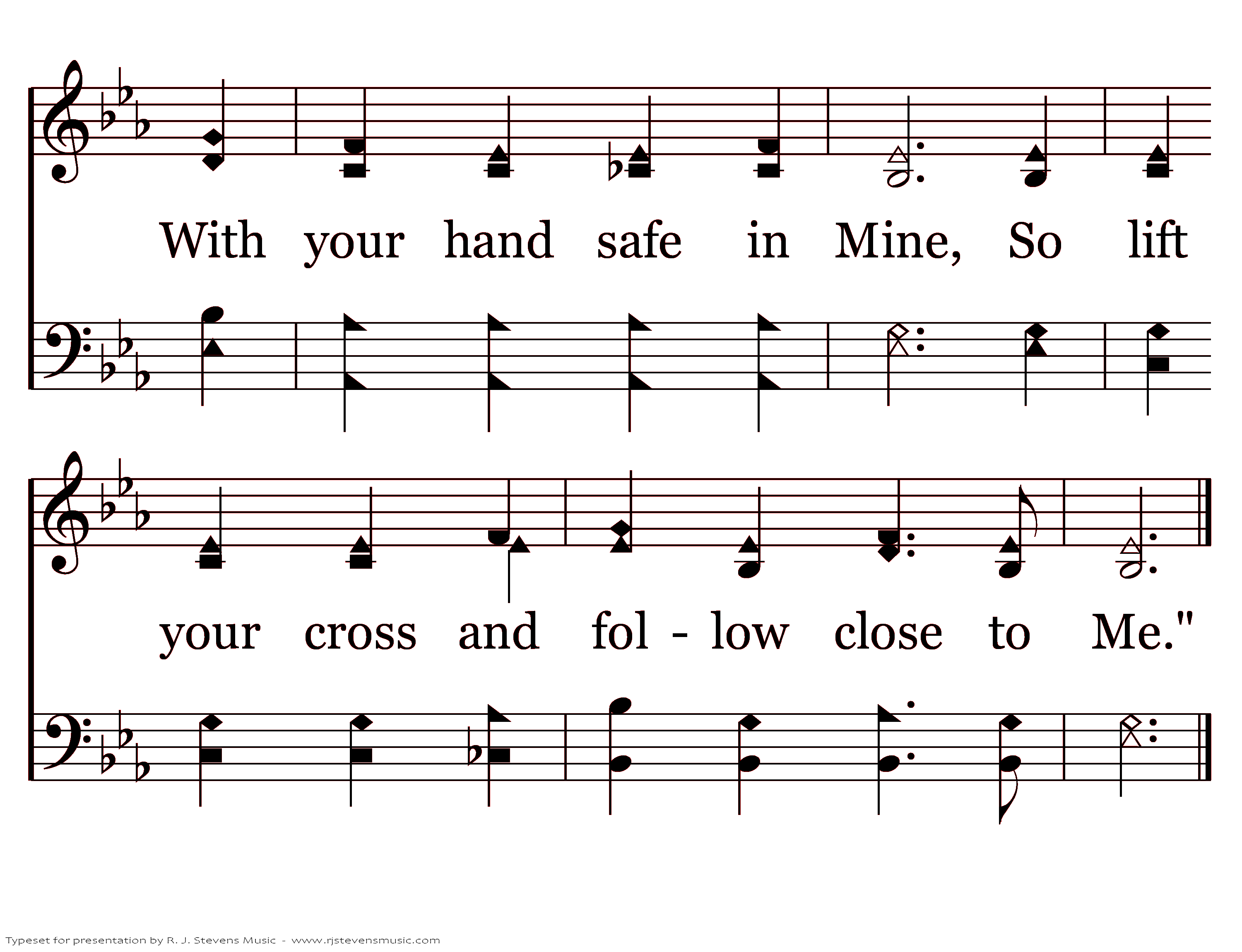 "I work so hard for Jesus" I often boast and say, "I've sacrificed a lot of things To walk the narrow way; I gave up fame and fortune; I'm worth a lot to Thee," And then I hear Him gently say to me: "I left the throne of glory And counted it but loss, My hands were nailed in anger Upon a cruel cross; But now we'll make the journey With your hand safe in Mine, So lift your cross and follow close to Me."