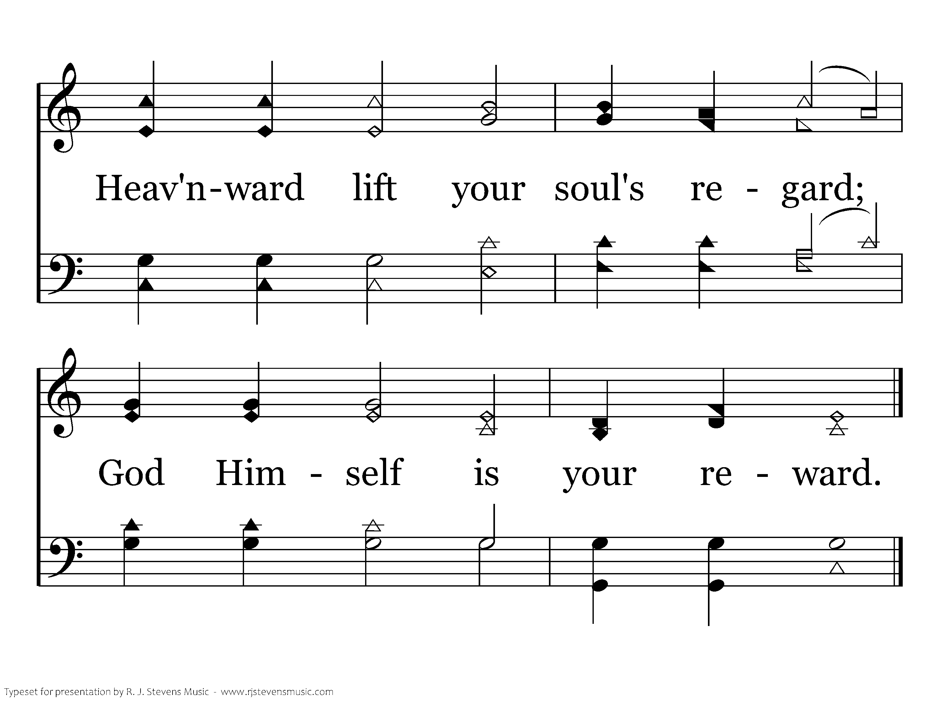 Passing soon and little worth are the things that tempt on earth; Heav'nward lift your soul's regard; God Himself is your reward.