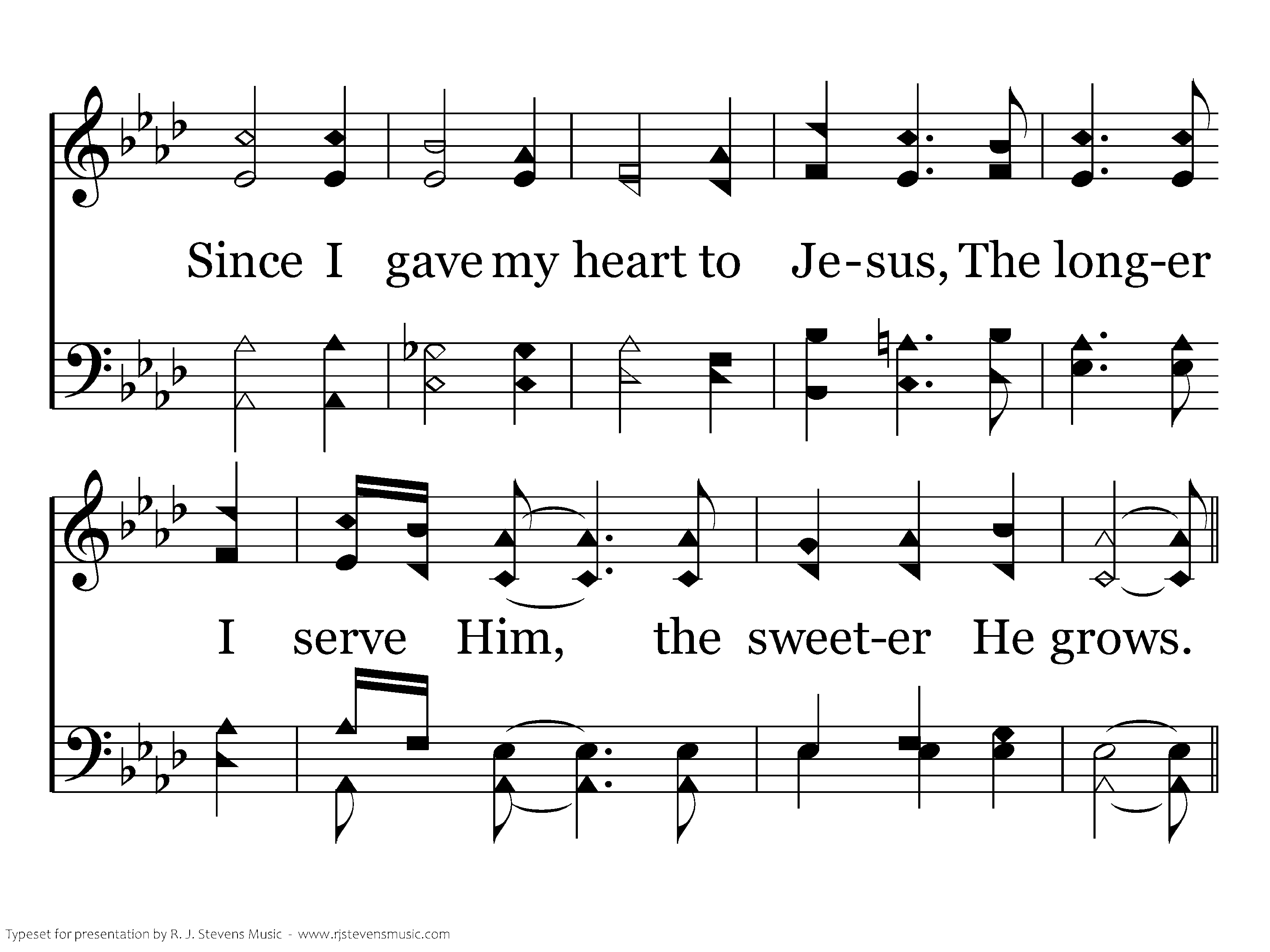 Since I started for the Kingdom, Since my life He controls, Since I gave my heart to Jesus, The longer I serve Him, the sweeter He grows.