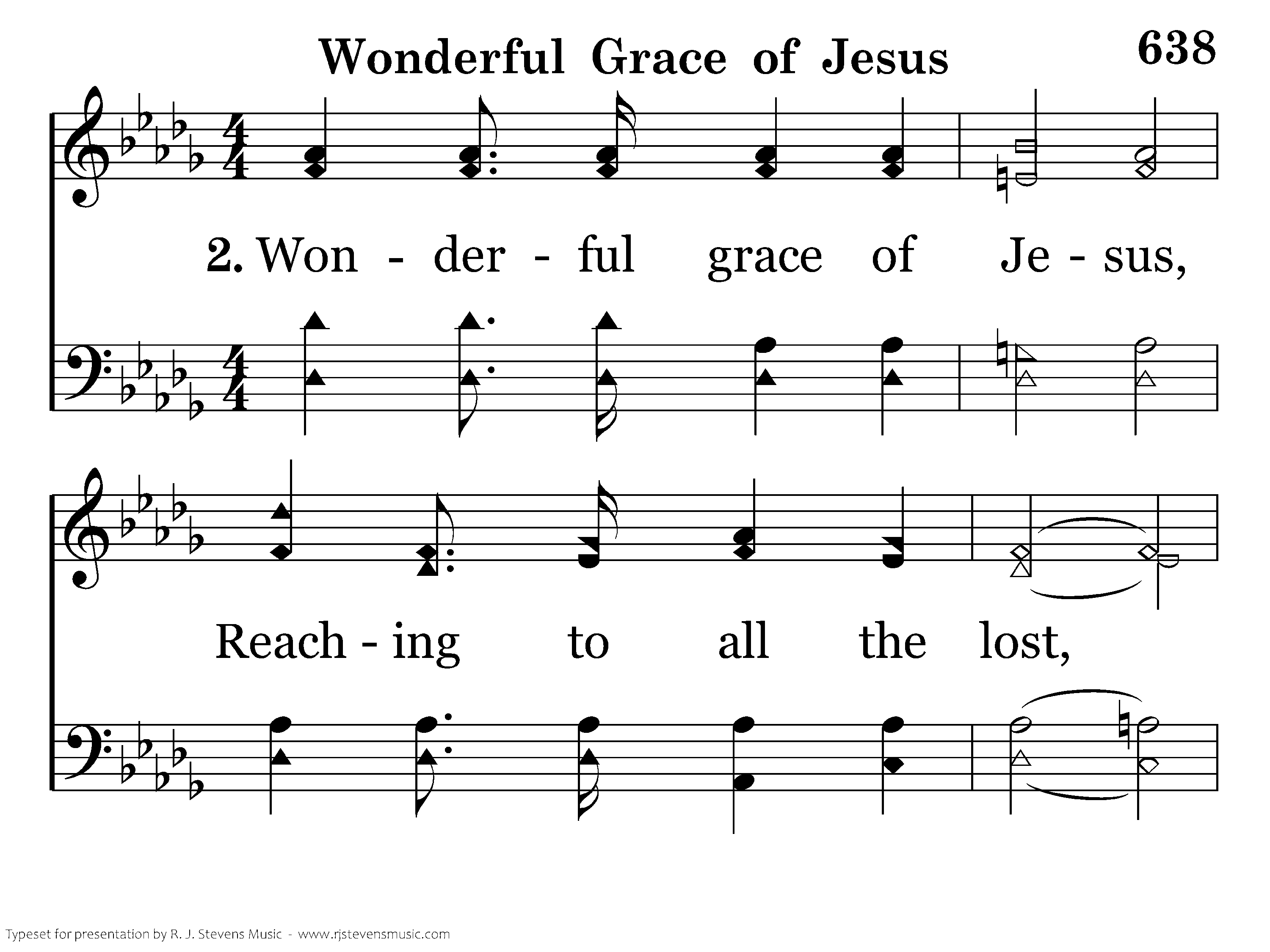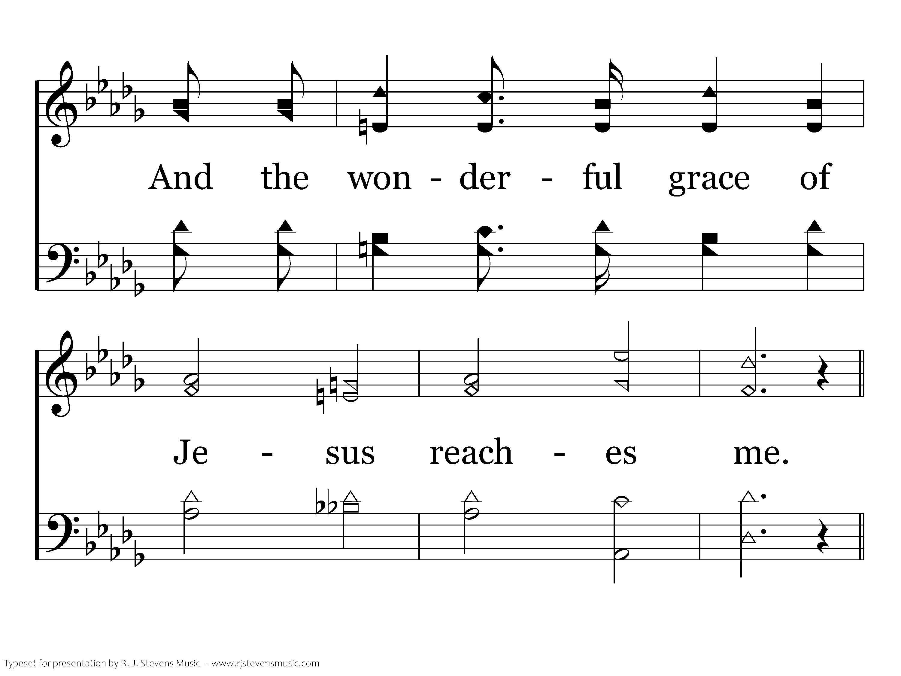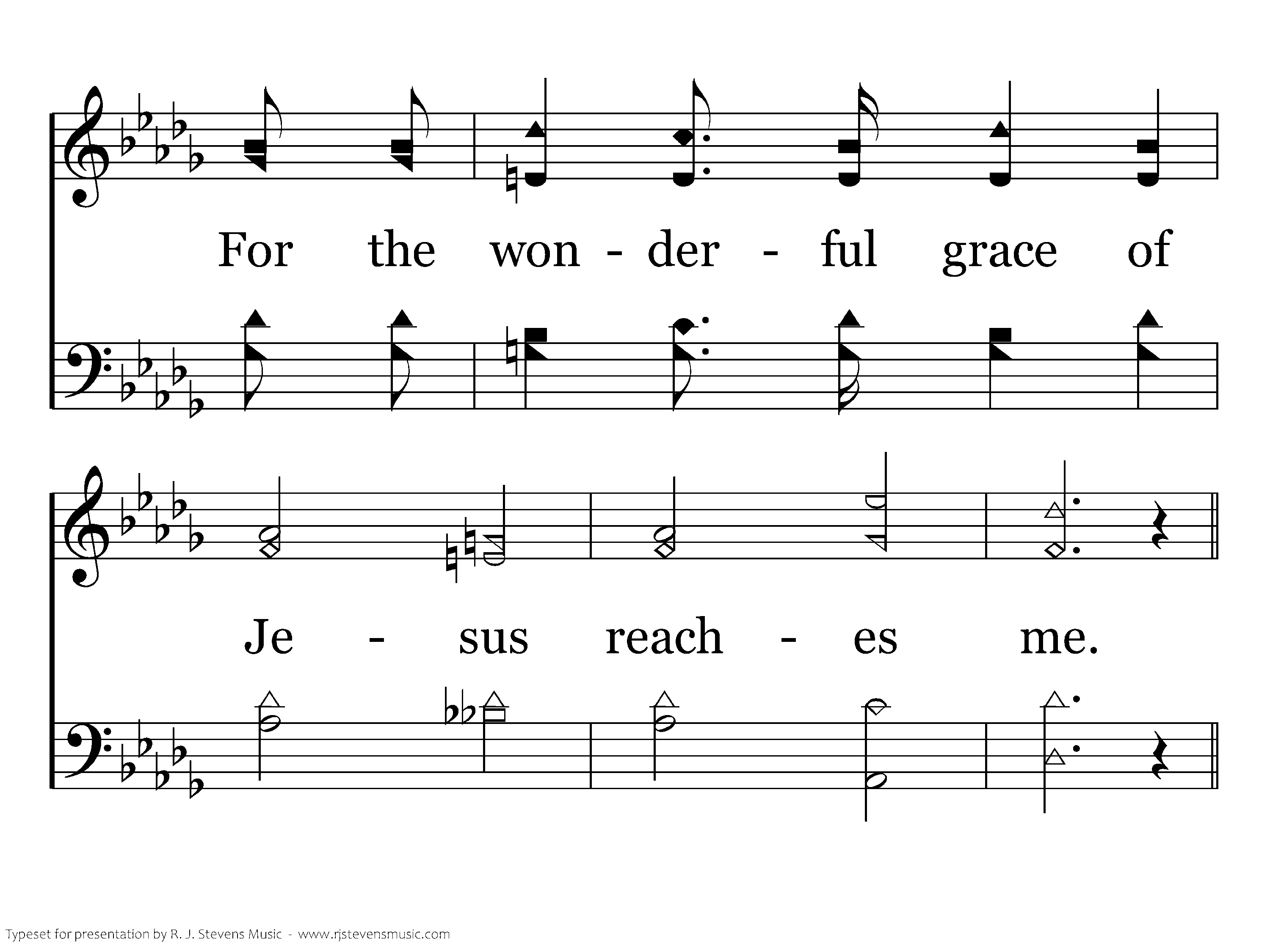 Wonderful grace of Jesus, Reaching to all the lost, By it I have been pardoned, Saved to the uttermost, Chains have been torn asunder, Giving me liberty; For the For the wonderful grace of Jesus reaches me.