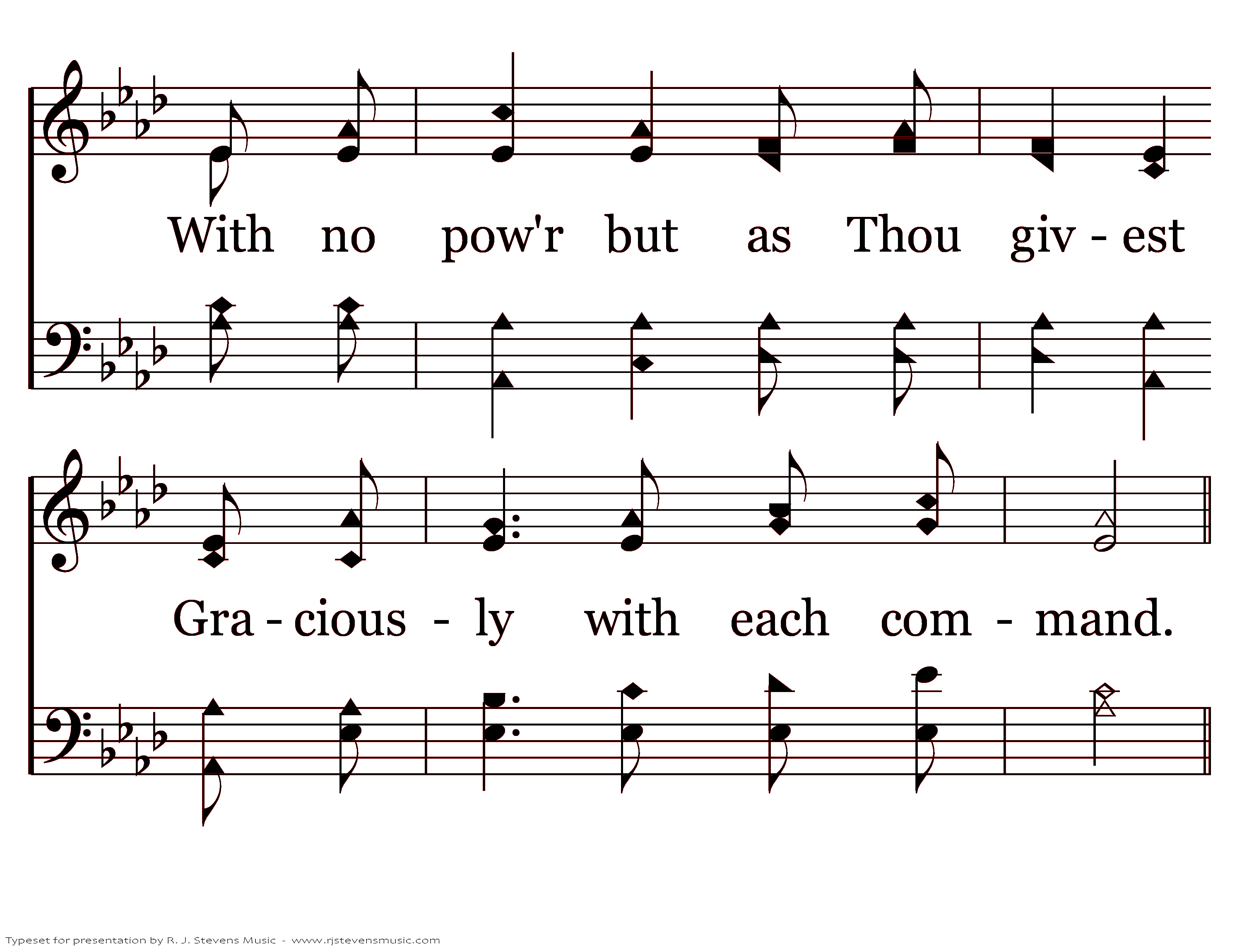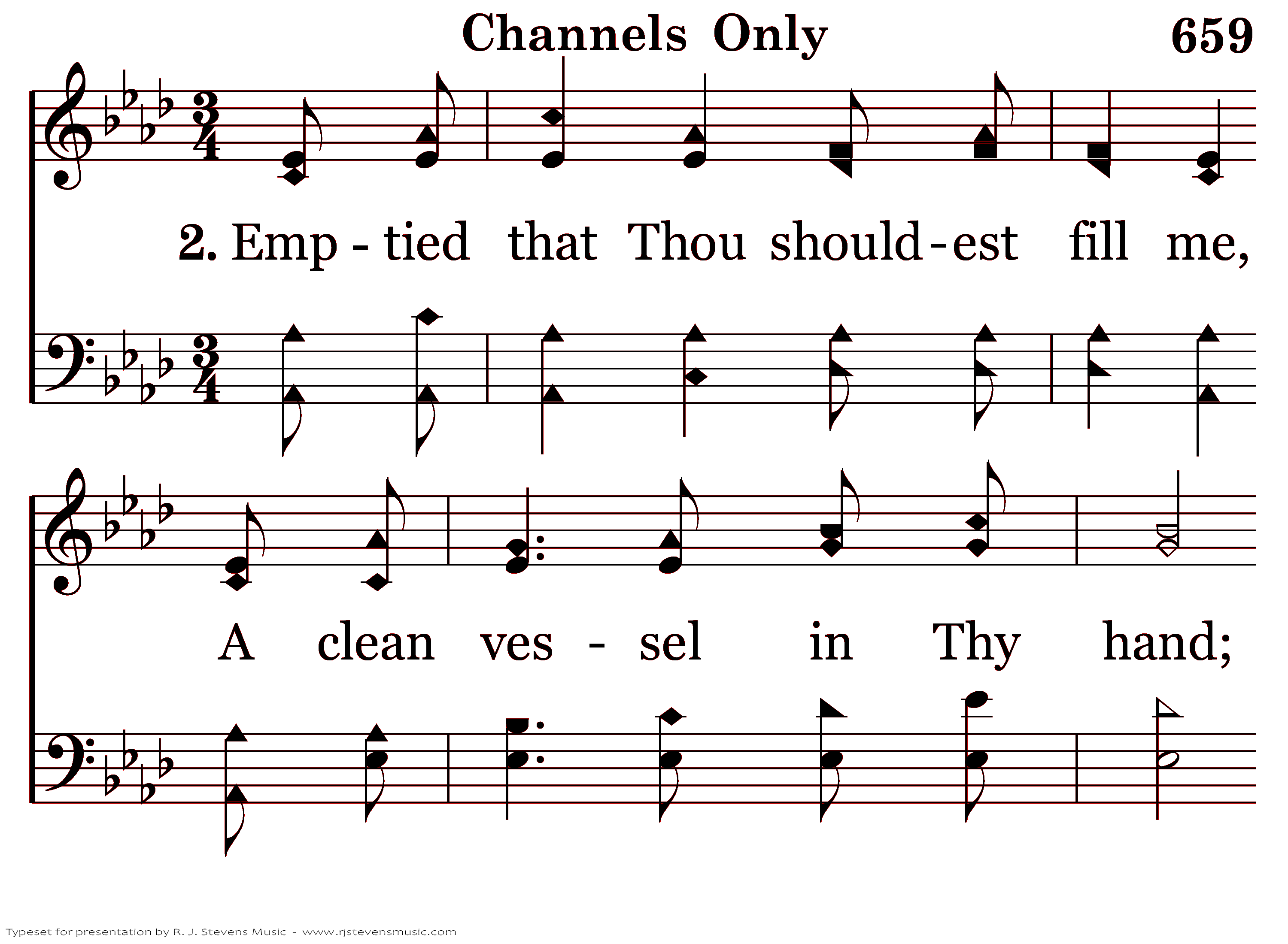 Emptied that Thou shouldest fill me, A clean vessel in Thy hand; With no pow'r but as Thou givest Graciously with each command.