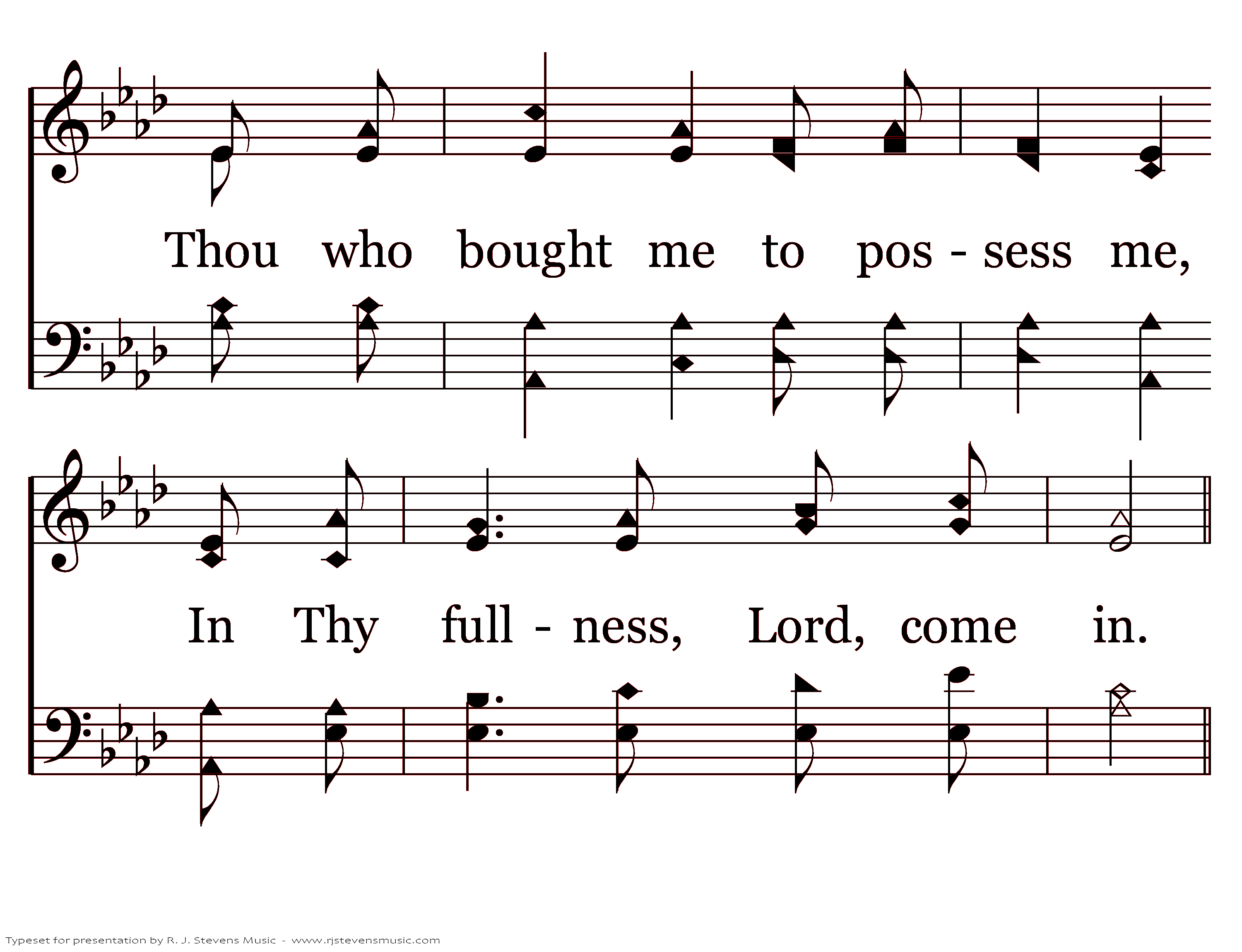Witnessing Thy pow'r to save me, Setting free from self and sin; Thou who bought me to possess me, In Thy fullness, Lord, come in.