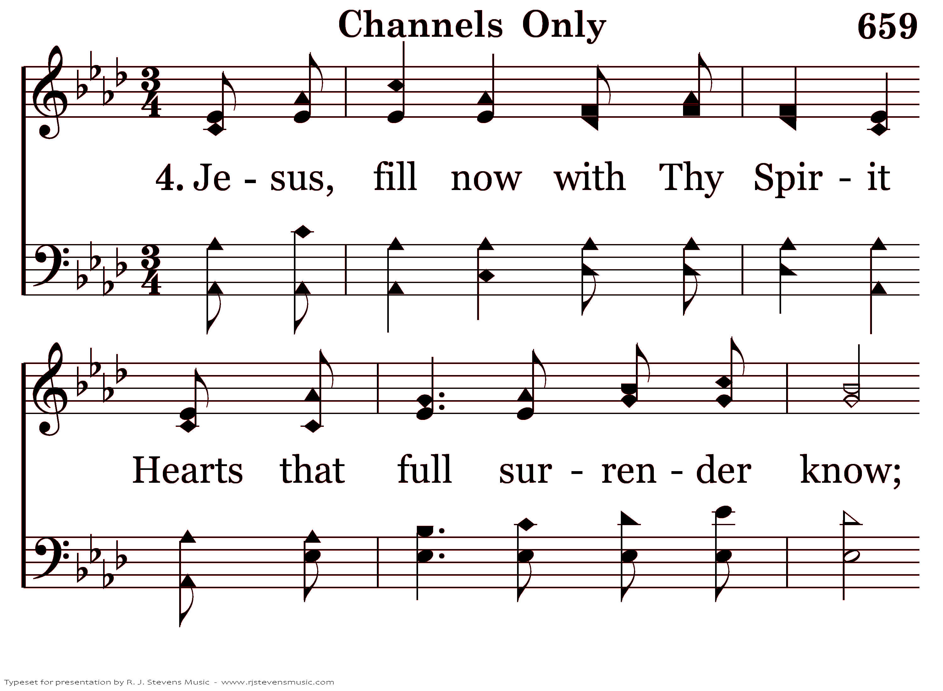 Jesus, fill now with Thy Spirit Hearts that full surrender know; That the streams of living water From our inner man may flow.