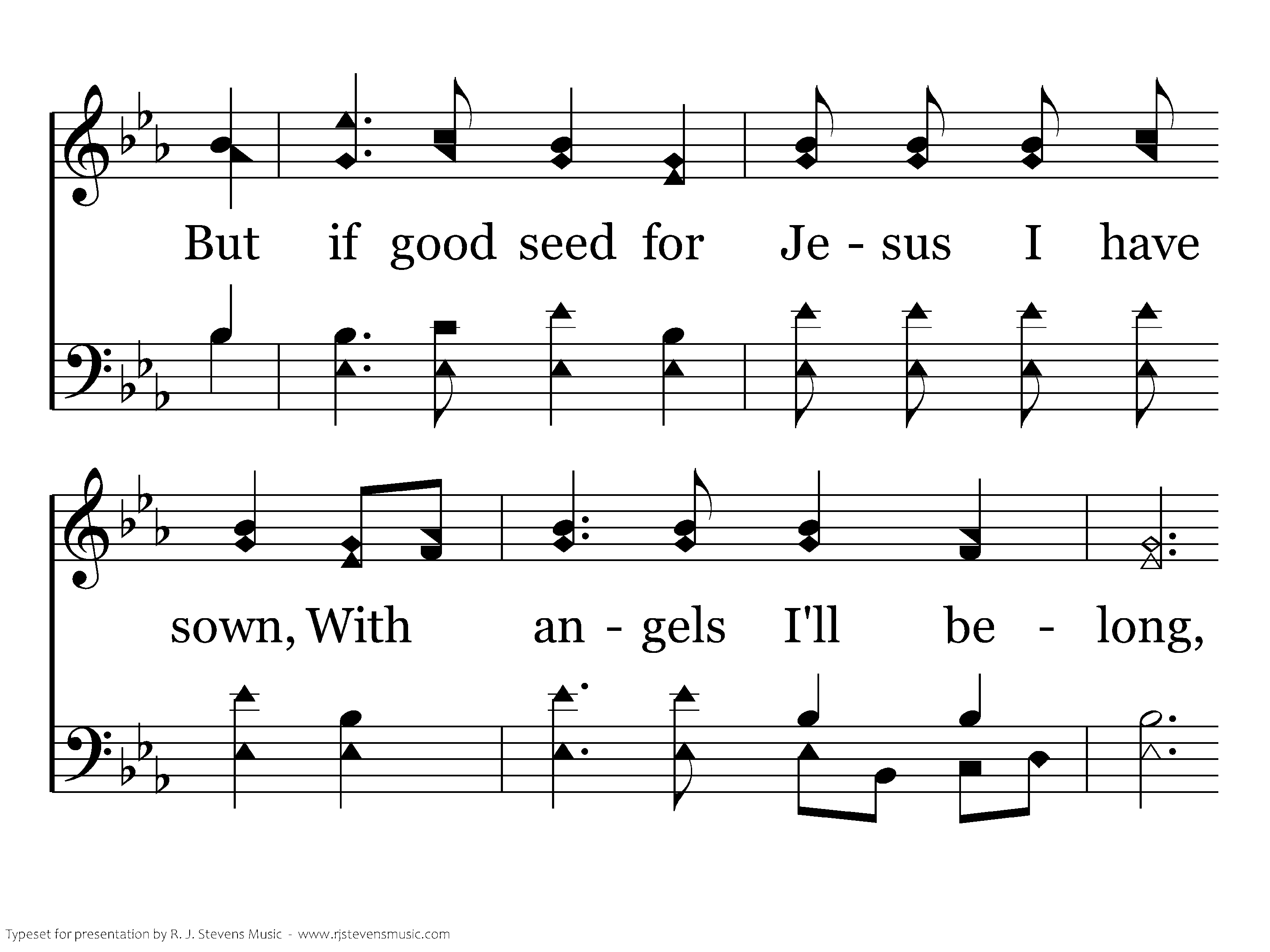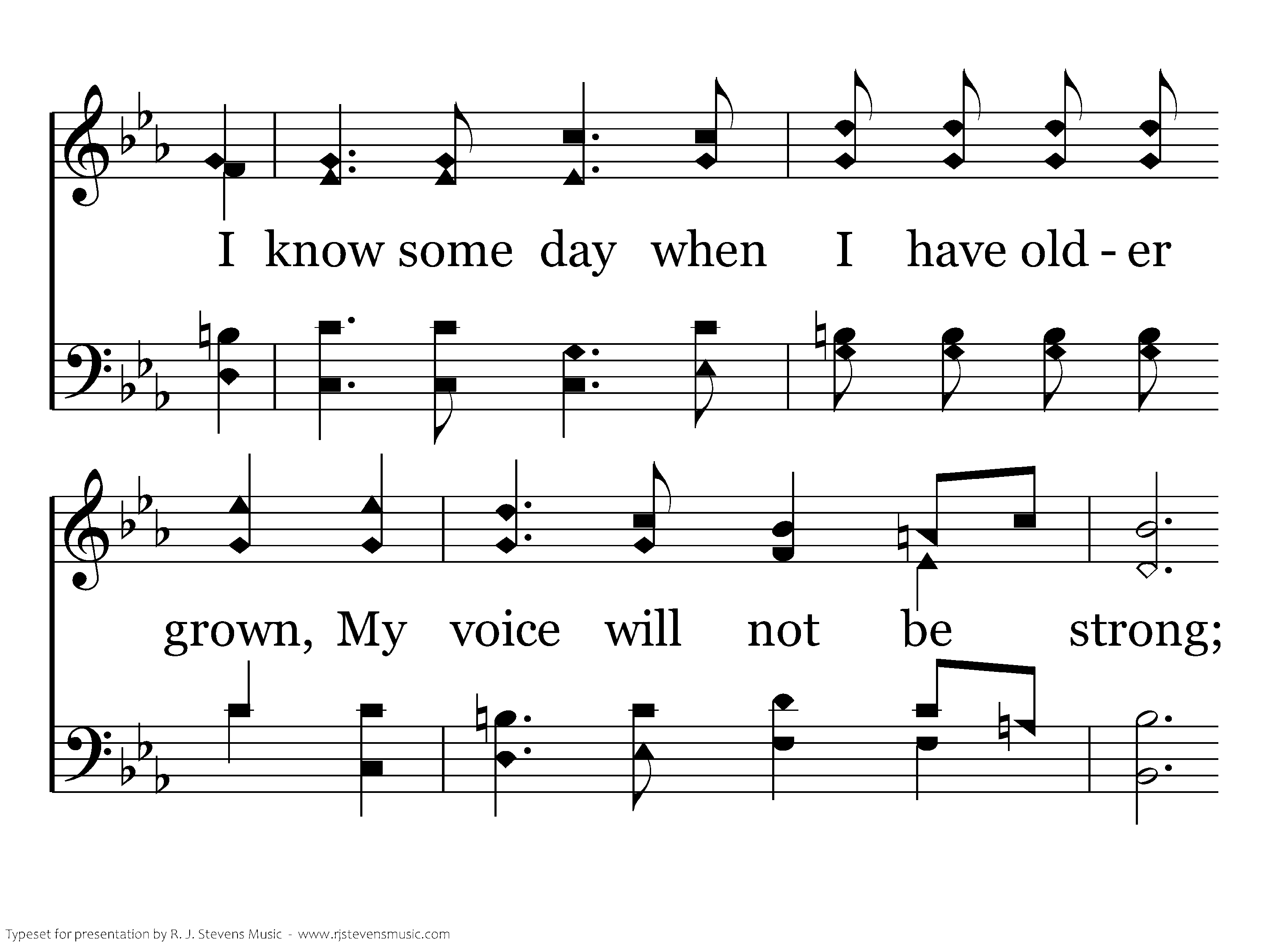 The greatest joy that I have ever known, Is praising Him in song, I know some day when I have older grown, My voice will not be strong; But if good seed for Jesus I have sown, With angels I'll belong, They sing in heav'n a new song, Of Moses and the Lamb,