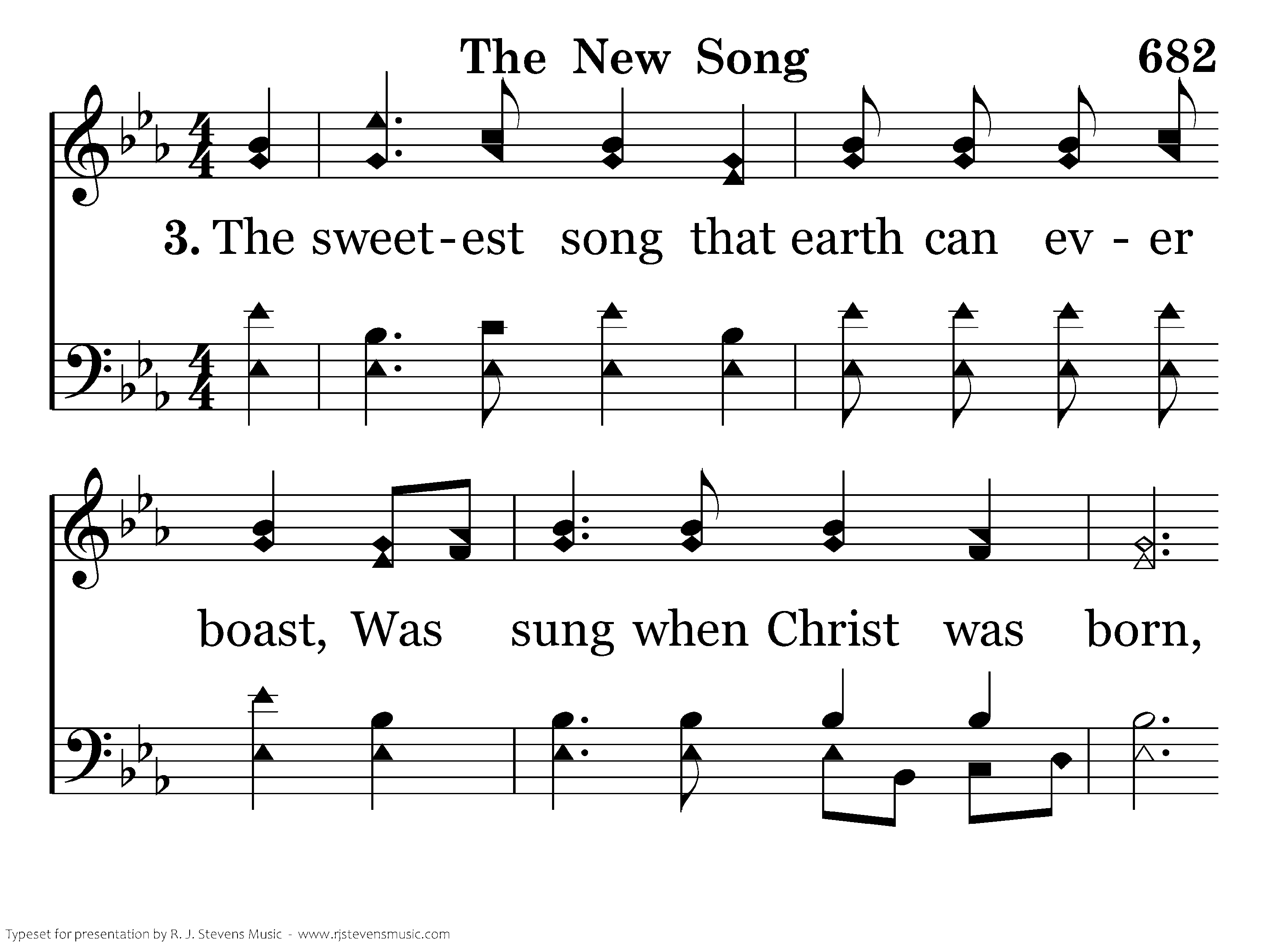 The sweetest song that earth can ever boast, Was sung when Christ was born, Yet He who walked the Galilean coast, Sometimes was sad forlorn; He left the earth to send the Holy Ghost, To guide us till that morn, They sing in heav'n a new song, Of Moses and the Lamb,