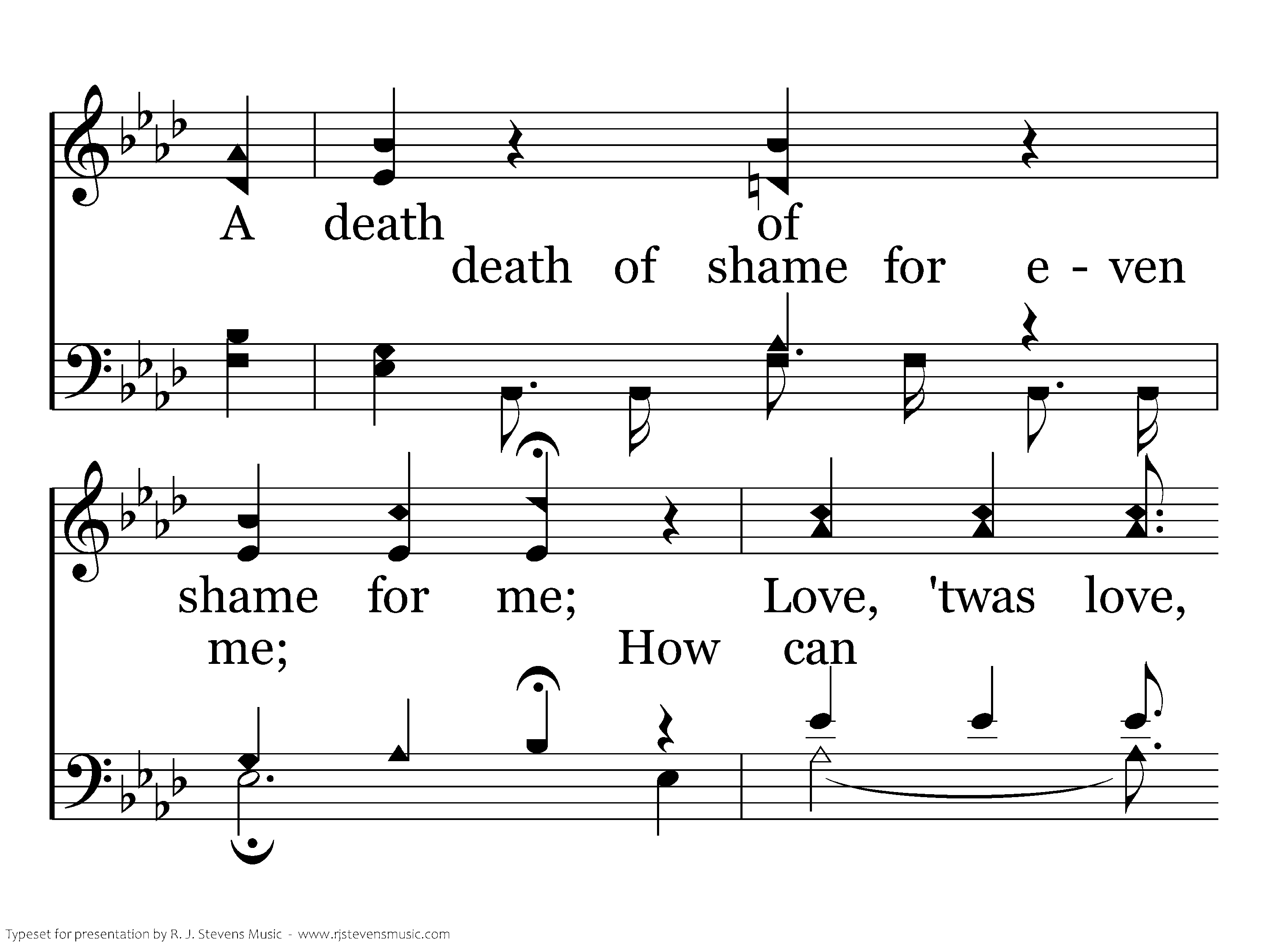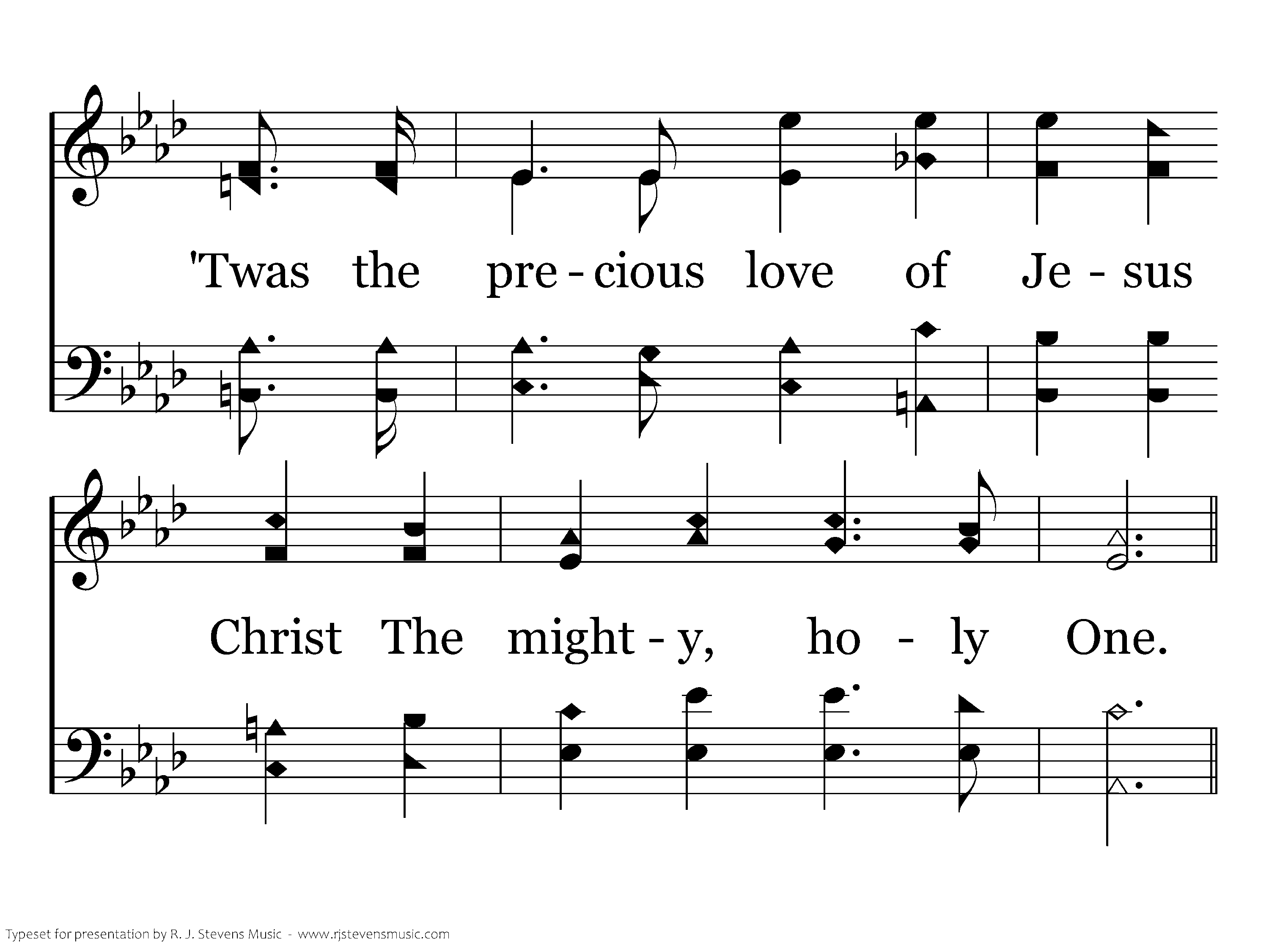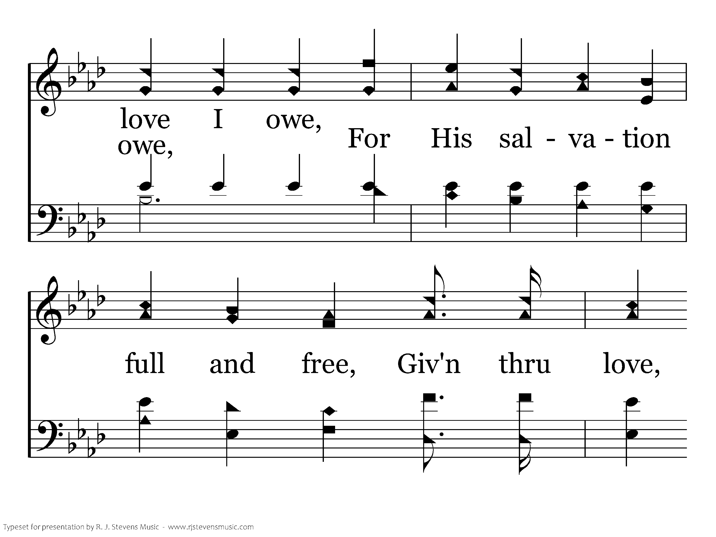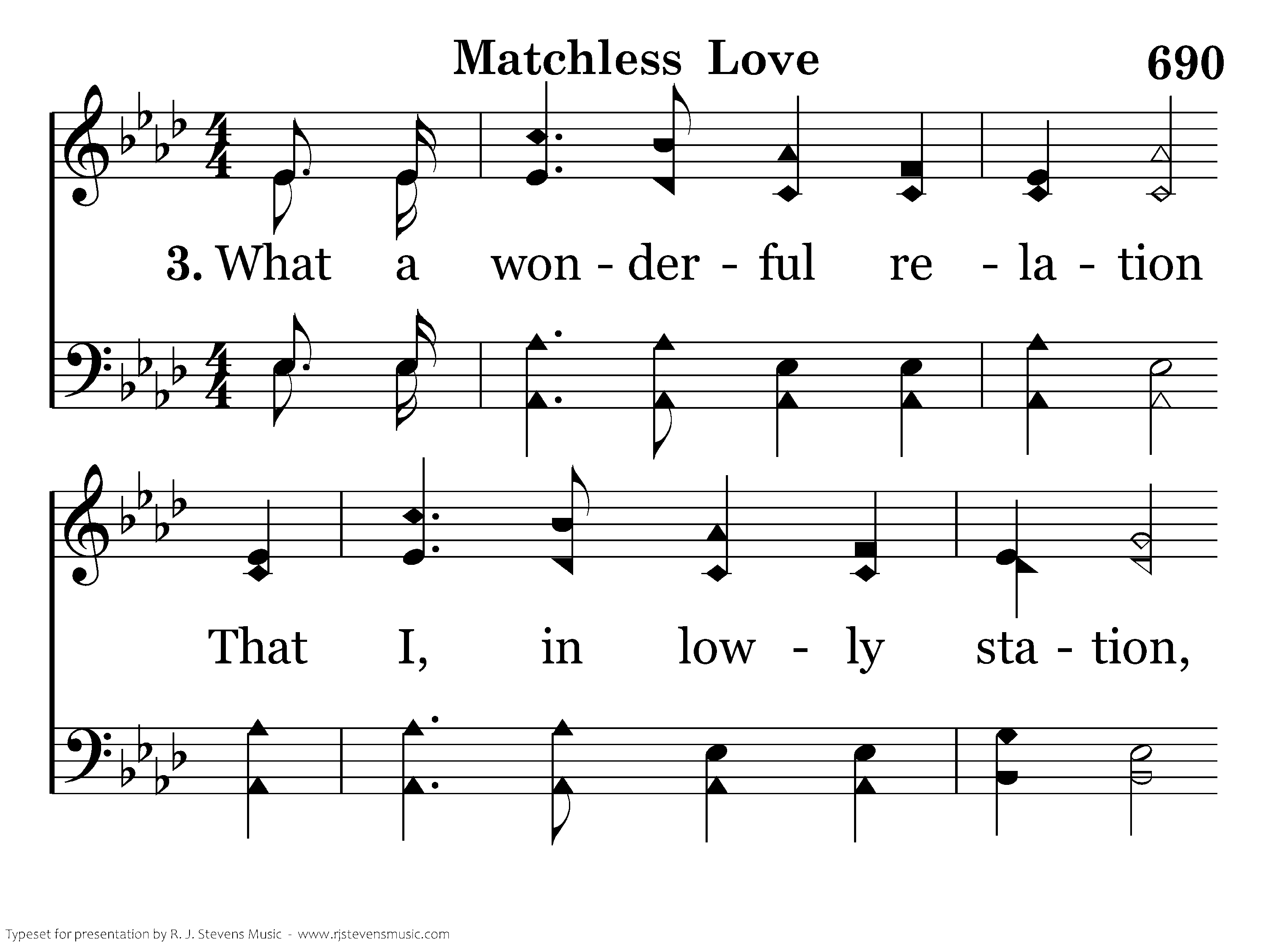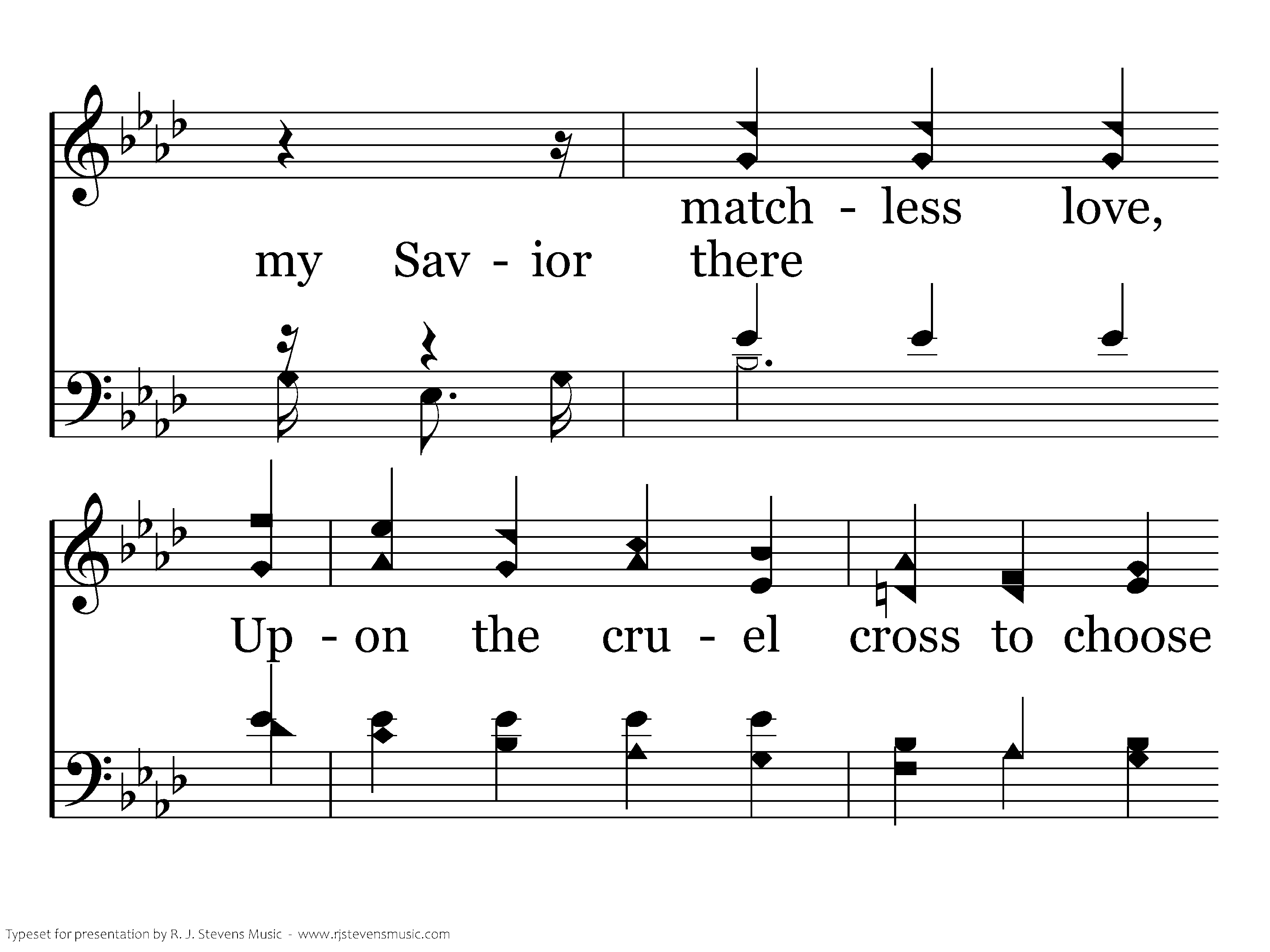 'Twas love, 'Twas matchless love, That caused my Savior there, Upon the cruel cross to choose A death of shame for even me; How can I e'er repay The debt of love I owe, For His salvation full and free, Giv'n thru love, wonderful love, matchless love?