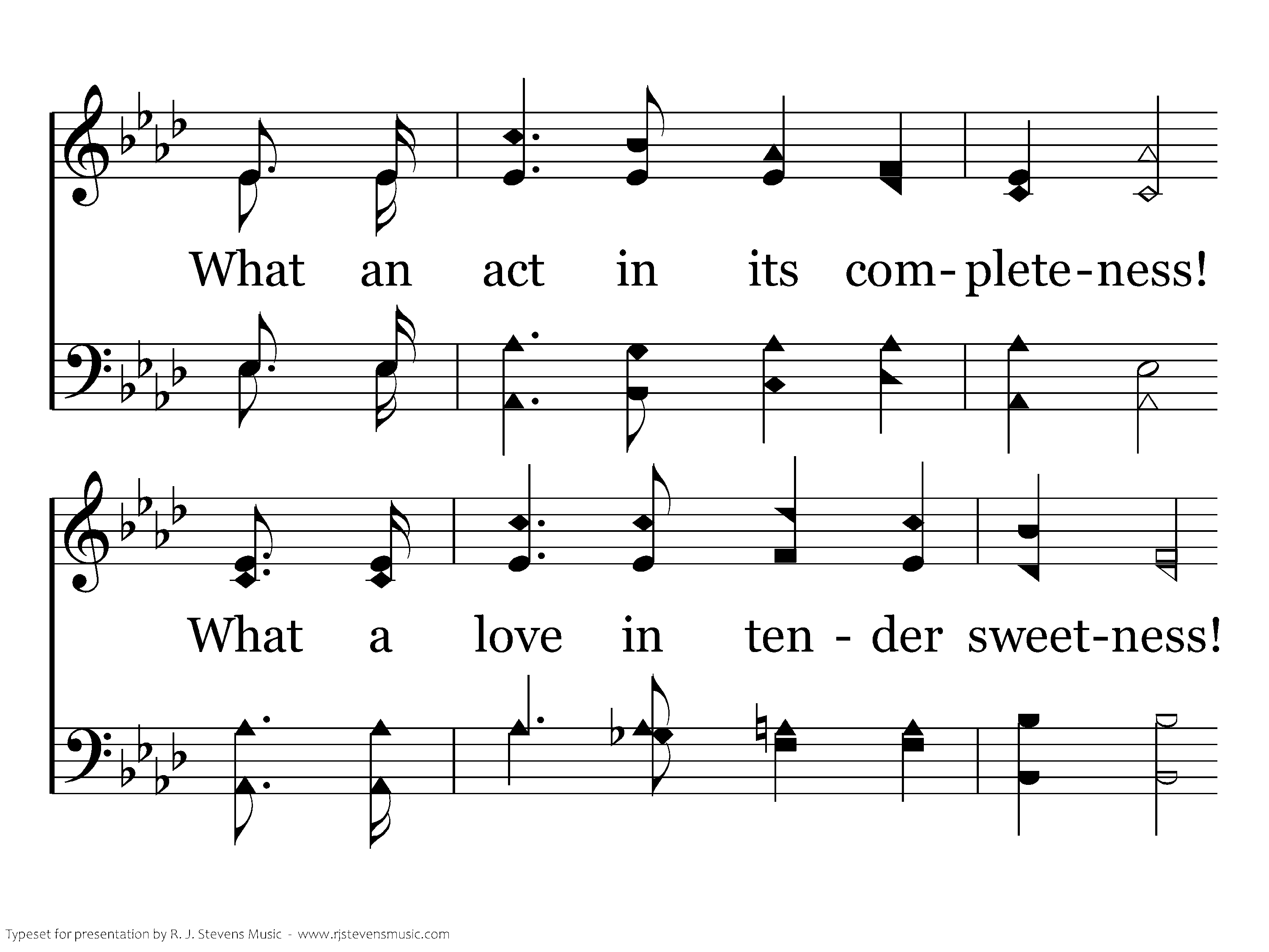 What a tender lovingkindness, That sought me in my blindness, And a marvelous redemption wro't That mortals might be free! What an act in its completeness! What a love in tender sweetness! What a wonderful salvation now Abounds for you and me.