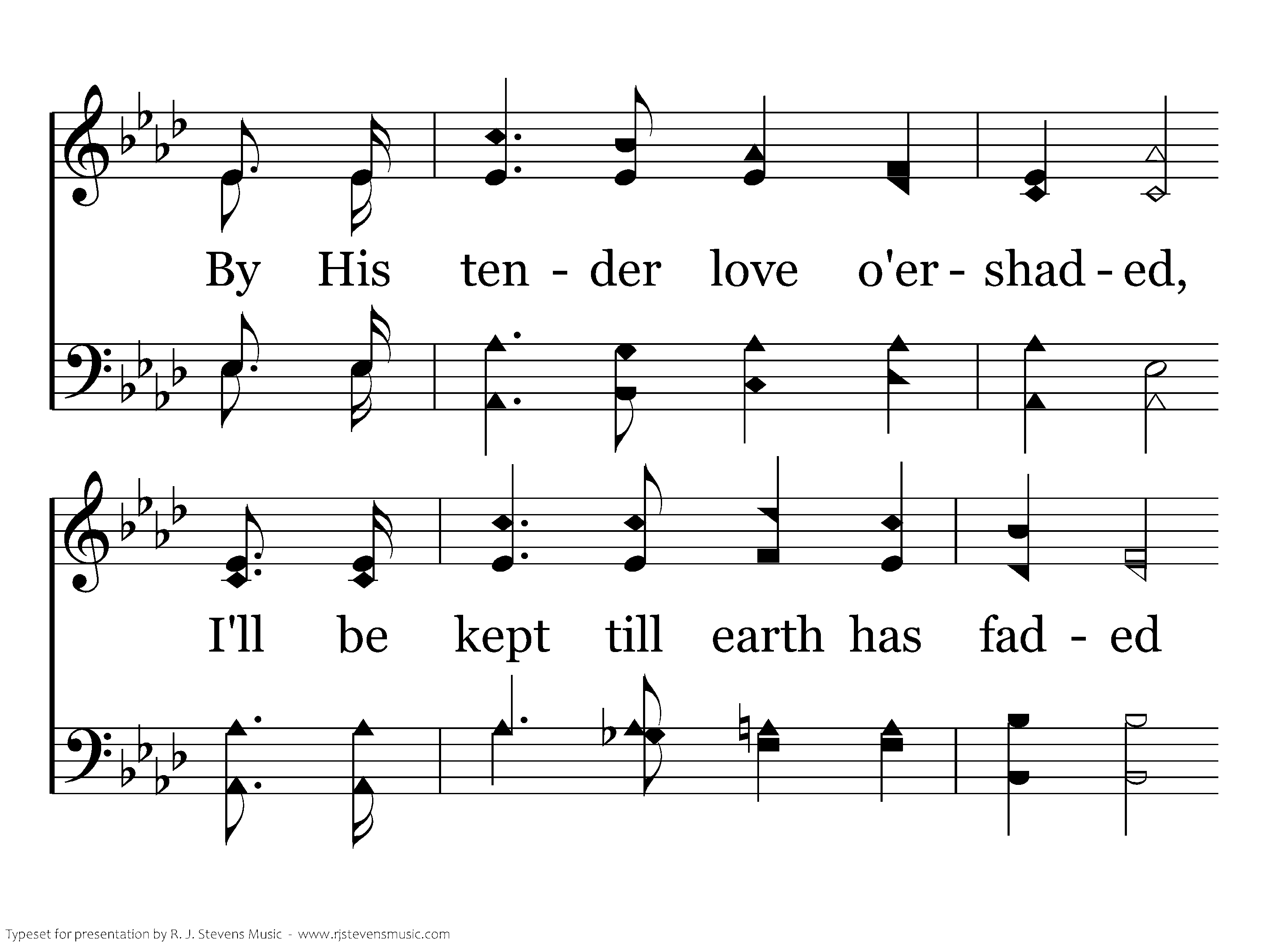 What a wonderful relation That I, in lowly station, Am called a "son unto God," what more Could human heart desire? By His tender love o'ershaded, I'll be kept till earth has faded From my sight, and I shall enter in To join the heav'nly choir.