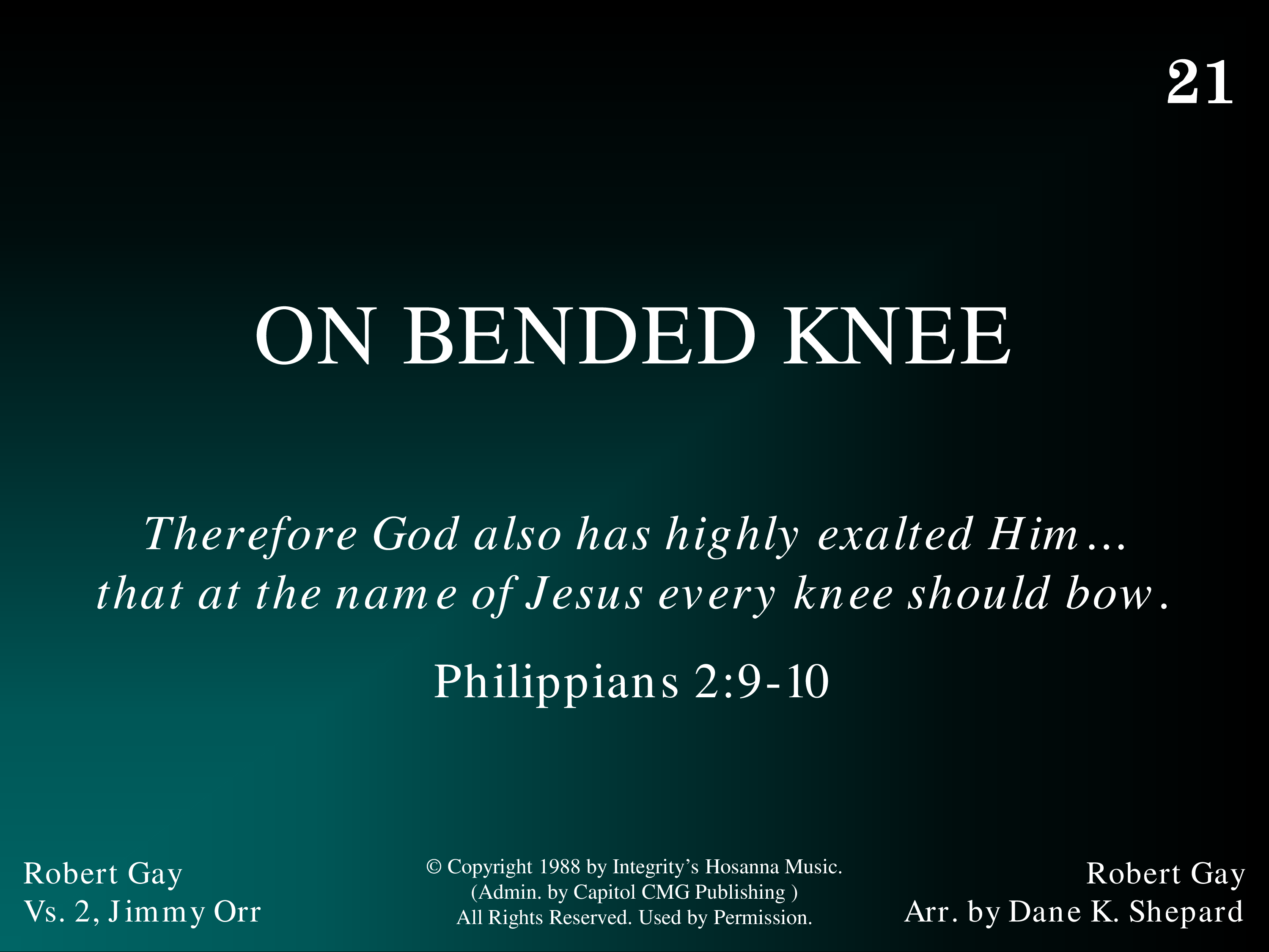 | Title | On Bended Knee I Come |