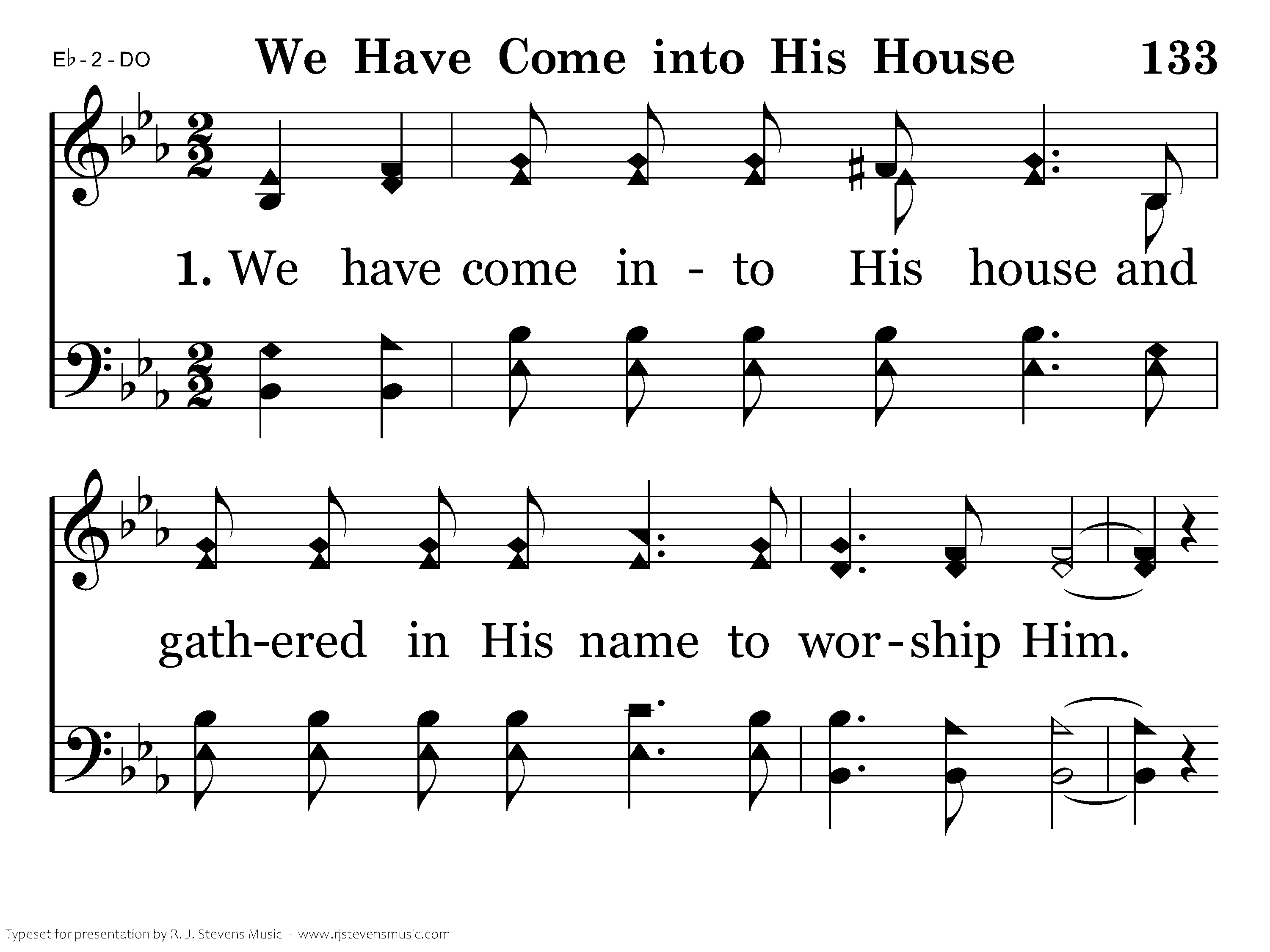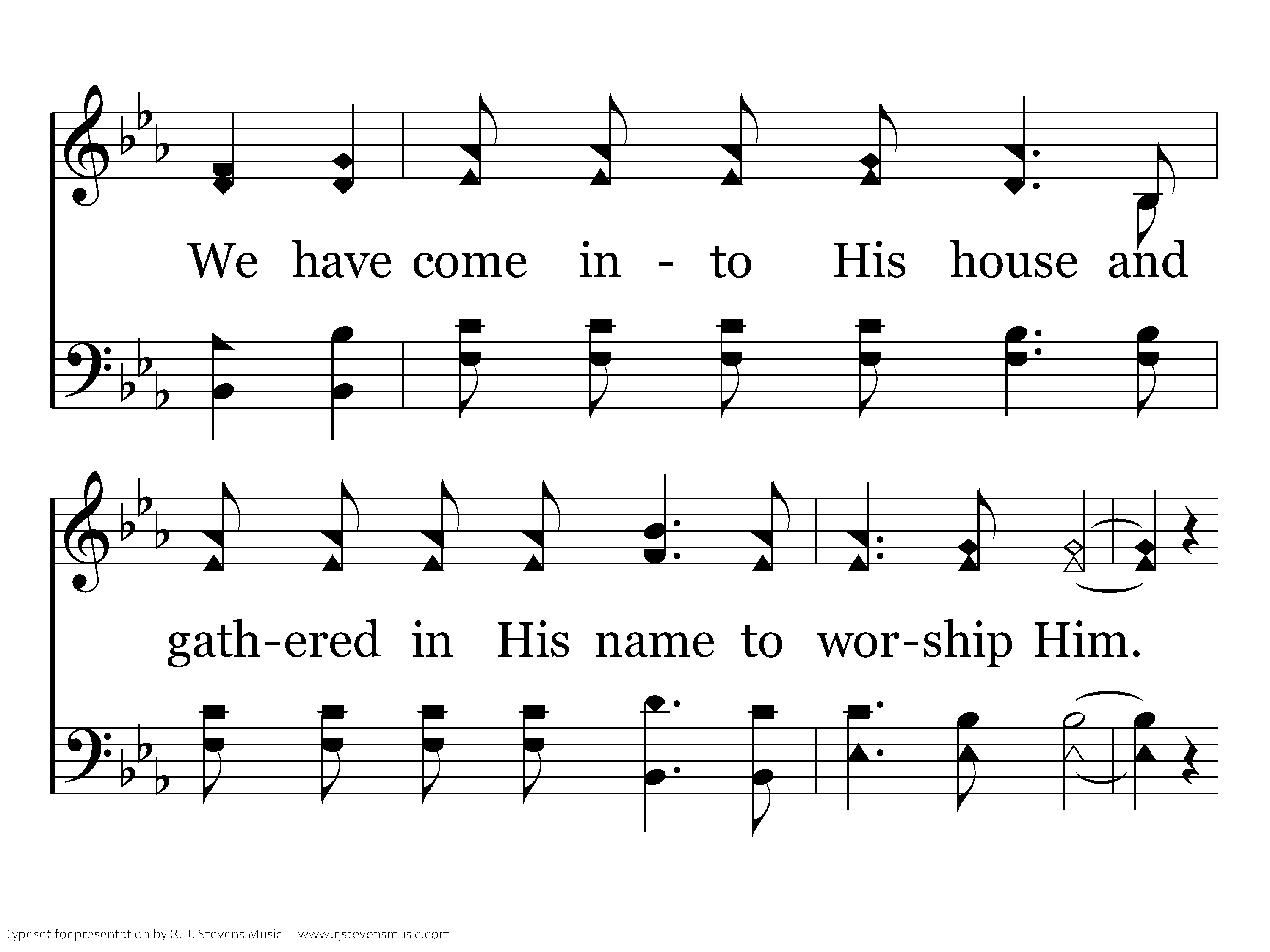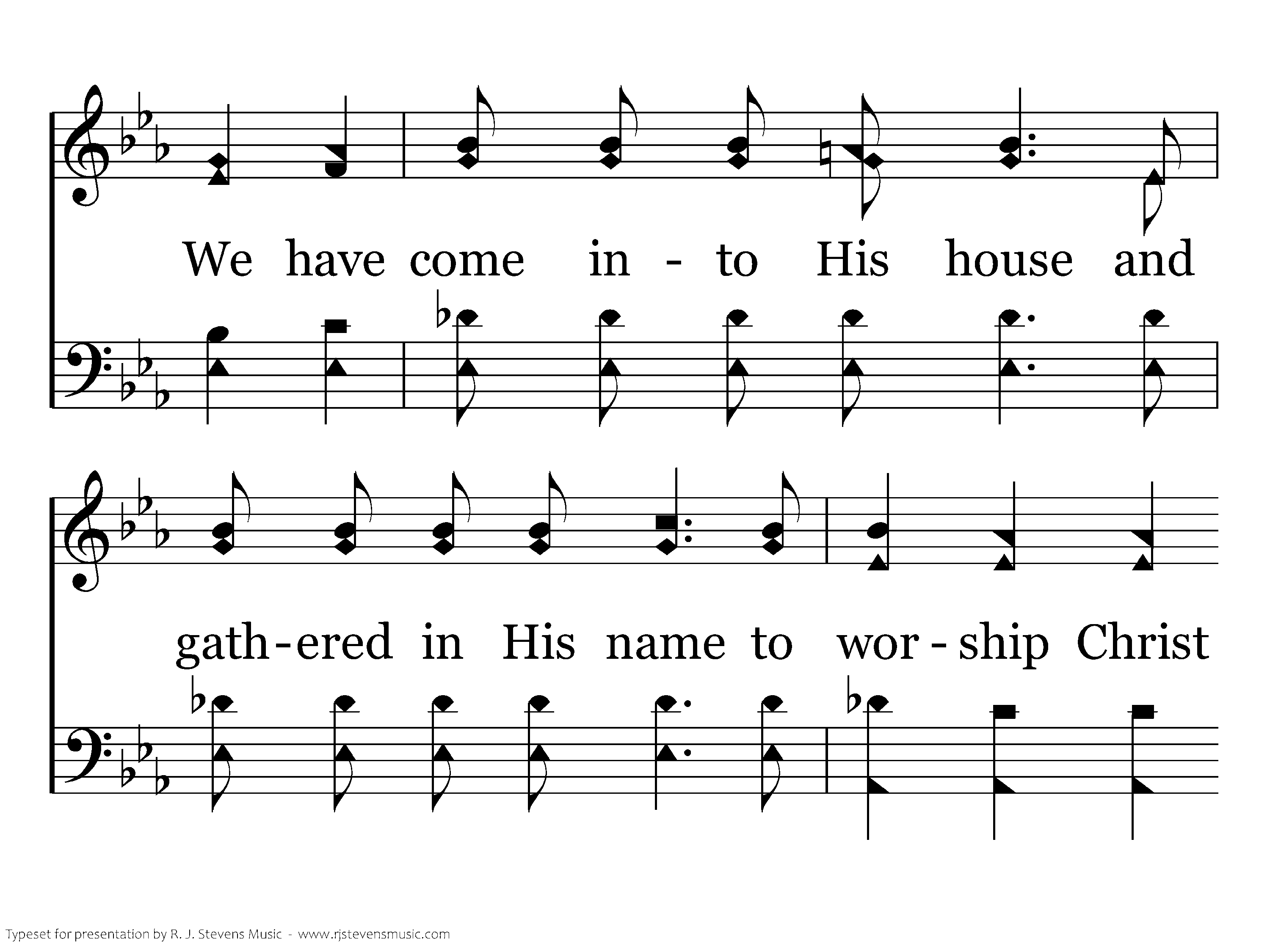 We have come into His house and gathered in His name to worship Him. We have come into His house and gathered in His name to worship Him. We have come into His house and gathered in His name to worship Christ the Lord. Worship Him, Christ the Lord.