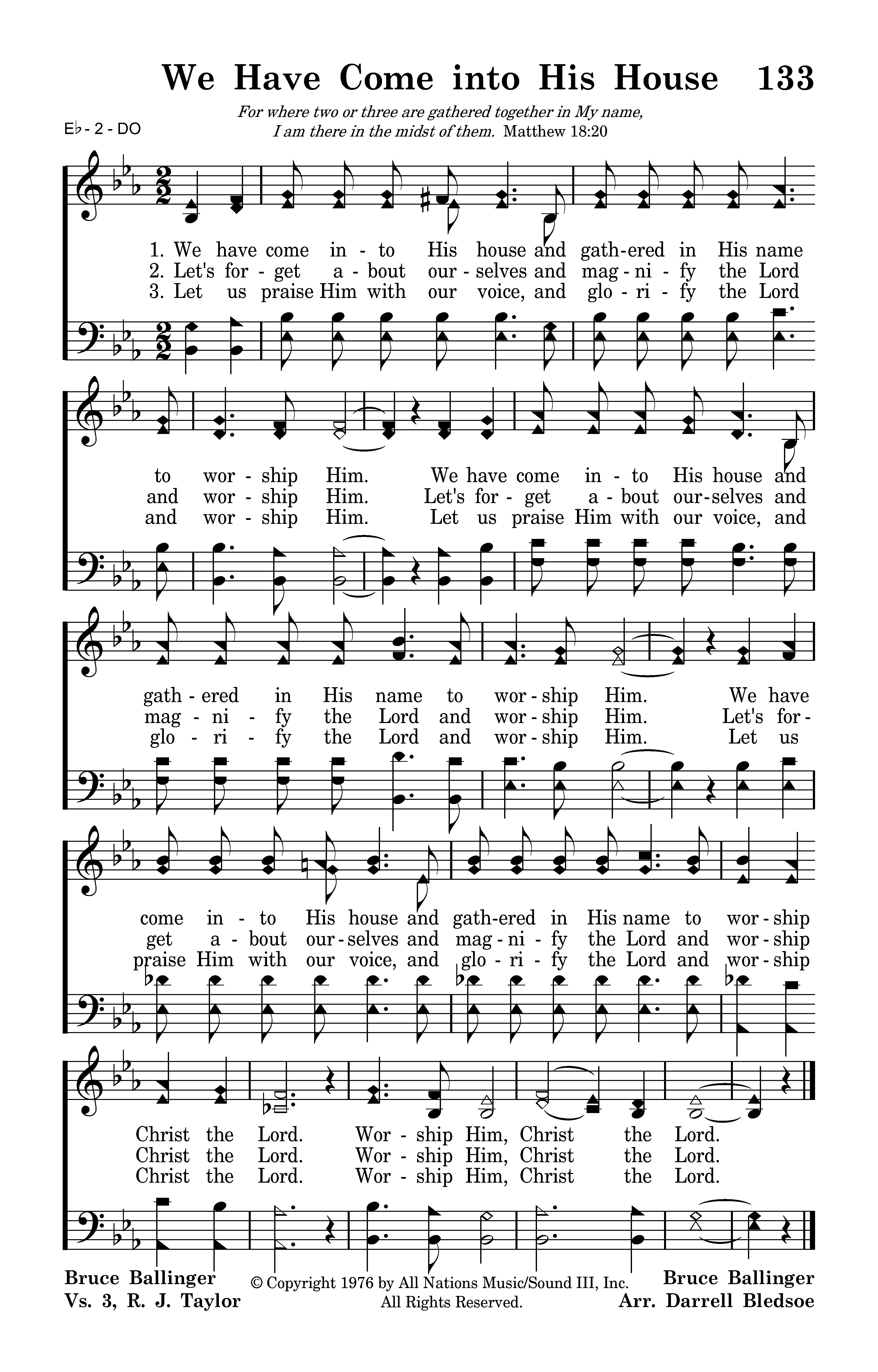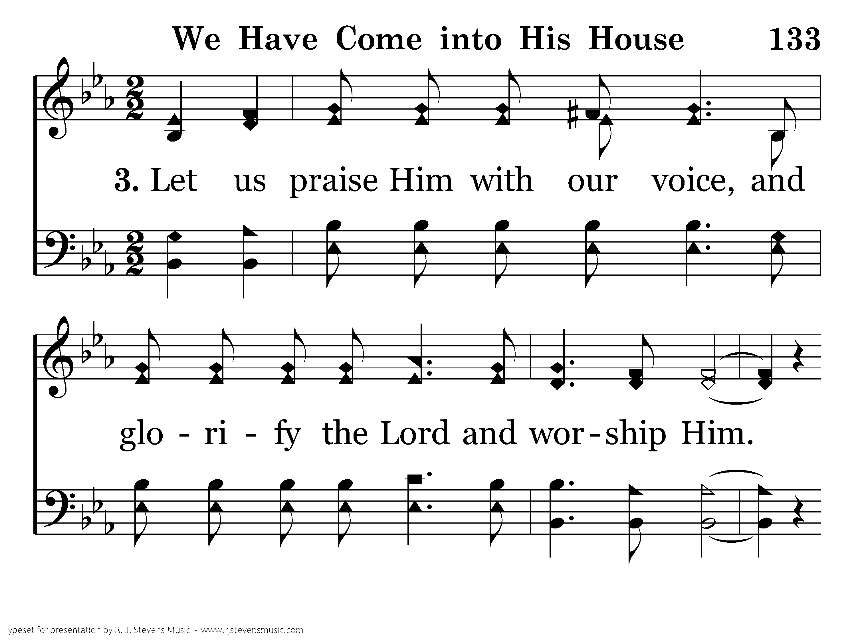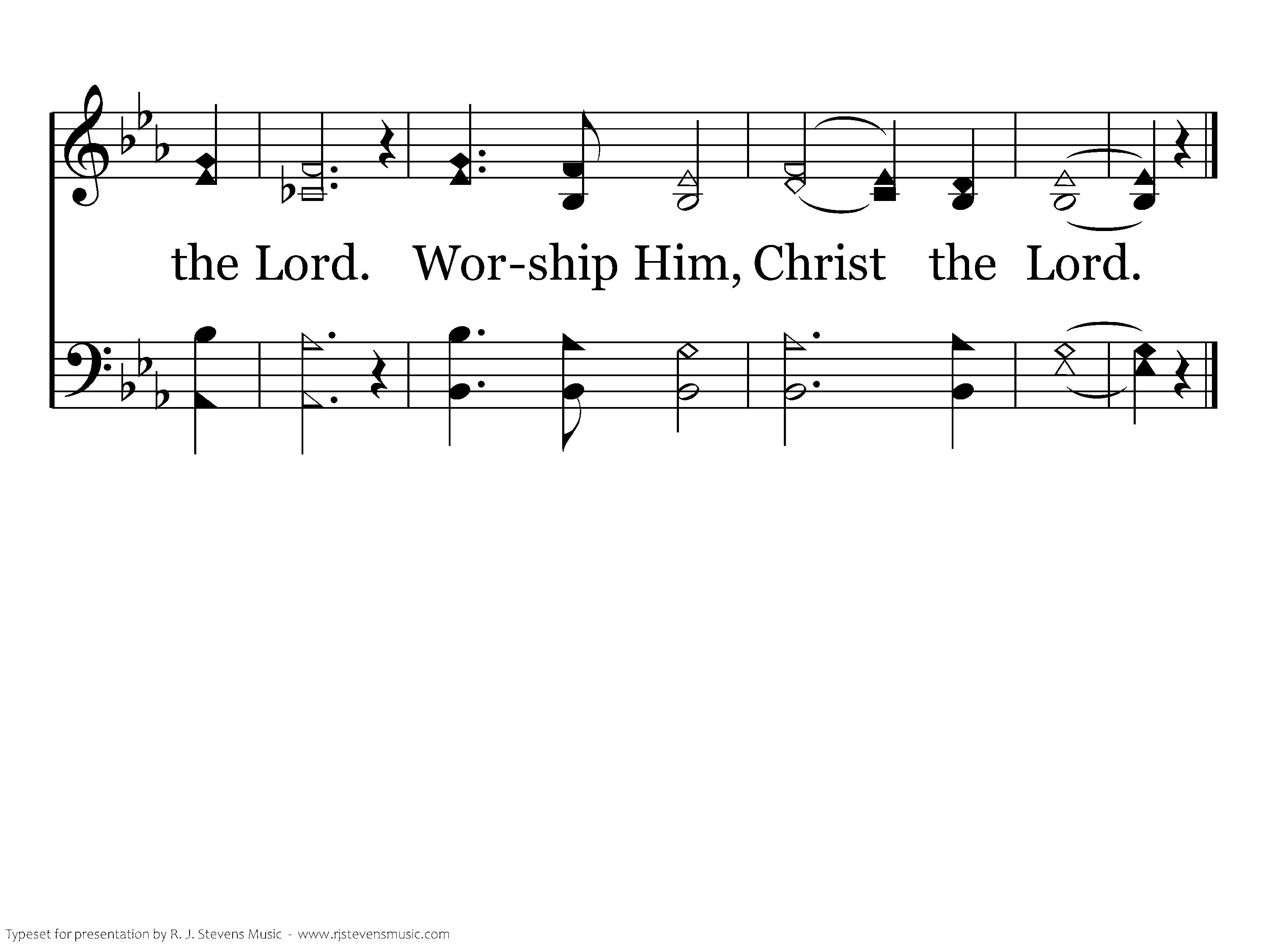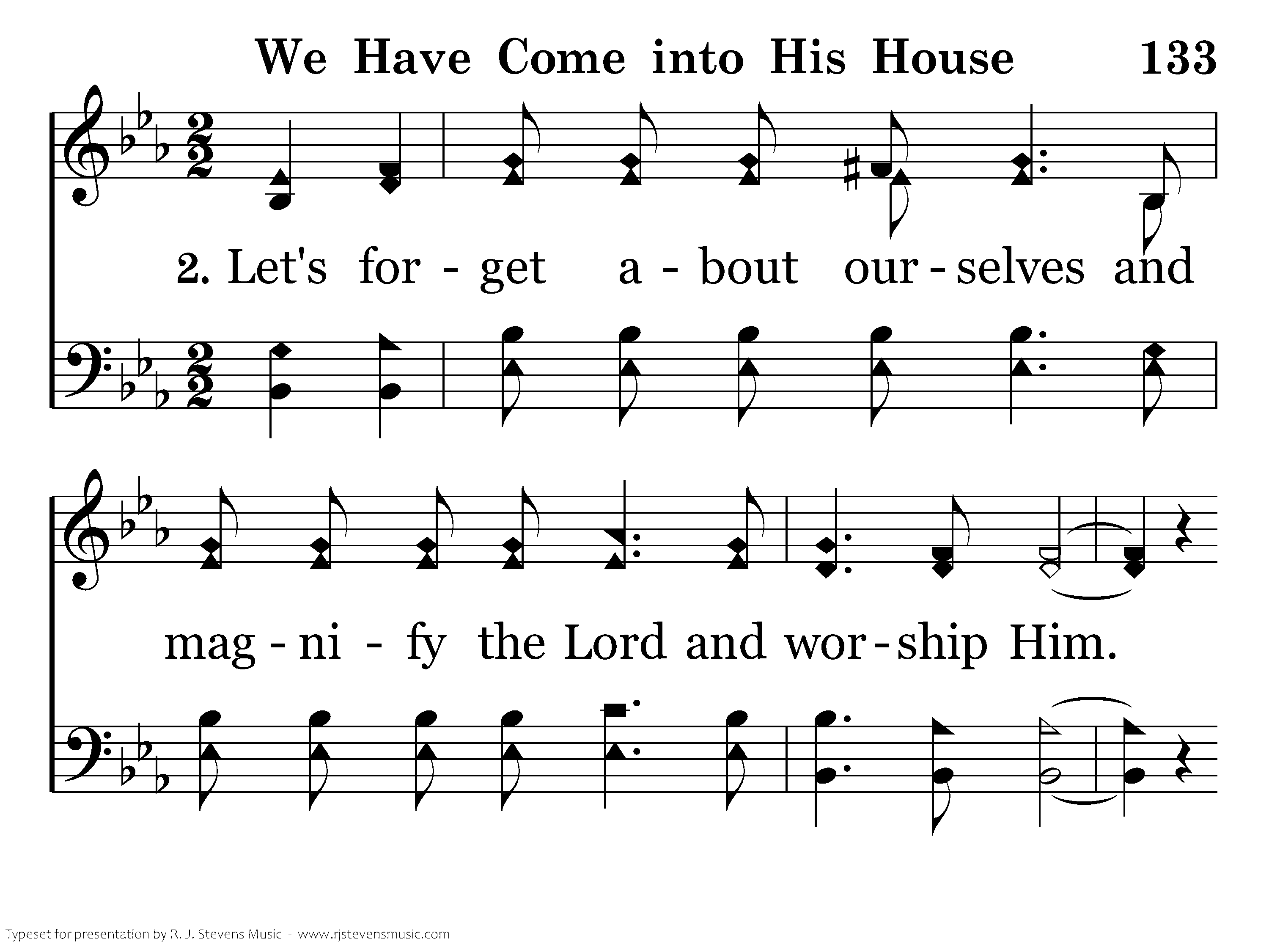 We have come into His house and gathered in His name to worship Him. We have come into His house and gathered in His name to worship Him. We have come into His house and gathered in His name to worship Christ the Lord. Worship Him, Christ the Lord.