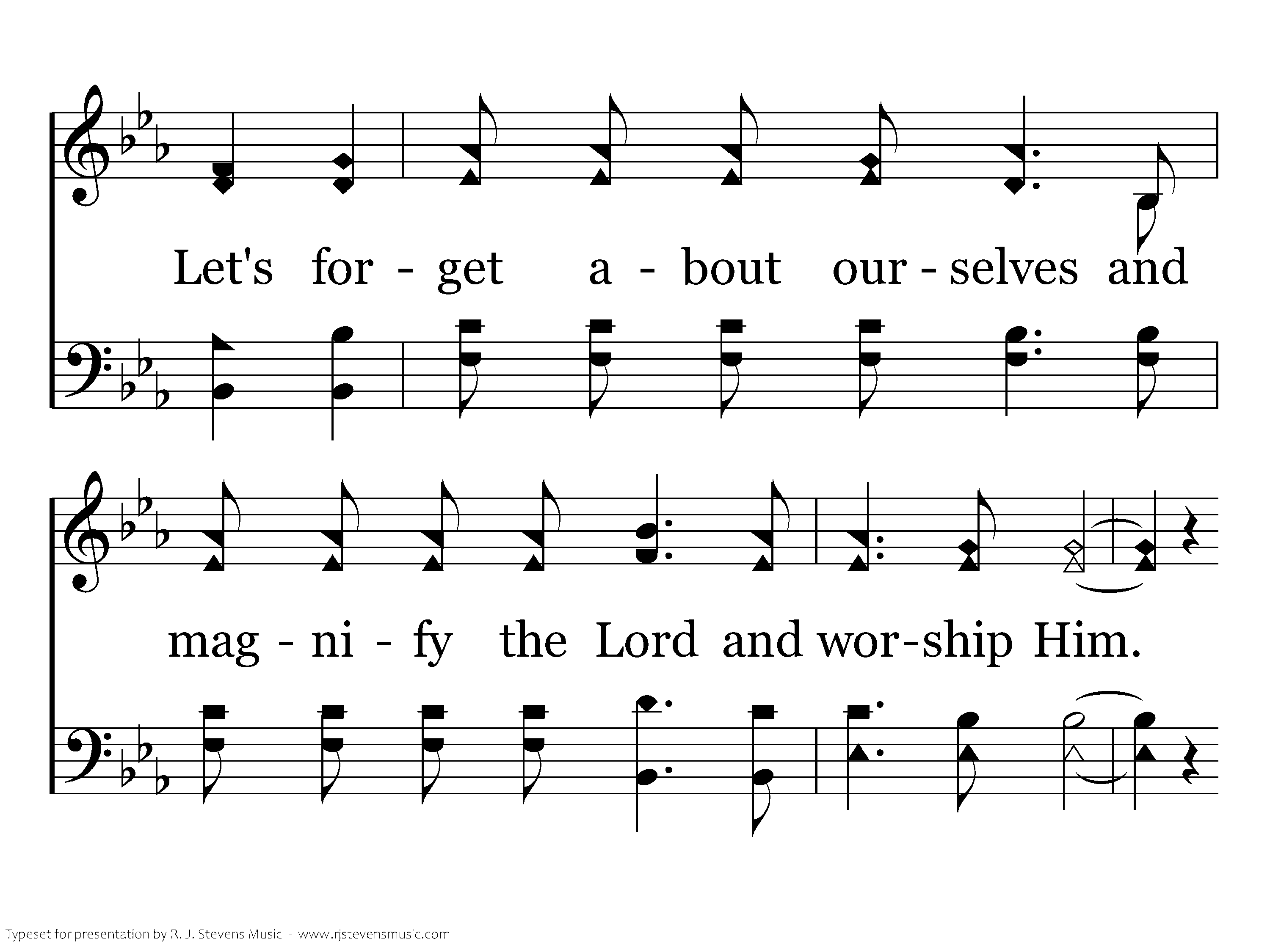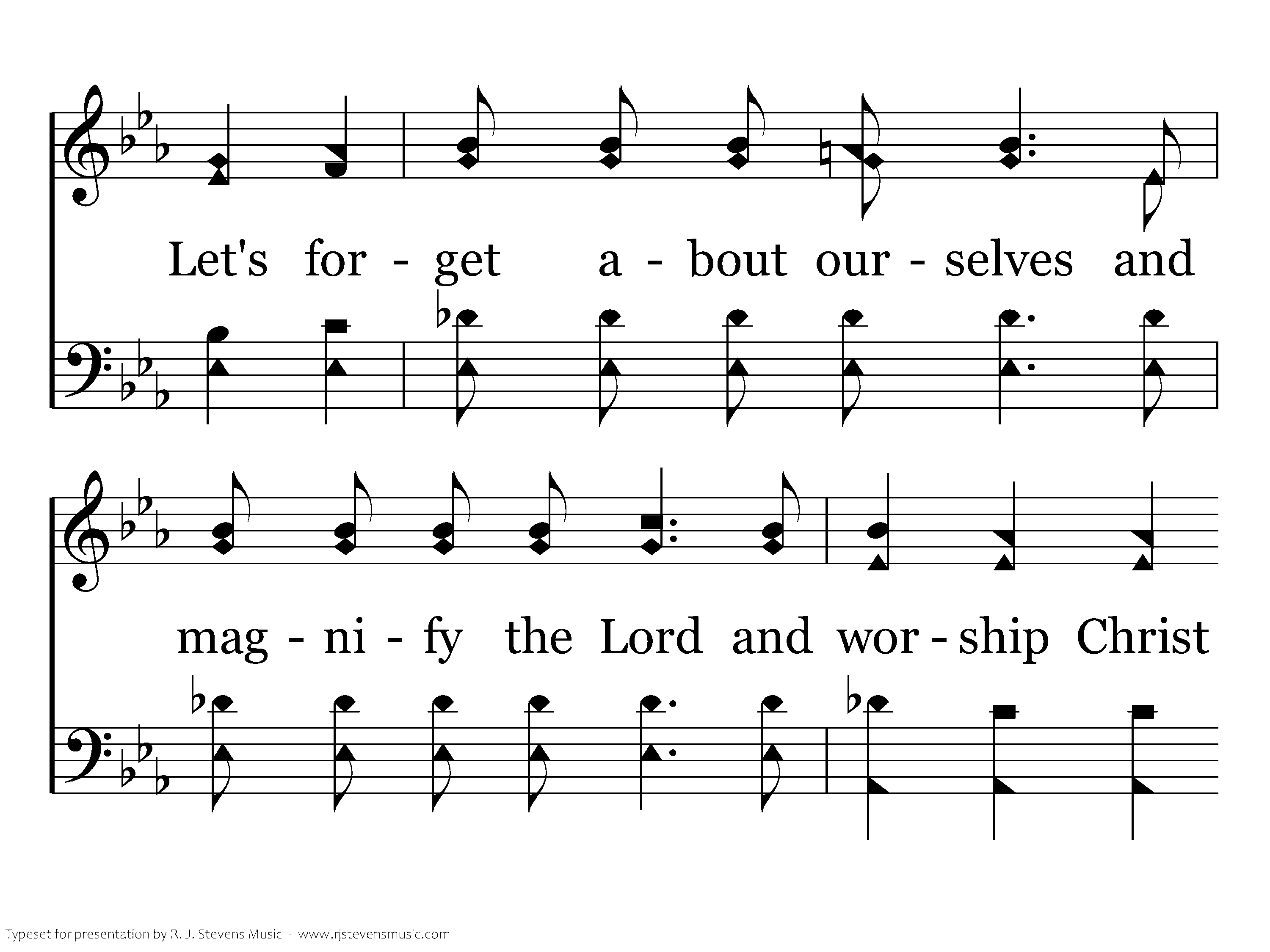 Let's forget about ourselves and magnify the Lord and worship Him. Let's forget about ourselves and magnify the Lord and worship Him. Let's forget about ourselves and magnify the Lord and worship Christ the Lord. Worship Him, Christ the Lord.