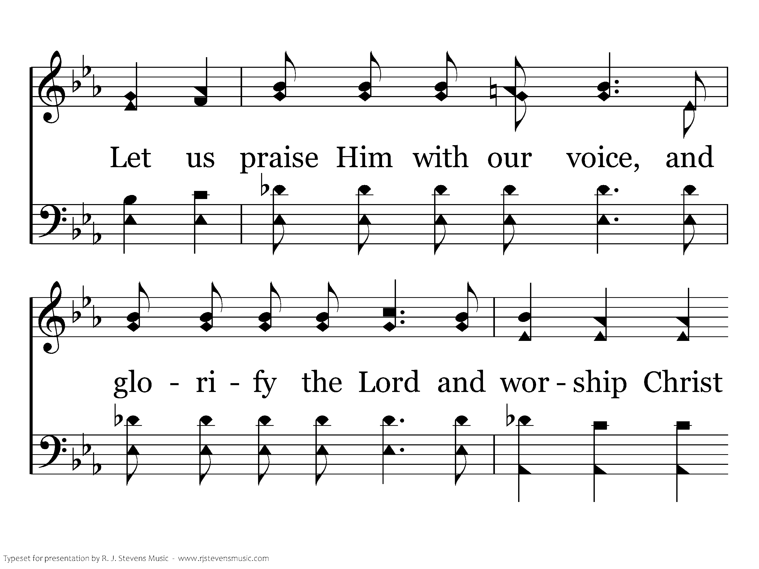 Let us praise Him with our voice, and glorify the Lord and worship Him. Let us praise Him with our voice, and glorify the Lord and worship Him. Let us praise Him with our voice, and glorify the Lord and worship Christ the Lord. Worship Him, Christ the Lord.