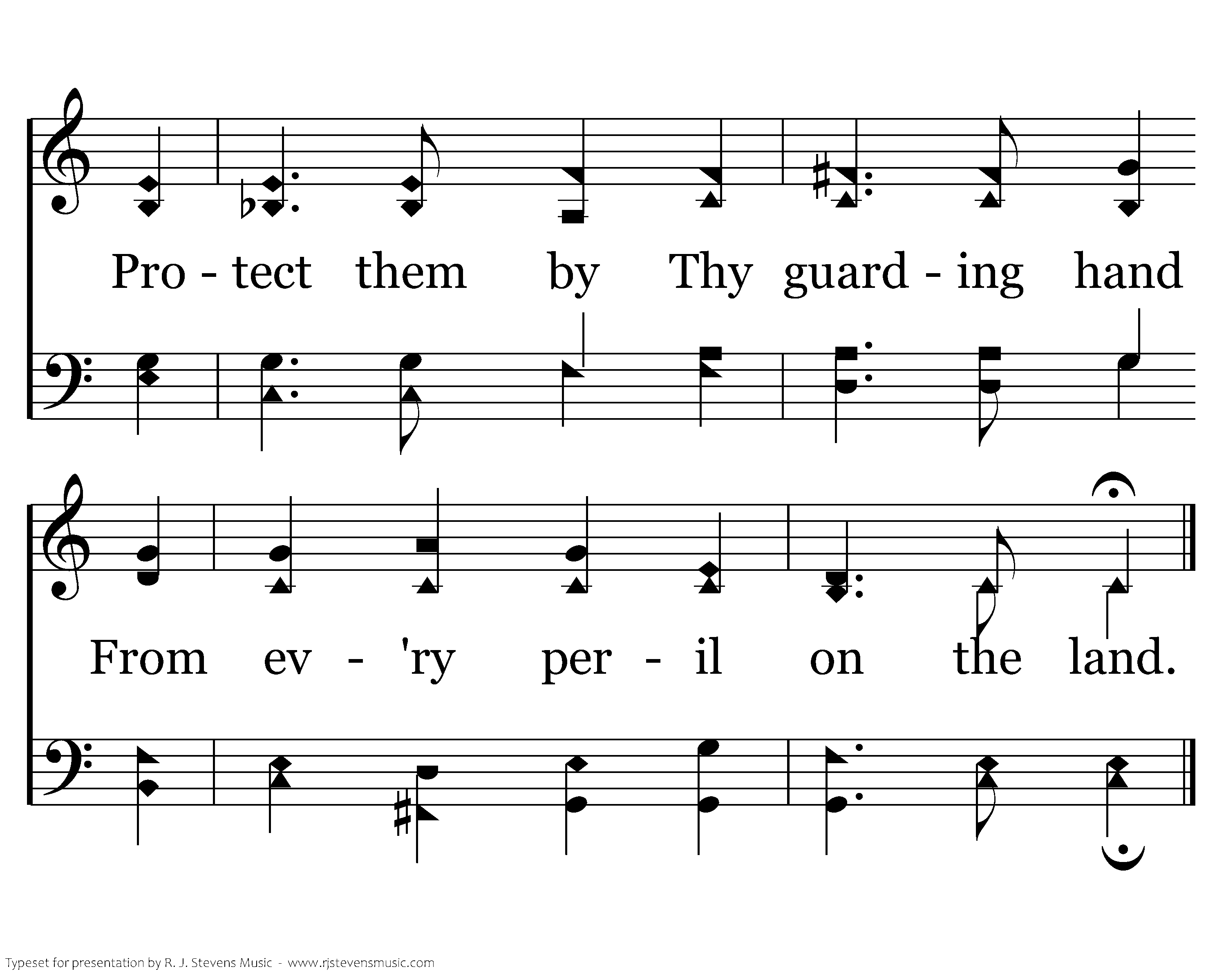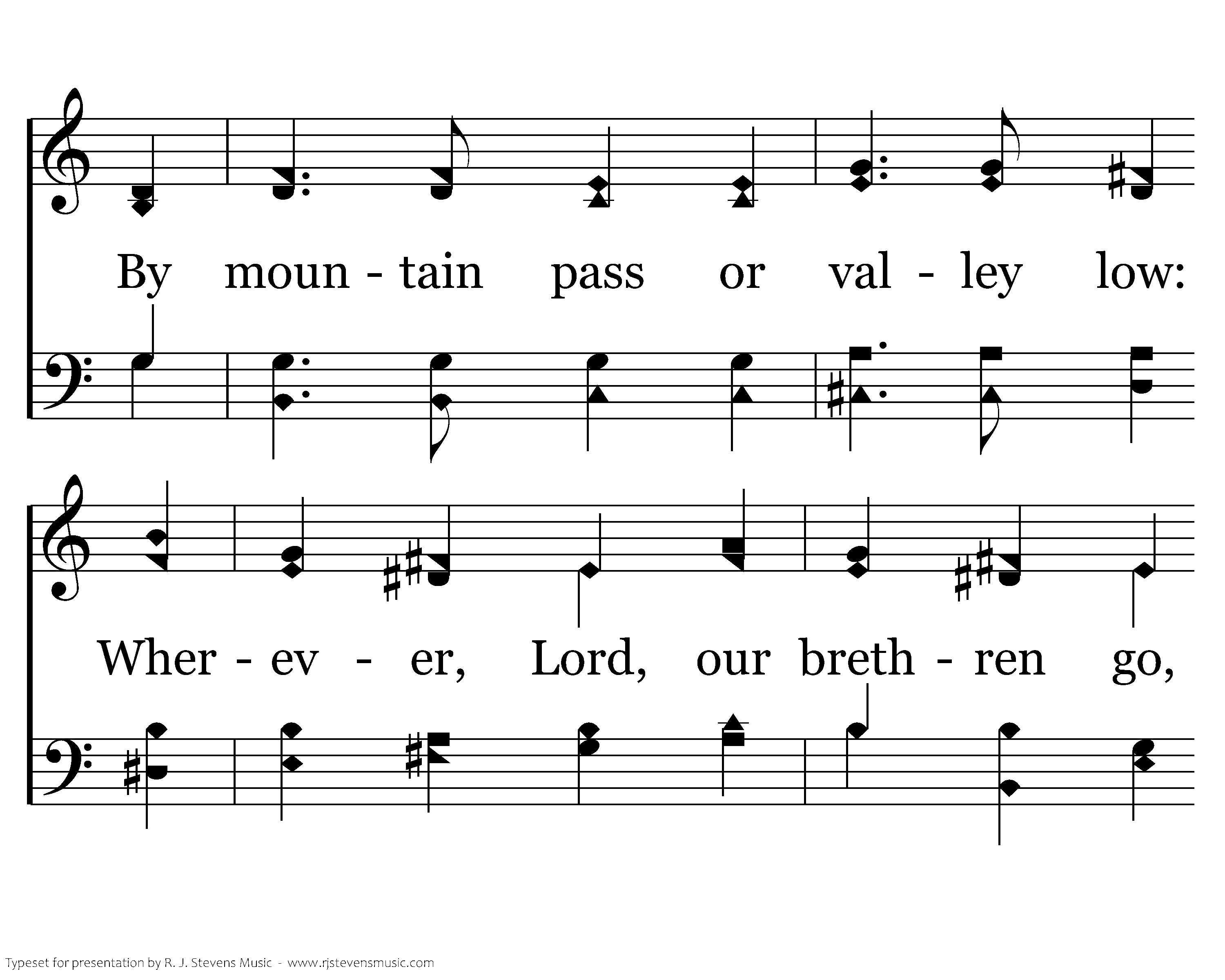 O Christ, the Lord of hill and plain o'er which our traffic runs a-main By mountain pass or valley low: Wherever, Lord, our brethren go, Protect them by Thy guarding hand From ev'ry peril on the land.