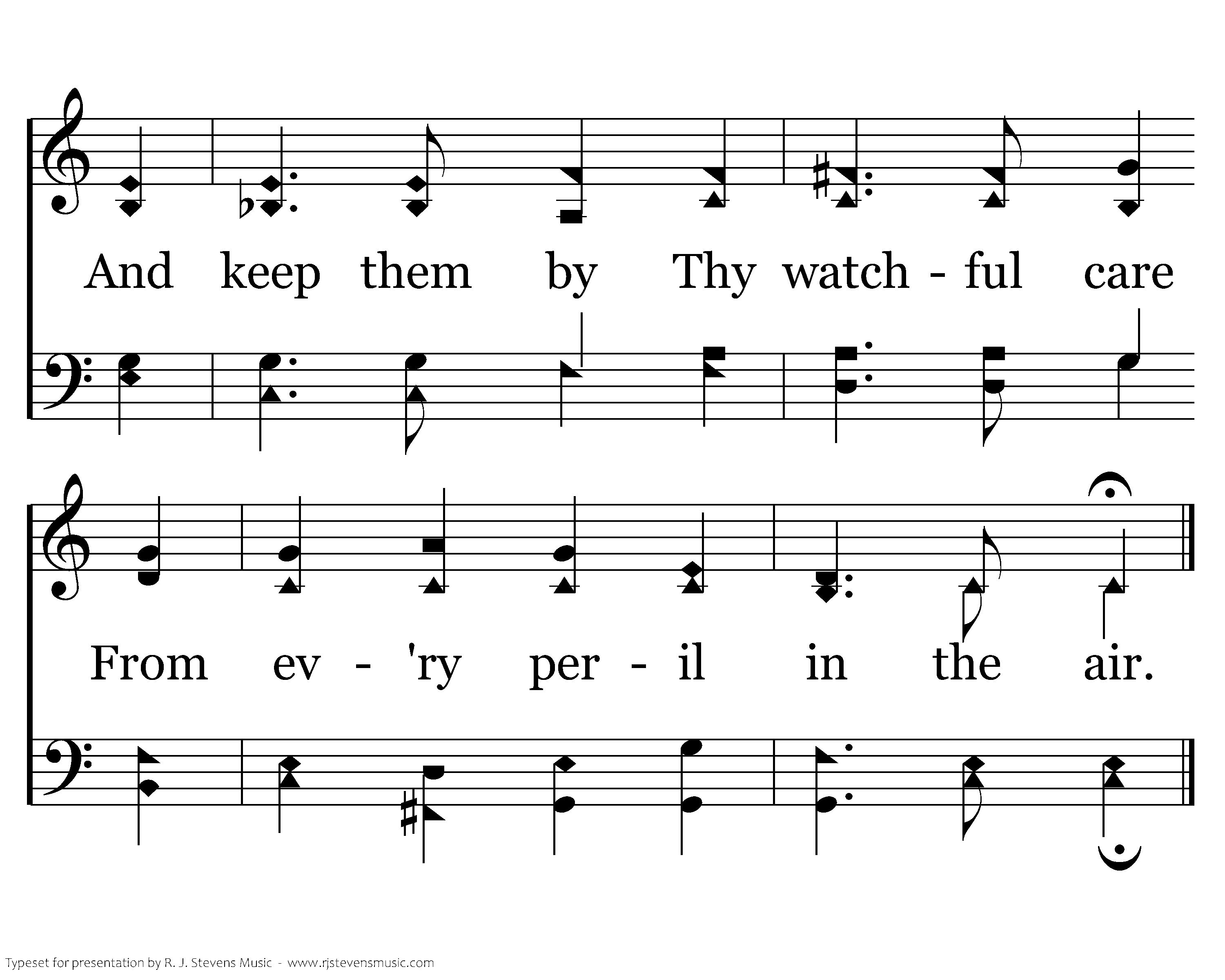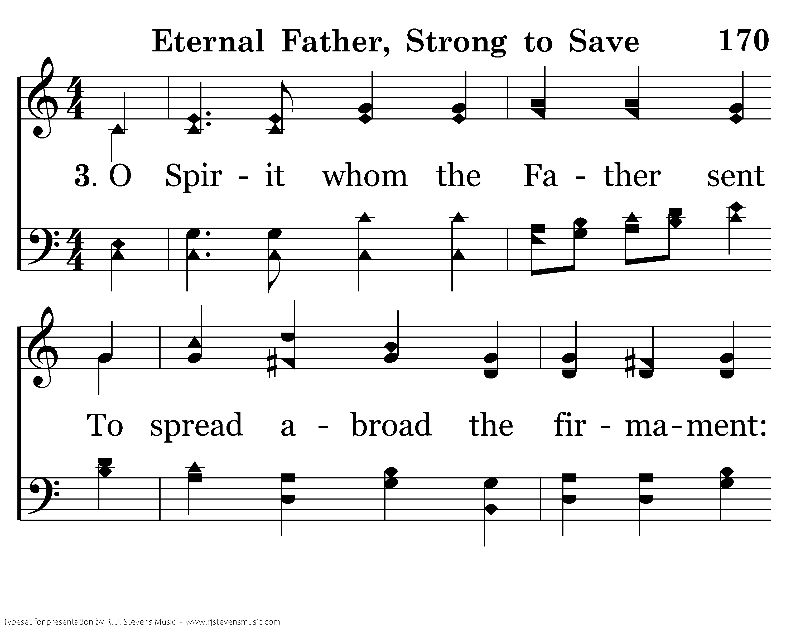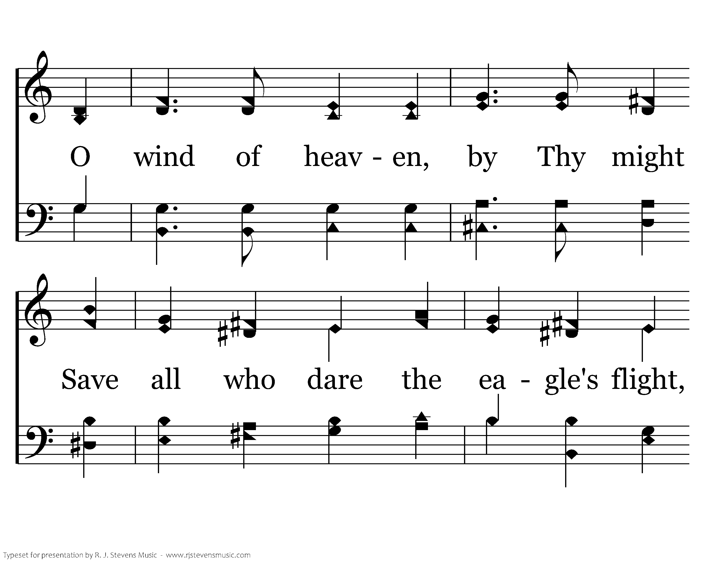 O Spirit whom the Father sent To spread abroad the firmament: O wind of heaven, by Thy might Save all who dare the eagle's flight, And keep them by Thy watchful care From ev'ry peril in the air.