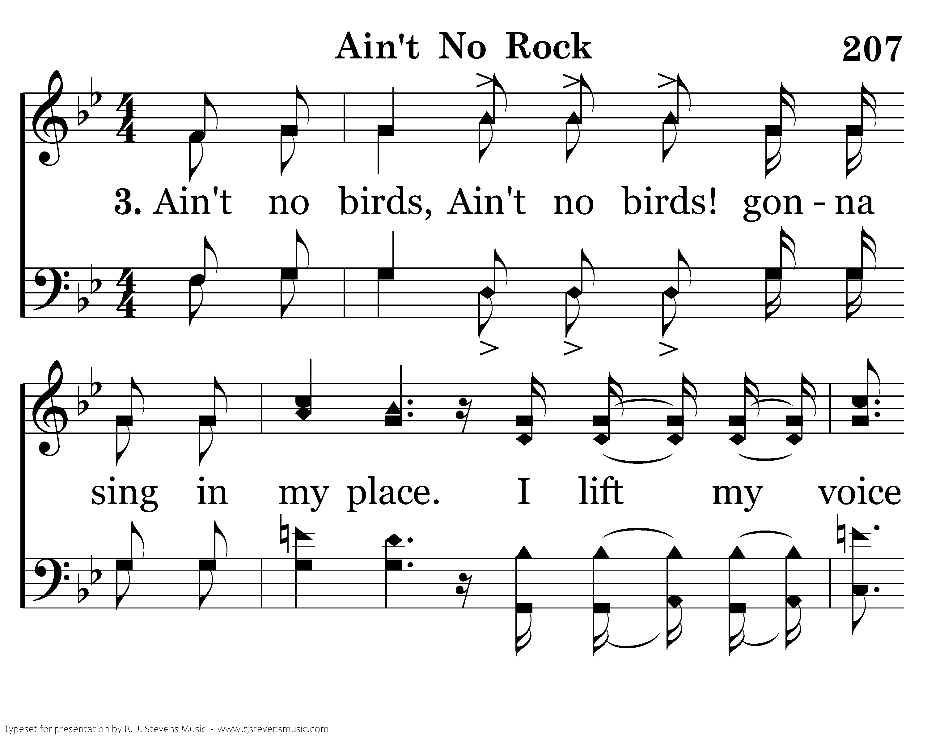 Ain't no birds, Ain't no birds! gonna sing in my place. I lift my voice to glorify His holy Name!